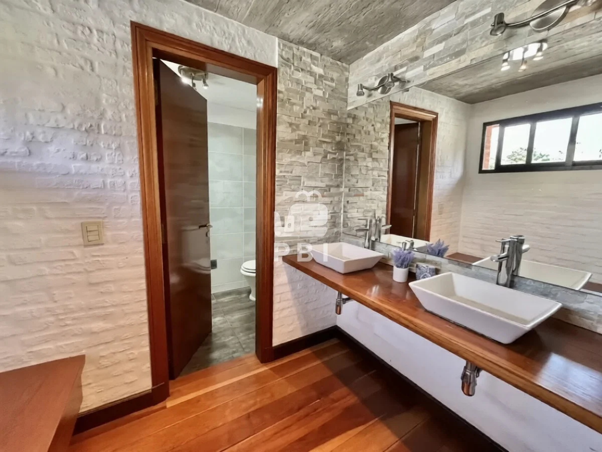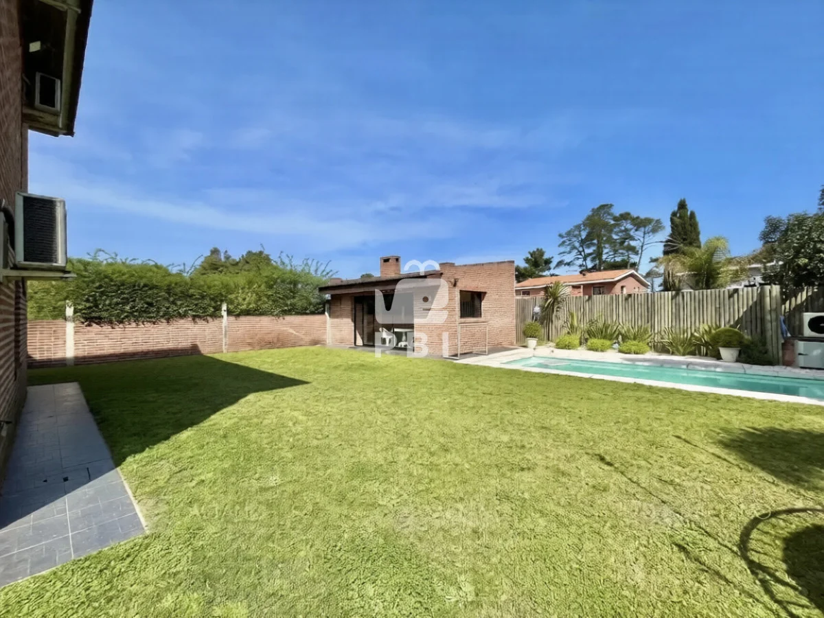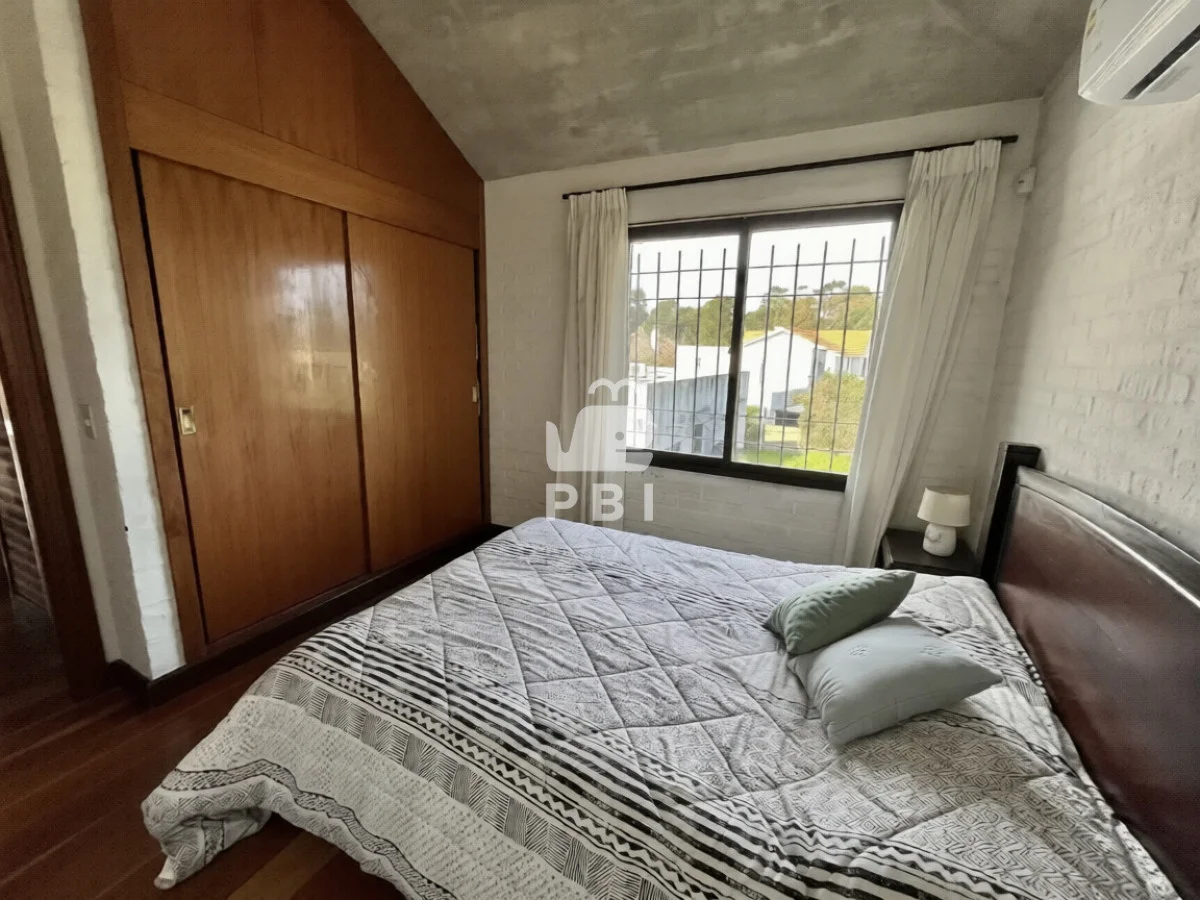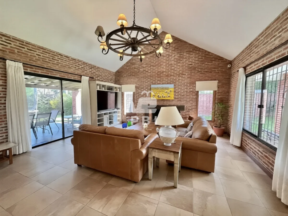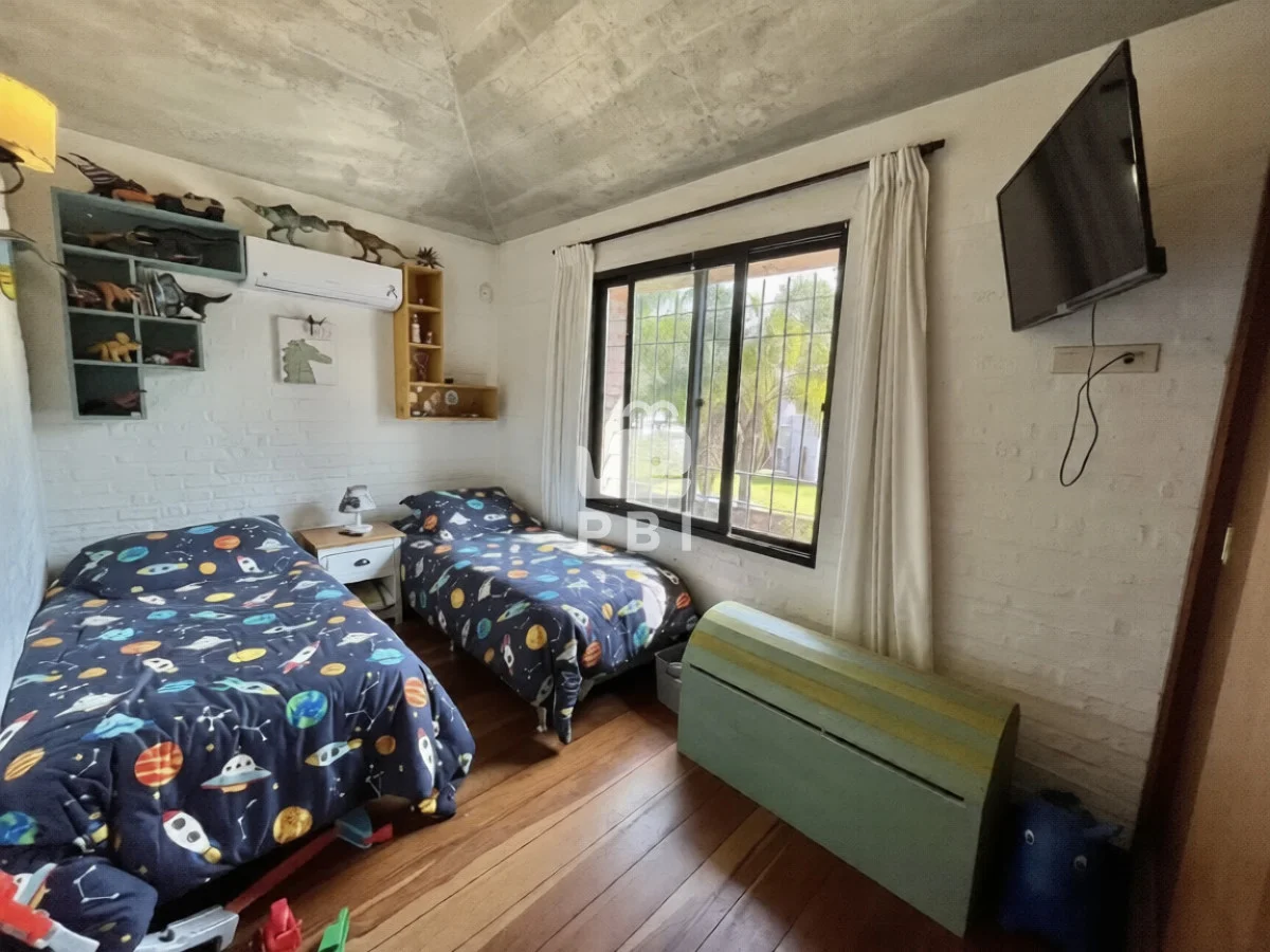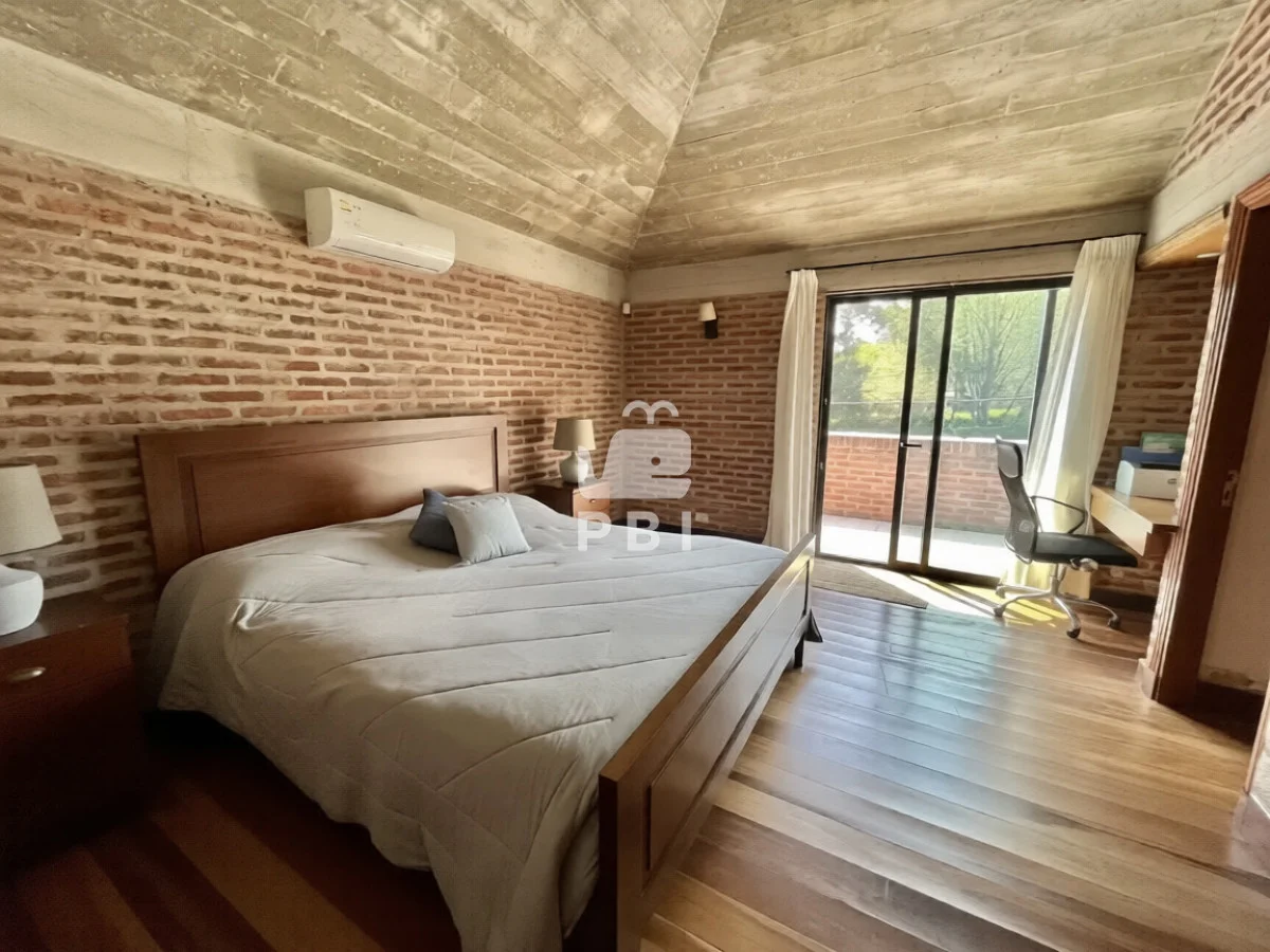 La propiedad cuenta con cuatro dormitorios, uno de ellos en suite, y tres baños. El área social incluye un amplio living comedor con estufa a leña y cocina integrada.