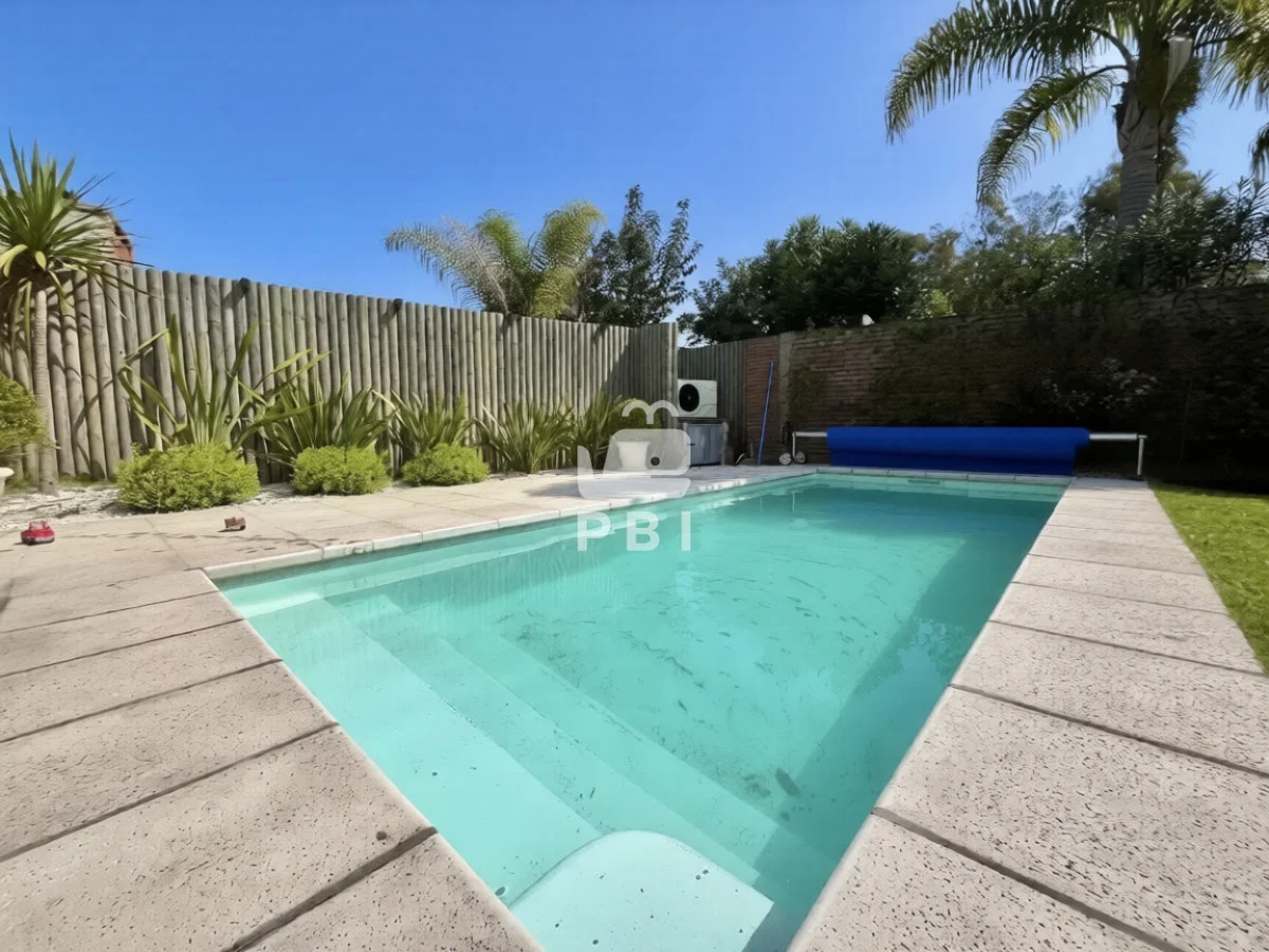 En el exterior dispone de barbacoa, piscina climatizada y cochera con capacidad para dos vehículos.
