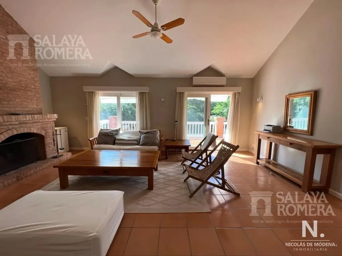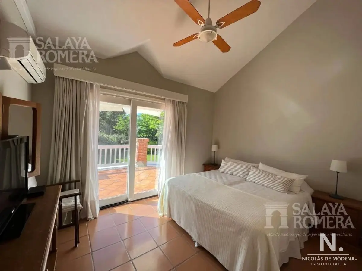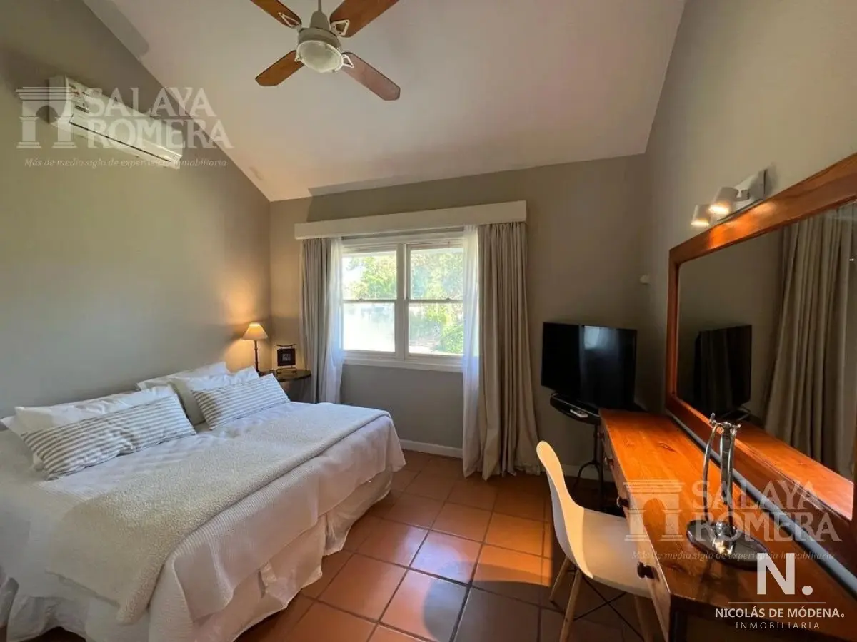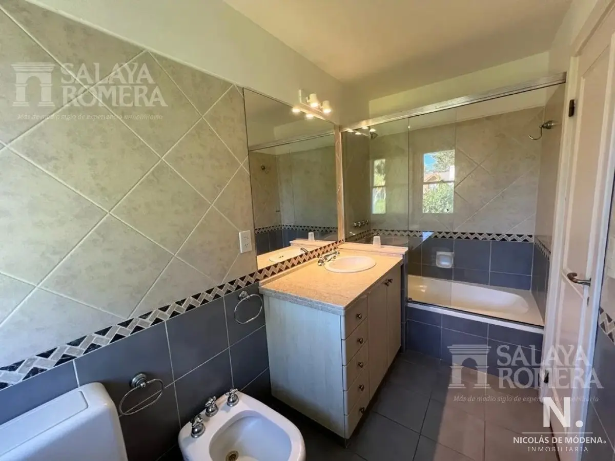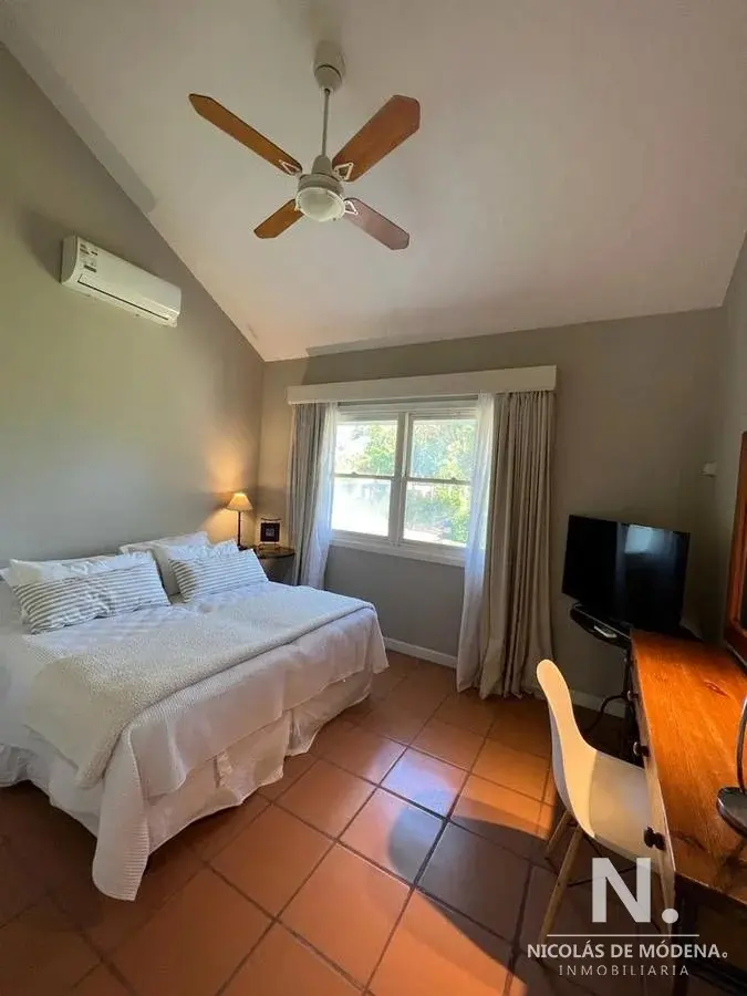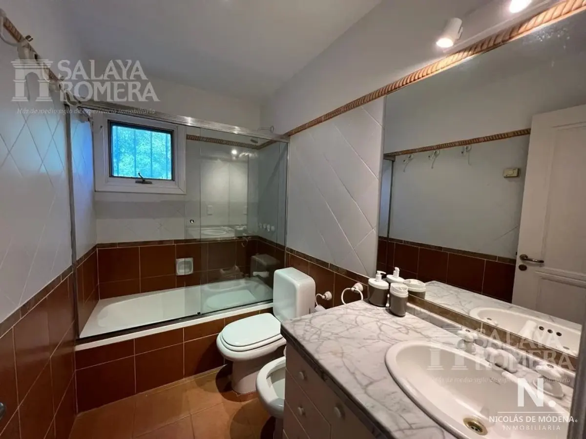 En cuanto a la distribución, en la Planta Baja cuenta con dos dormitorios en Suite (la Principal y la de huéspedes), amplio livingcomedorparrillero interno con la posibilidad de integrar los tres ambientes, Toilette, Amplia cocina con isla, dormitorio de servicio en suite, lavadero y garage cubierto y descubierto. El el exterior, una amplia galería, piscina cercada con solarium de lapacho, vestuario con ducha completa, parrillero exterior, huerta y un precioso jardín con una vegetación impactante totalmente cercado.