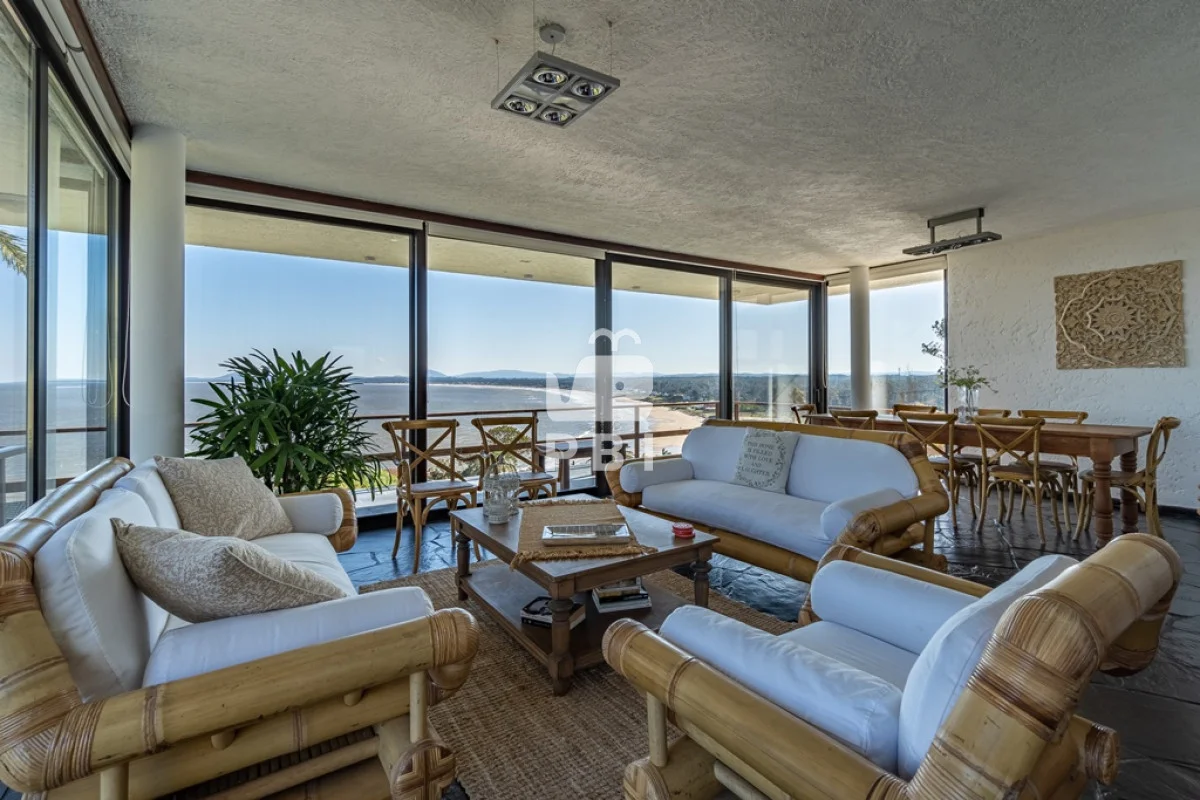 Dispone de cuatro dormitorios, incluyendo una suite principal con vestidor y una terraza de uso exclusivo con vistas únicas de la costa. La propiedad cuenta con tres baños completos adicionales y una cómoda área de estar que se conecta a una terraza apergolada con parrillero, perfecta para cenas al aire libre con amigos y familiares. La cocina, totalmente definida, es moderna y está bien equipada.