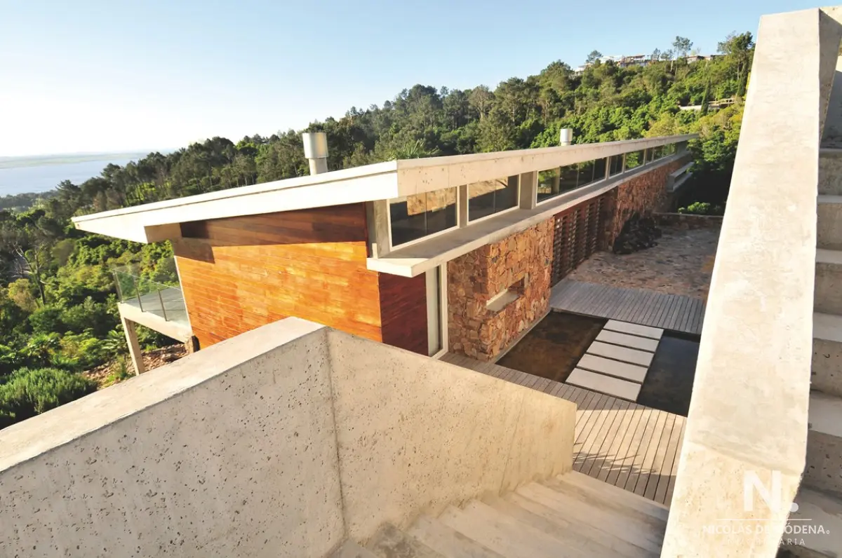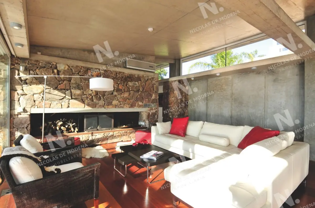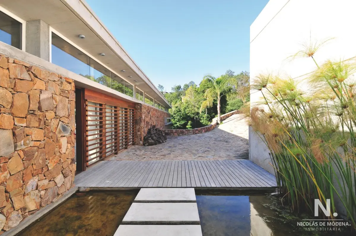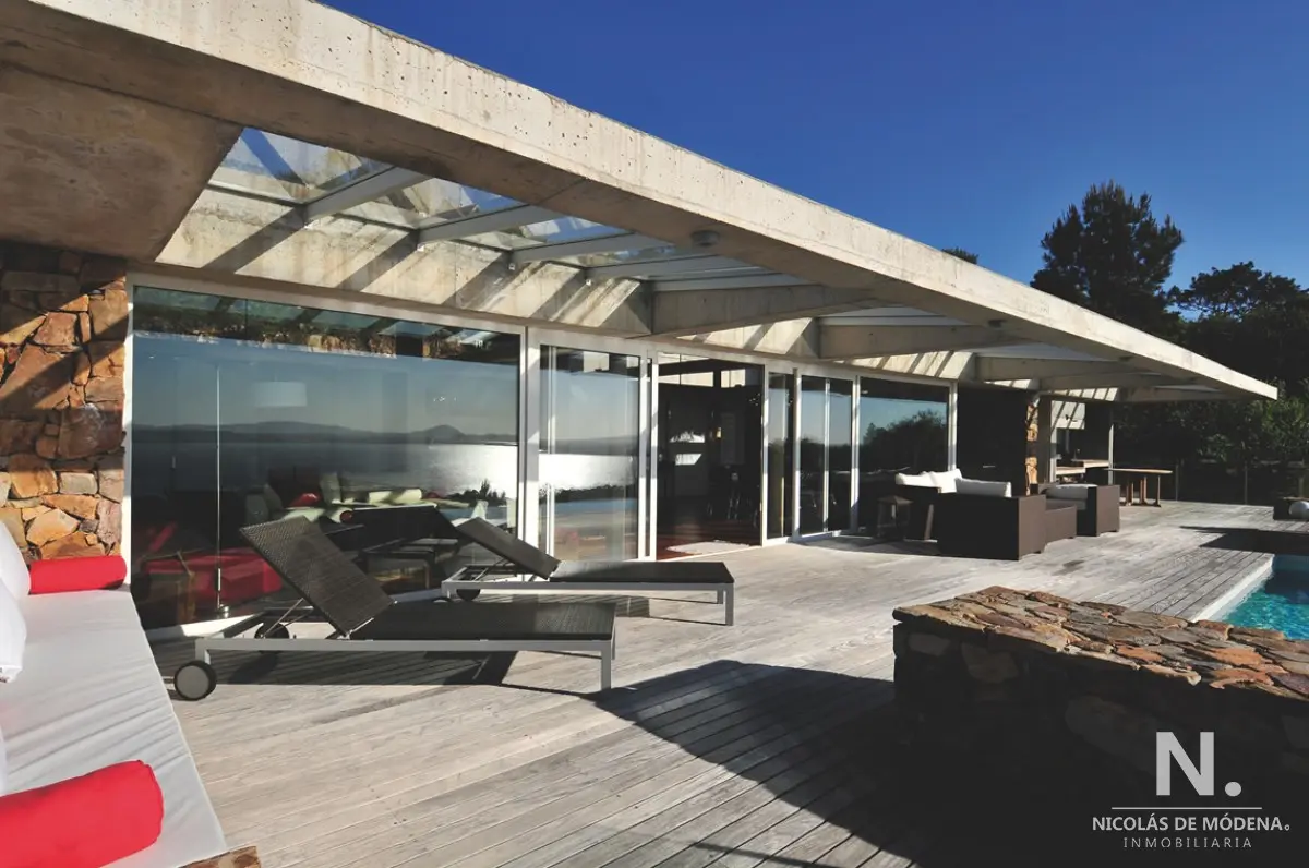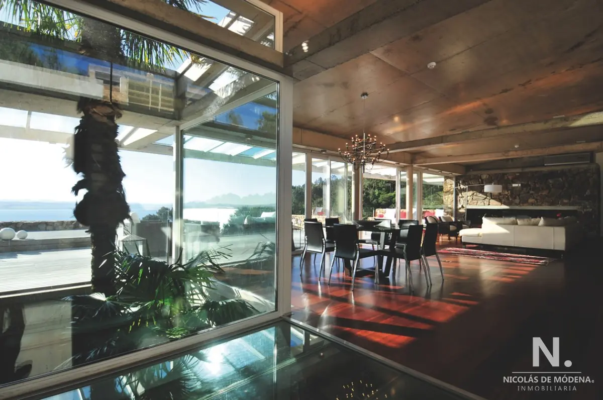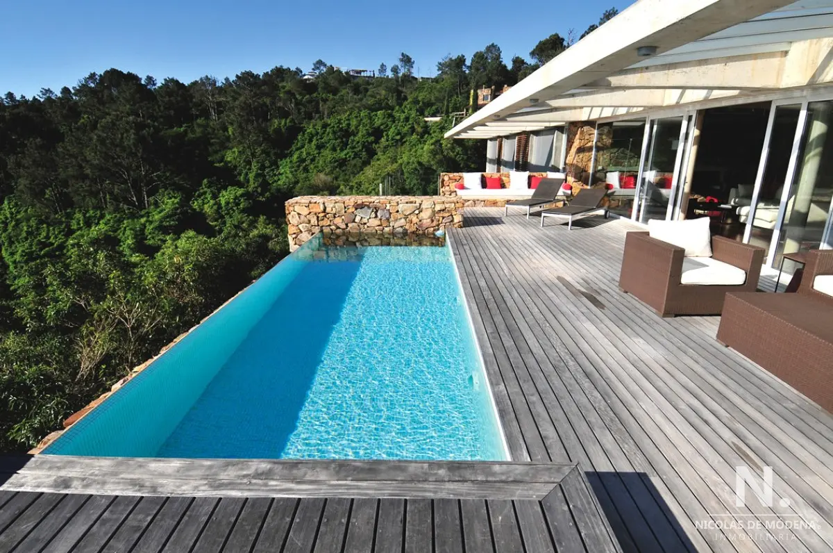 Punta Ballena, Las Cumbres. Casa tipo Chalé de características excepcionales ubicada de manera elevada sobre un terreno en forma de barranco. Realizada en estructura de hormigón armado y piedra contando con una excepcional vista a la Laguna del Sauce. Desarrollada en dos plantas Cuenta con 3 dormitorios en suite. Living comedor con estufa a leña Cocina definida. Calefacción por losa radiante eléctrica individual y aires acondicionados en todos los ambientes. Piscina desbordante sobre el borde del deck con vista panorámica Estacionamiento para visitantes en la entrada. Excepcional conjugación de la naturaleza y la arquitectura moderna. Consulte con nuestros asesores. Referencia Interna : Tera-11682