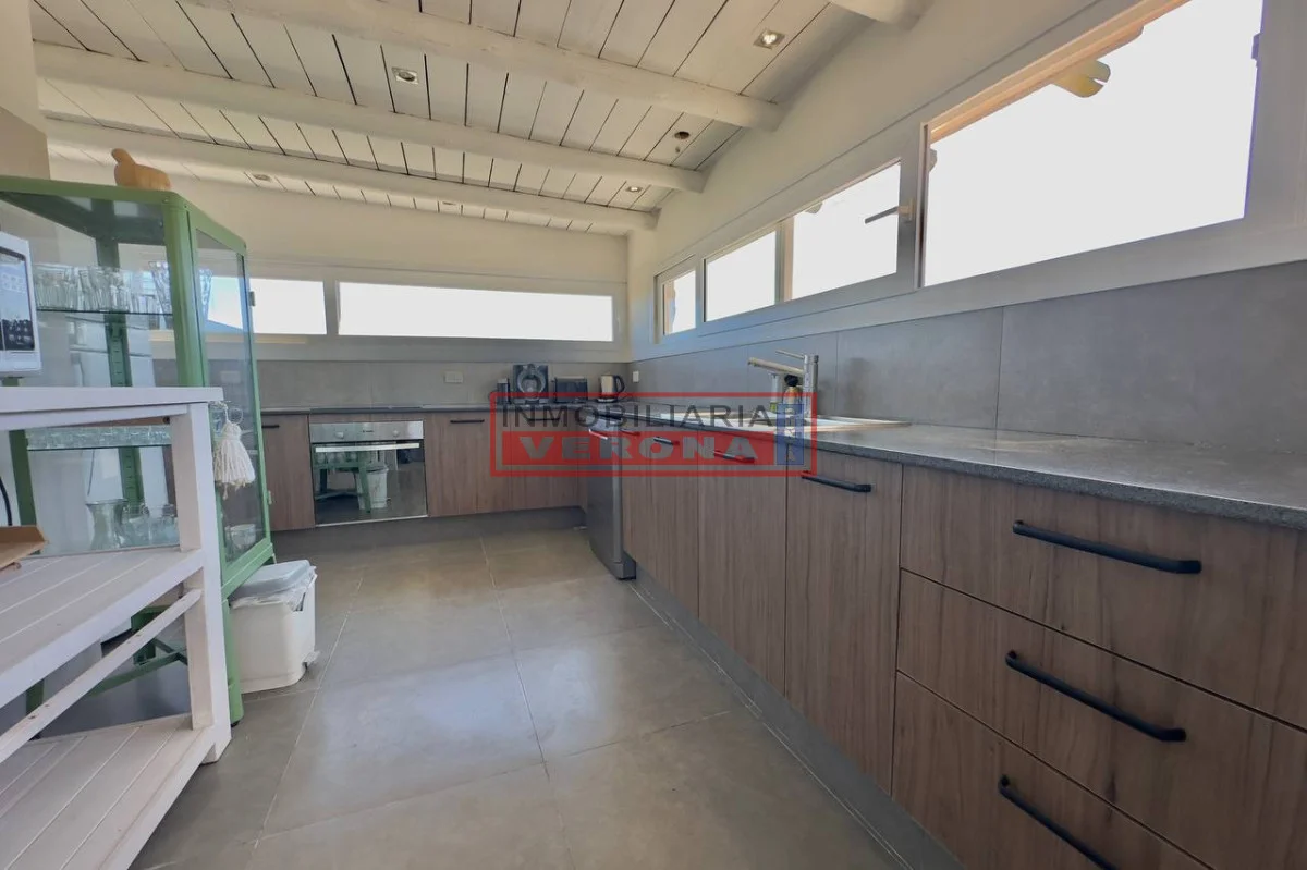 3er piso: amplio living comedor con estufa a leña, vista al mar y salida a gran terrada al frente, lavadero, cocina, terraza al fondo con parrillero.