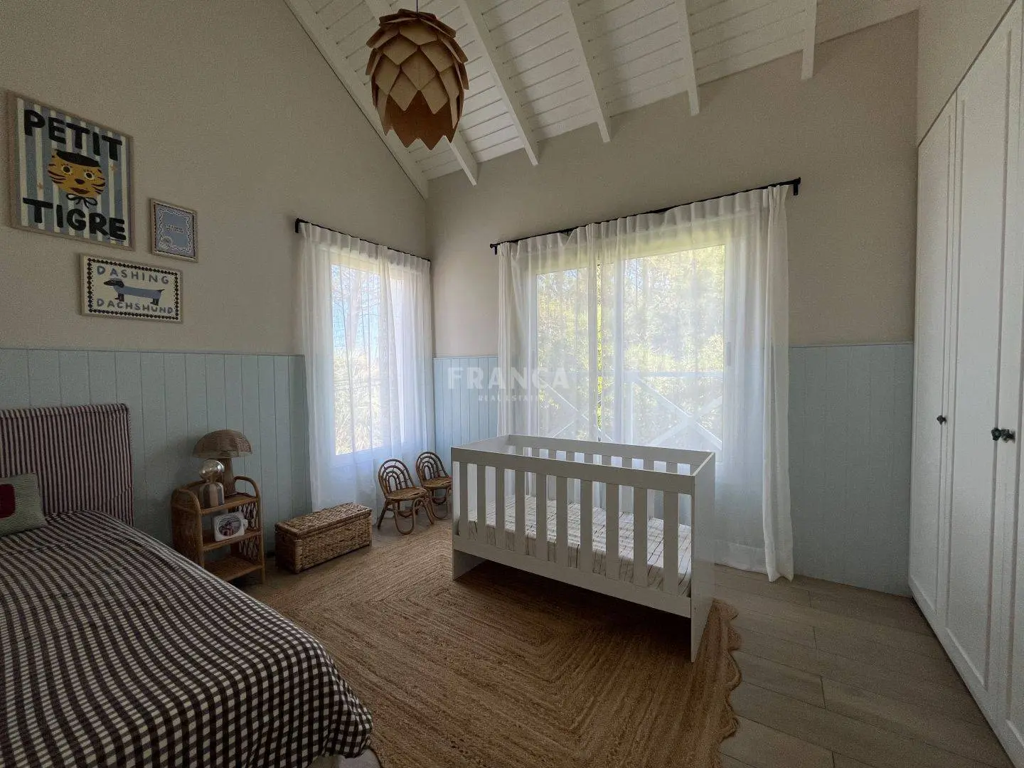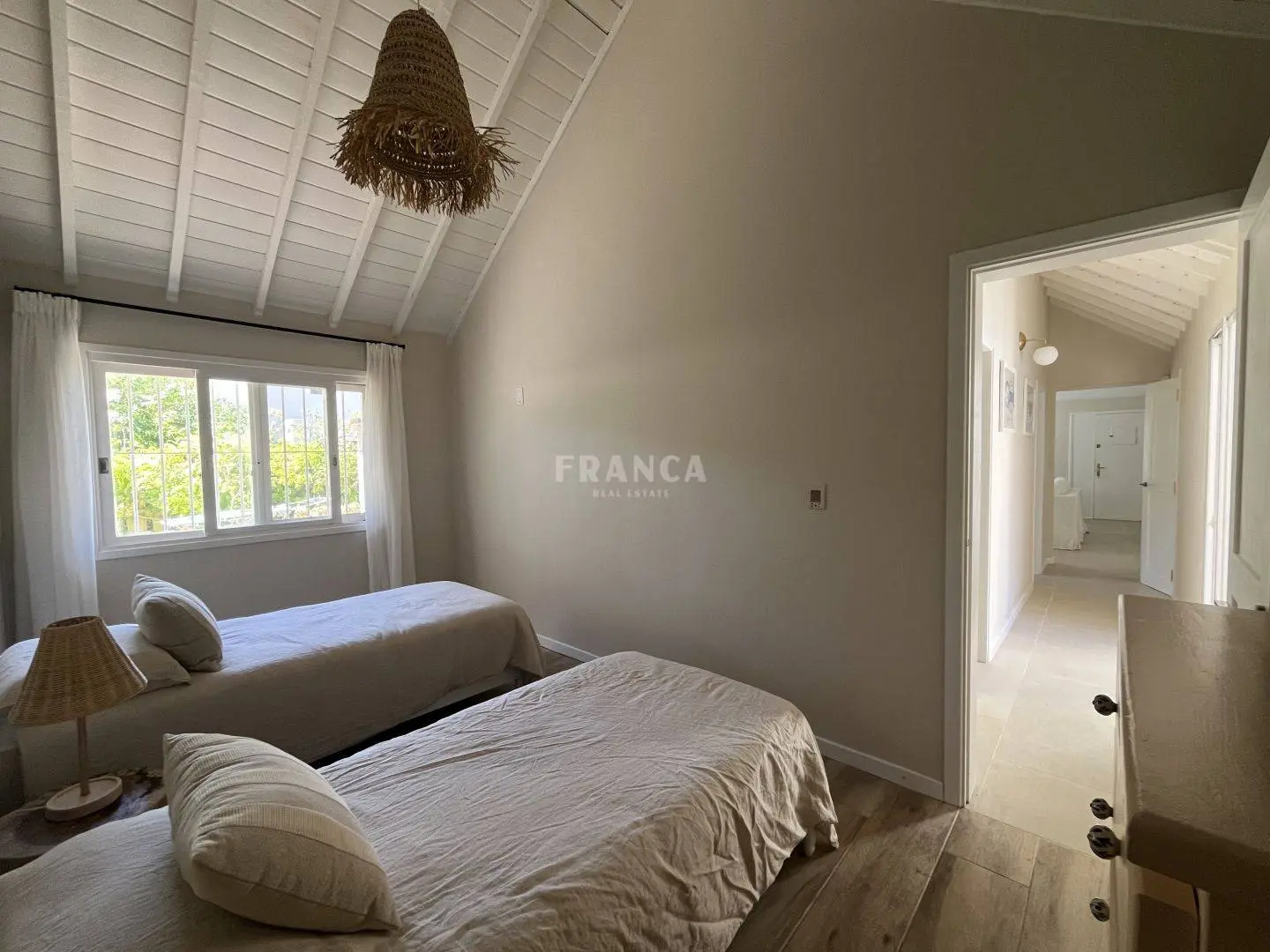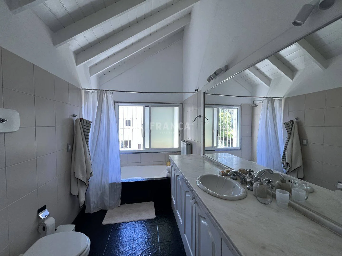 En la planta alta, la suite principal cuenta con balcón propio, y dos dormitorios adicionales con camas individuales comparten un baño completo. La propiedad además dispone de lavadero independiente y dependencia de servicio. Así como también calefacción por radiadores y aire acondicionado.