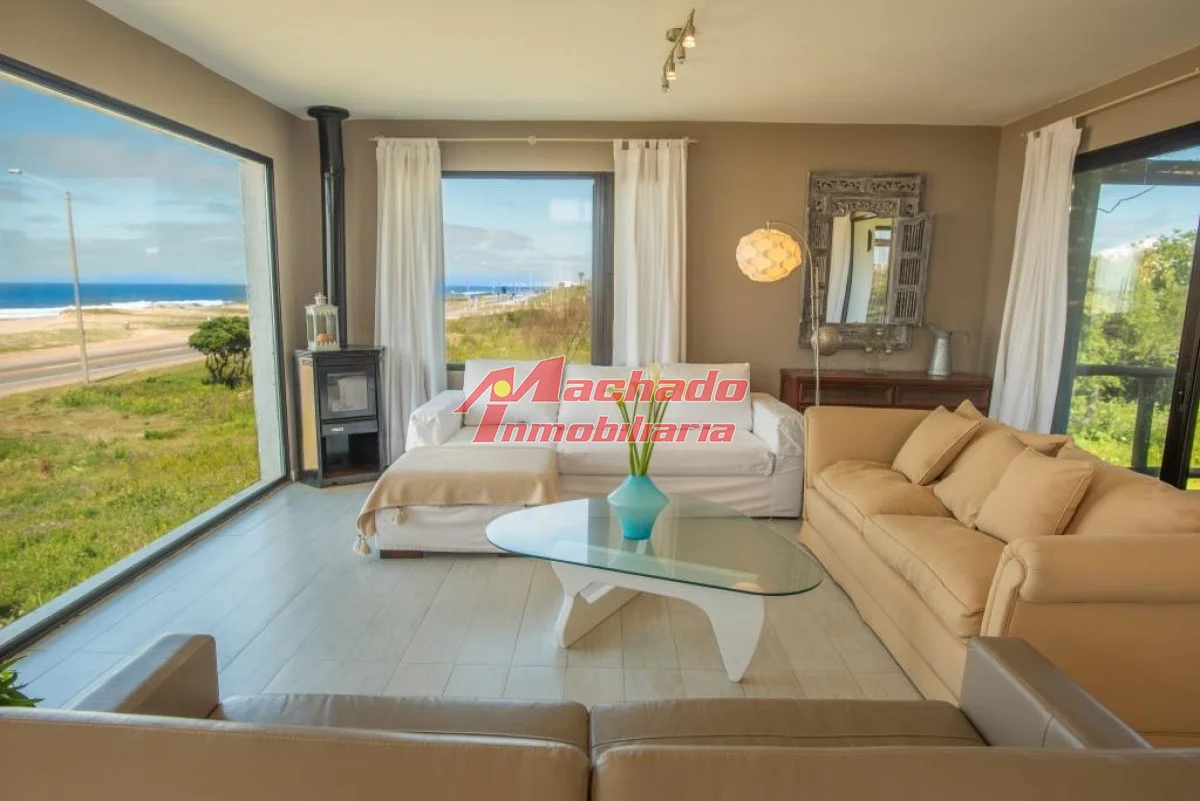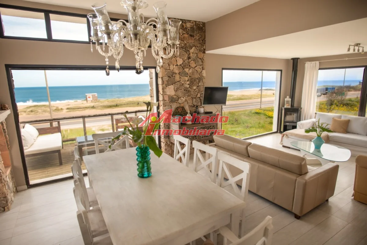 Gran propiedad ubicada frente al mar. Desarrollada en dos plantas con hermosas vistas. Moderna, luminosa, con jardín y piscina para disfrutar en familia. Comodidades: - Living comedor - Estufa a leña - 2 Terrazas - Cocina con desayunador - 4 Dormitorios (2 suites) - 3 Baños - Toilette - Dependencia de servicio independiente - Baño de servicio - Lavadero con sector de tender - Parrillero - Comedor exterior - Deck techado con pérgola - Jardín - Piscina - Cochera Referencia Interna : Tera-8802