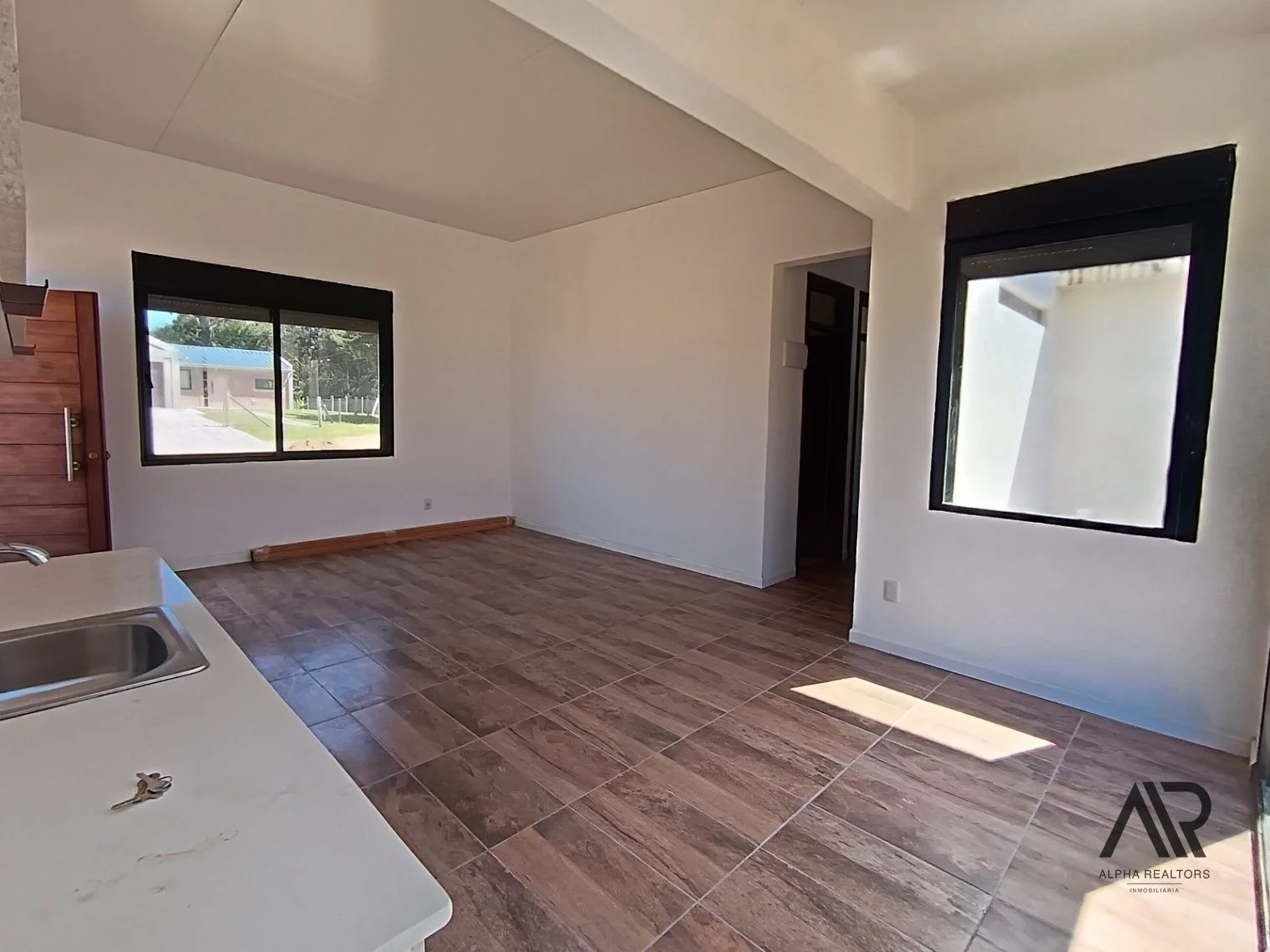 La casa a estrenar presenta tres dormitorios y dos baños, uno en suit brindando un ambiente ideal para familias o grupos de trabajo.