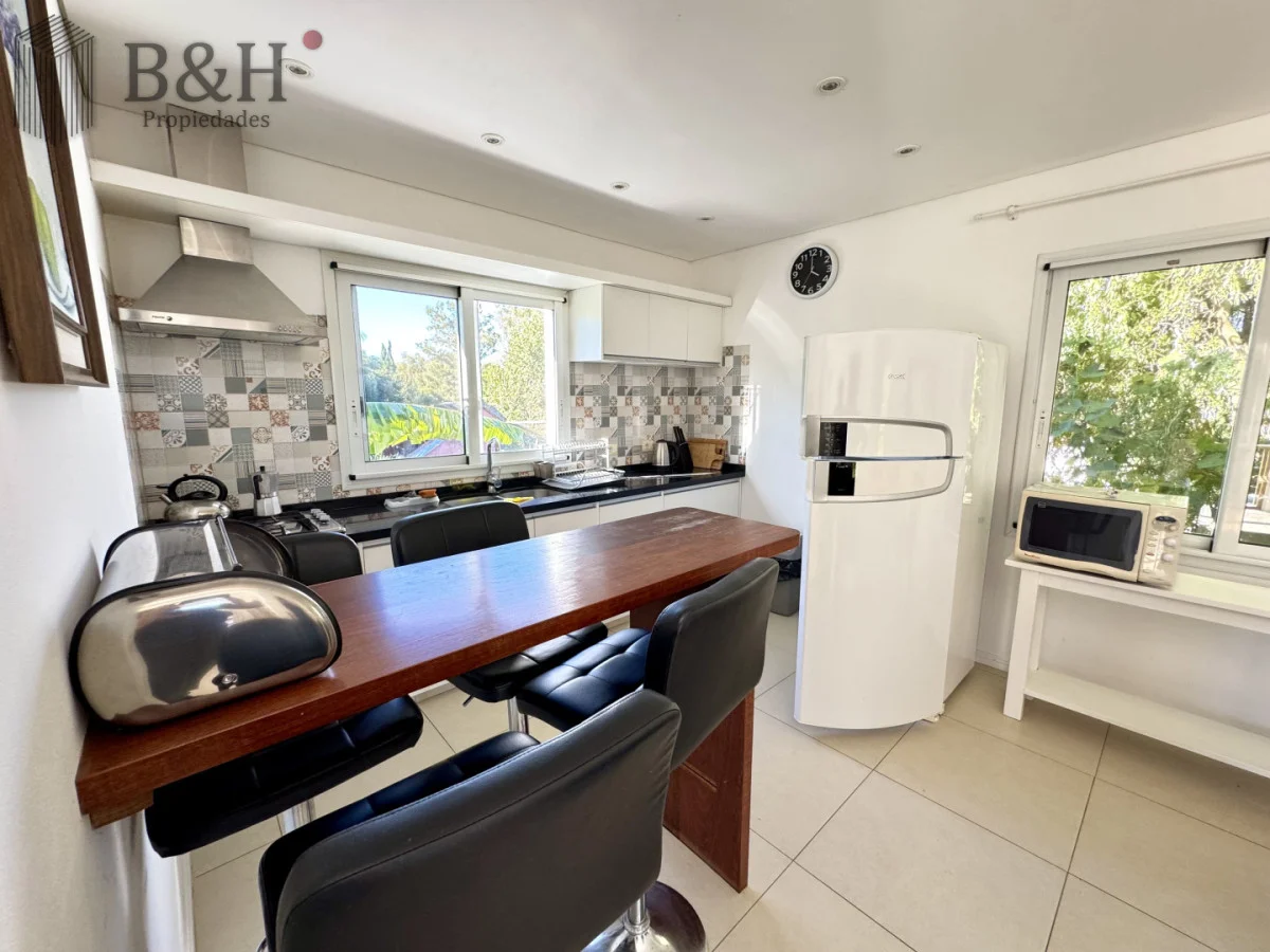 - Su cocina es espaciosa y moderna, perfecta para disfrutar de momentos culinarios en familia ya que comparten el comedor con terraza y vista al patio verde.