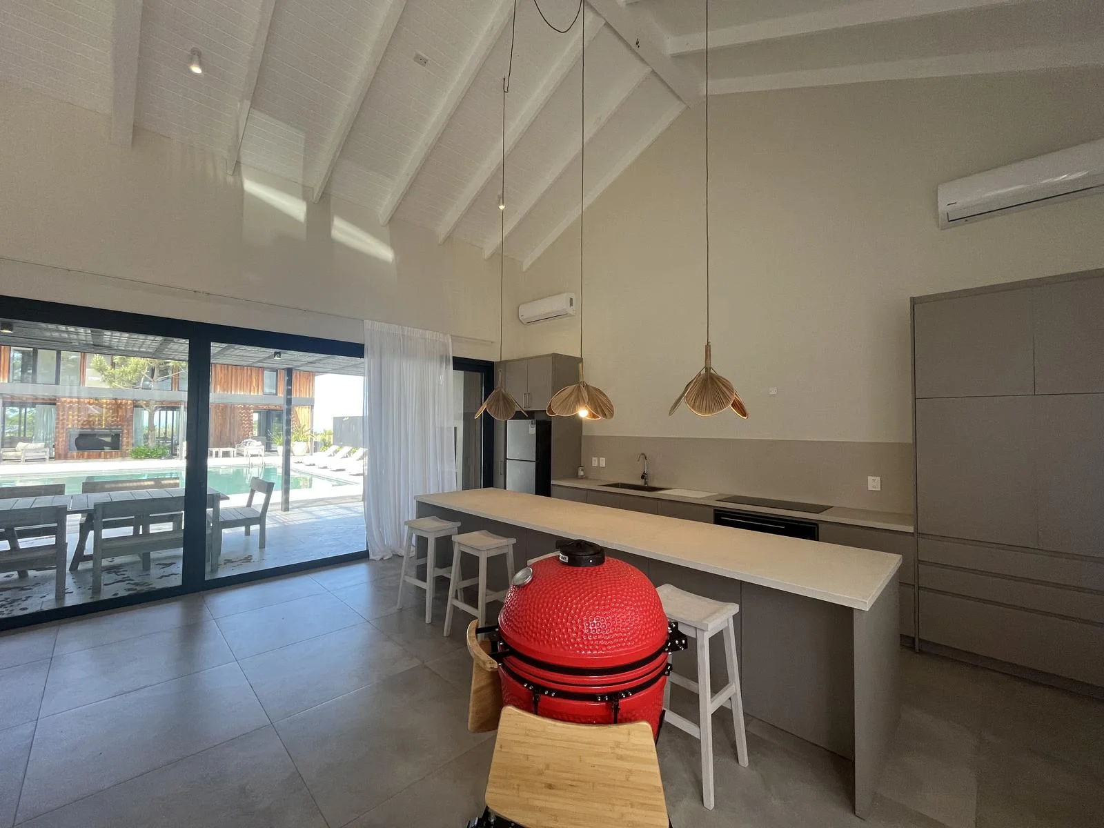 In the second block, there is a closed barbecue area with a social space and an additional guest bathroom.