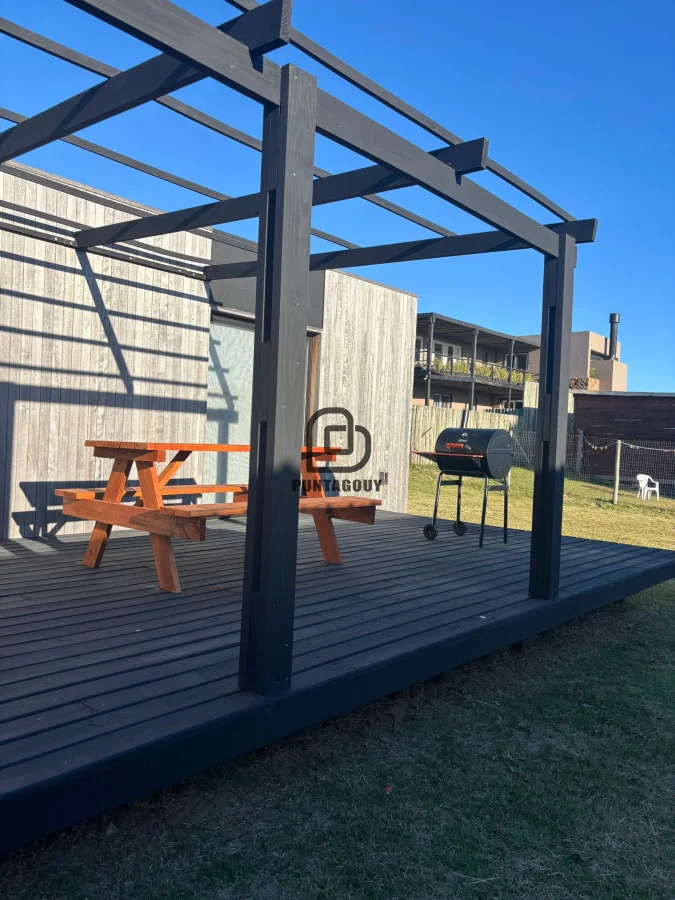 Espacio para barbacoa, Deck y Pérgola con parrilla y juego de jardín