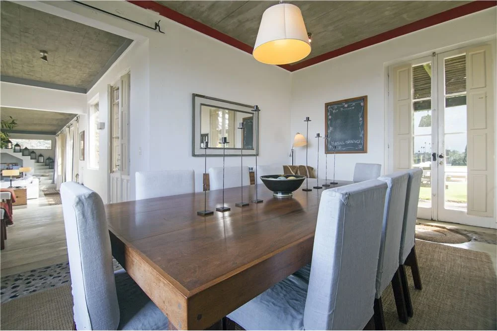 Tiene 6 suites totalmente independientes y completas , una master suite en planta alta del casco principal de la construcción con entrada independiente y excelentes vistas, y 2 suites mas en planta baja ademas de la dependencia de servicio . Cocina amplia con comedor diario y sala de lavado y planchado.