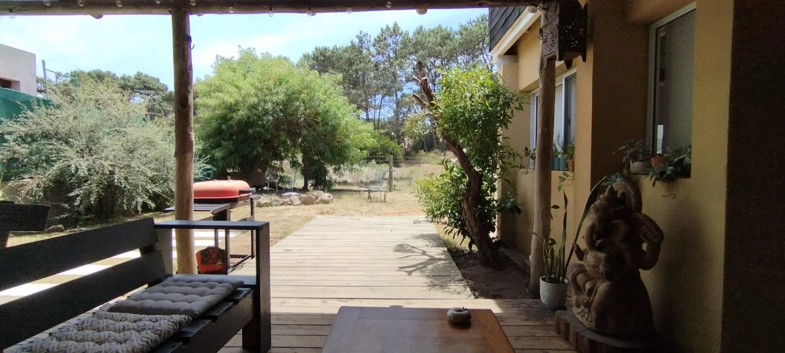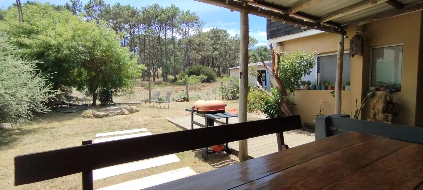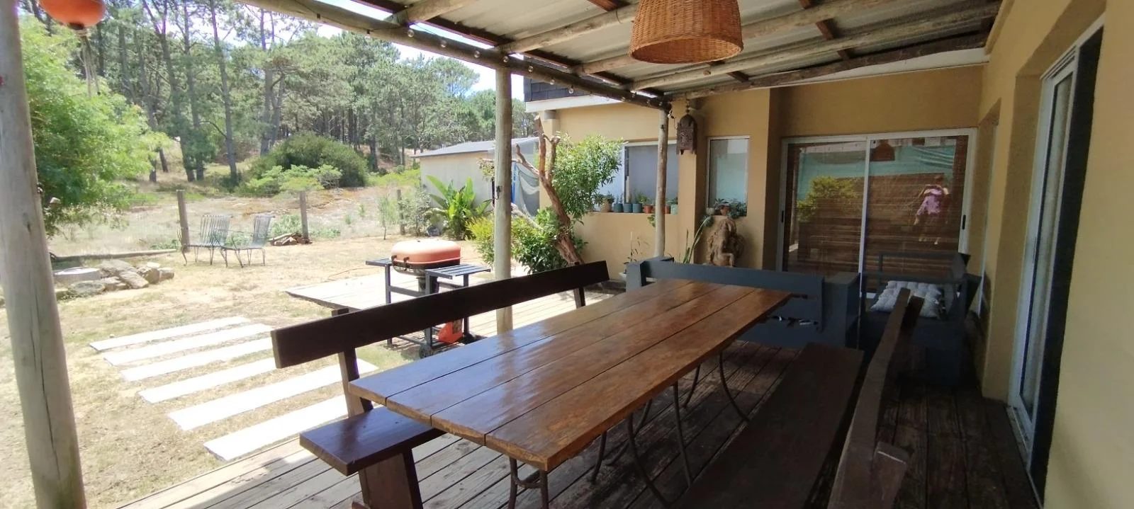 Pérgola Tachada hacia el jardín. Gran vista al bosque!