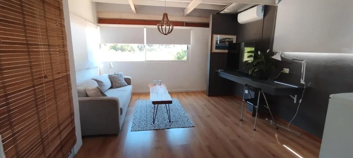 Esta propiedad de 148 m2 totales edificados cuenta con dos niveles. En planta baja, el living comedor con la cocina integrada, baño para visitas y una sala multiusos (playroom, escritorio, sala de tv). Estufa de alto rendimiento en este sector y aire acondicionado.