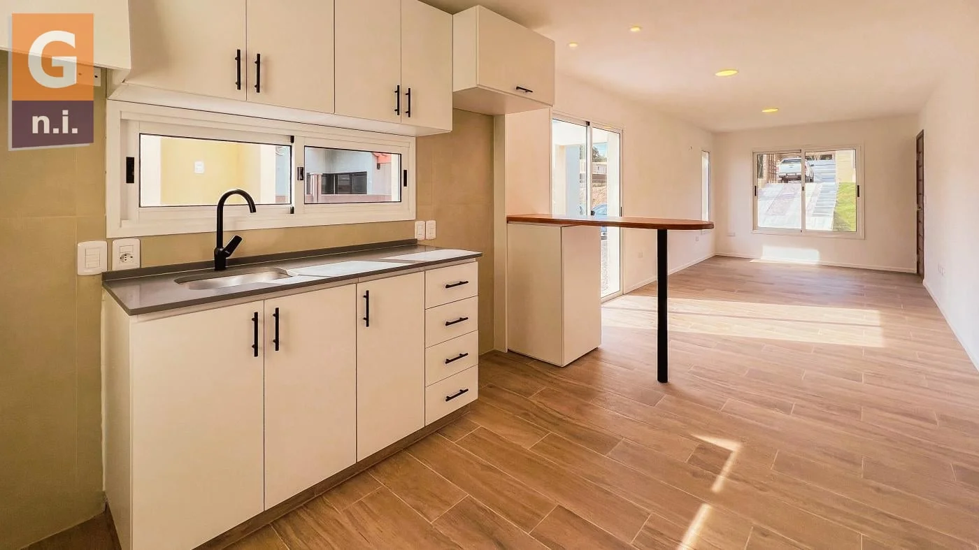 La unidad se distribuye en un luminoso living comedor, cocina integrada y baño social. A través de un pequeño pasillo distribuidor se accede a dos cómodos dormitorios y baño completo.