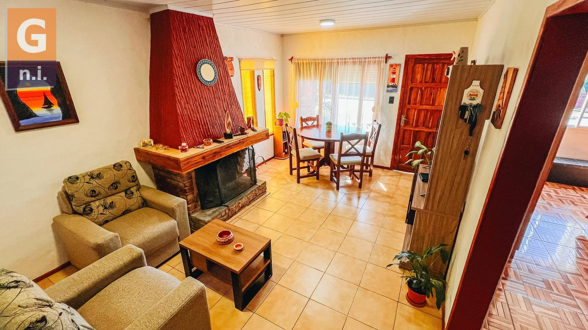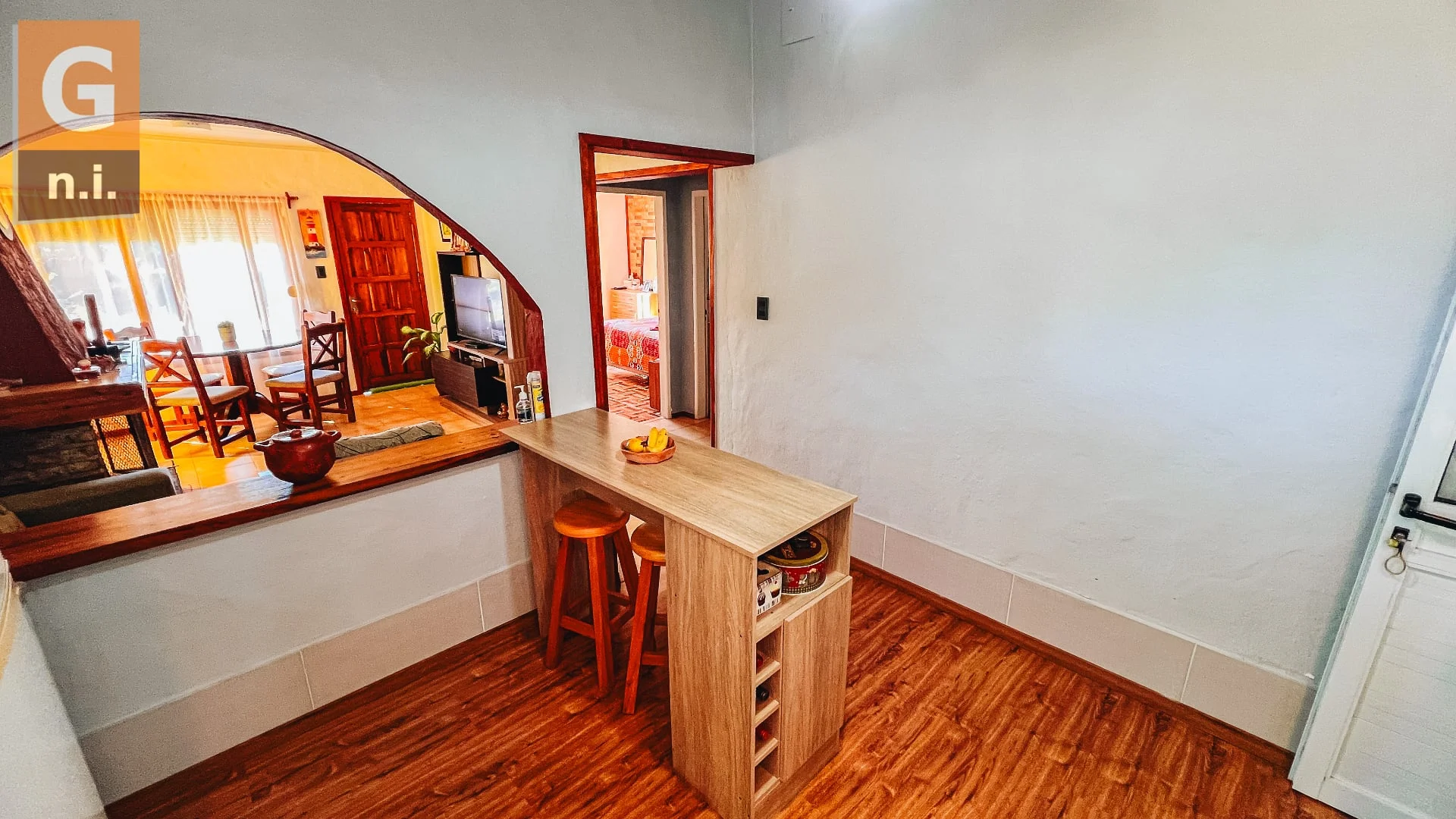 Distribuida en una sola planta, ofrece un luminoso living comedor con estufa a leña, ideal para disfrutar en todas las estaciones. La cocina es semi integrada y está equipada con muebles aéreos y bajo mesada. Dispone de baño social completo, un dormitorio principal con agradable vista al Cerro Pan de Azúcar y dos dormitorios adicionales, uno de ellos con baño en suite.