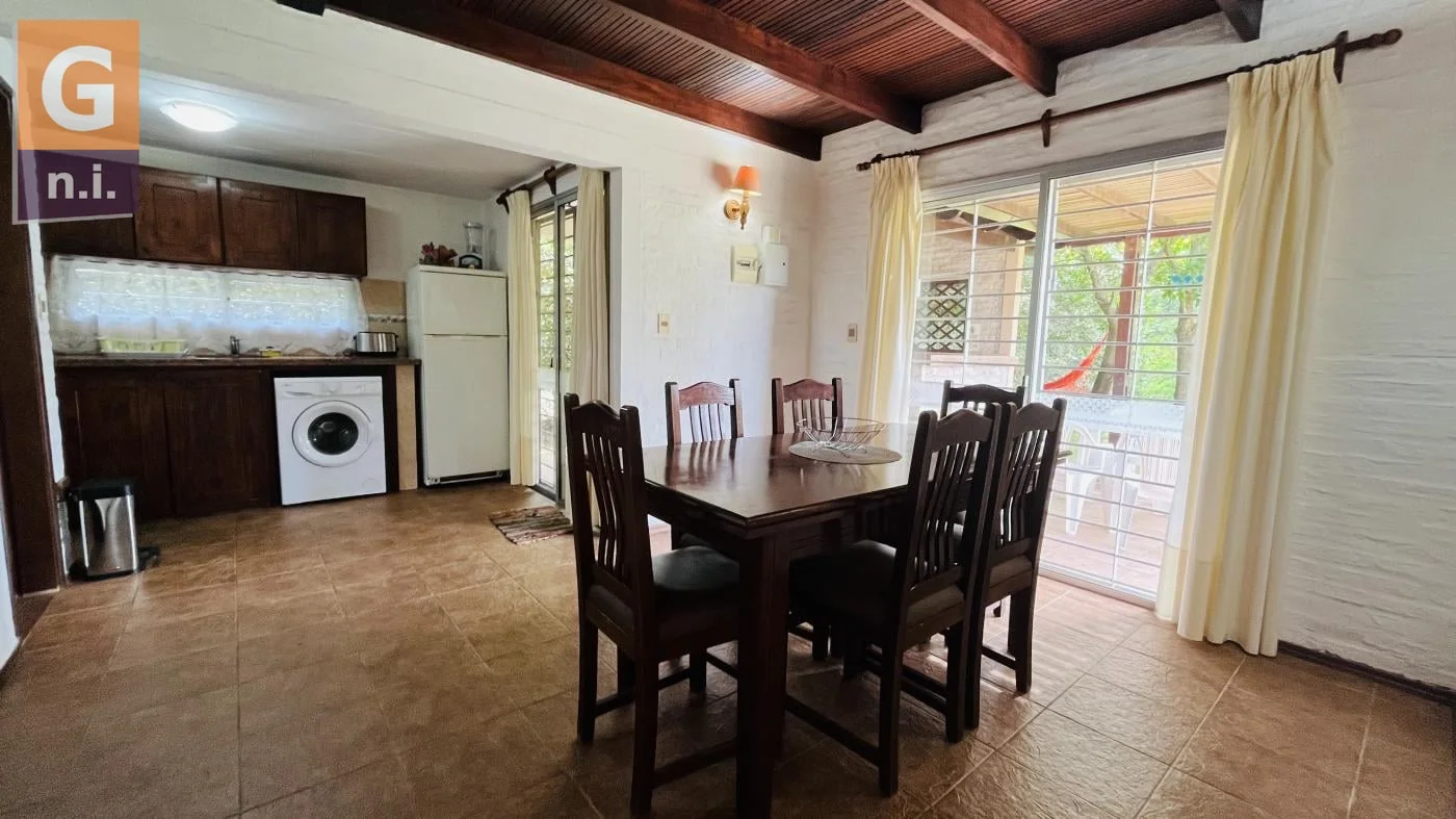 Se trata de una casa de 2 plantas que se distribulle de la siguiente manera: al ingresar tenemos el living, comedor y cocina completamente equipada y un baño, en la plata de arriba cuenta con baño completo, 1 dormitorio con 2 cuchetas y el otro dormitorio con cama matrimonial y aire acondicionado.
