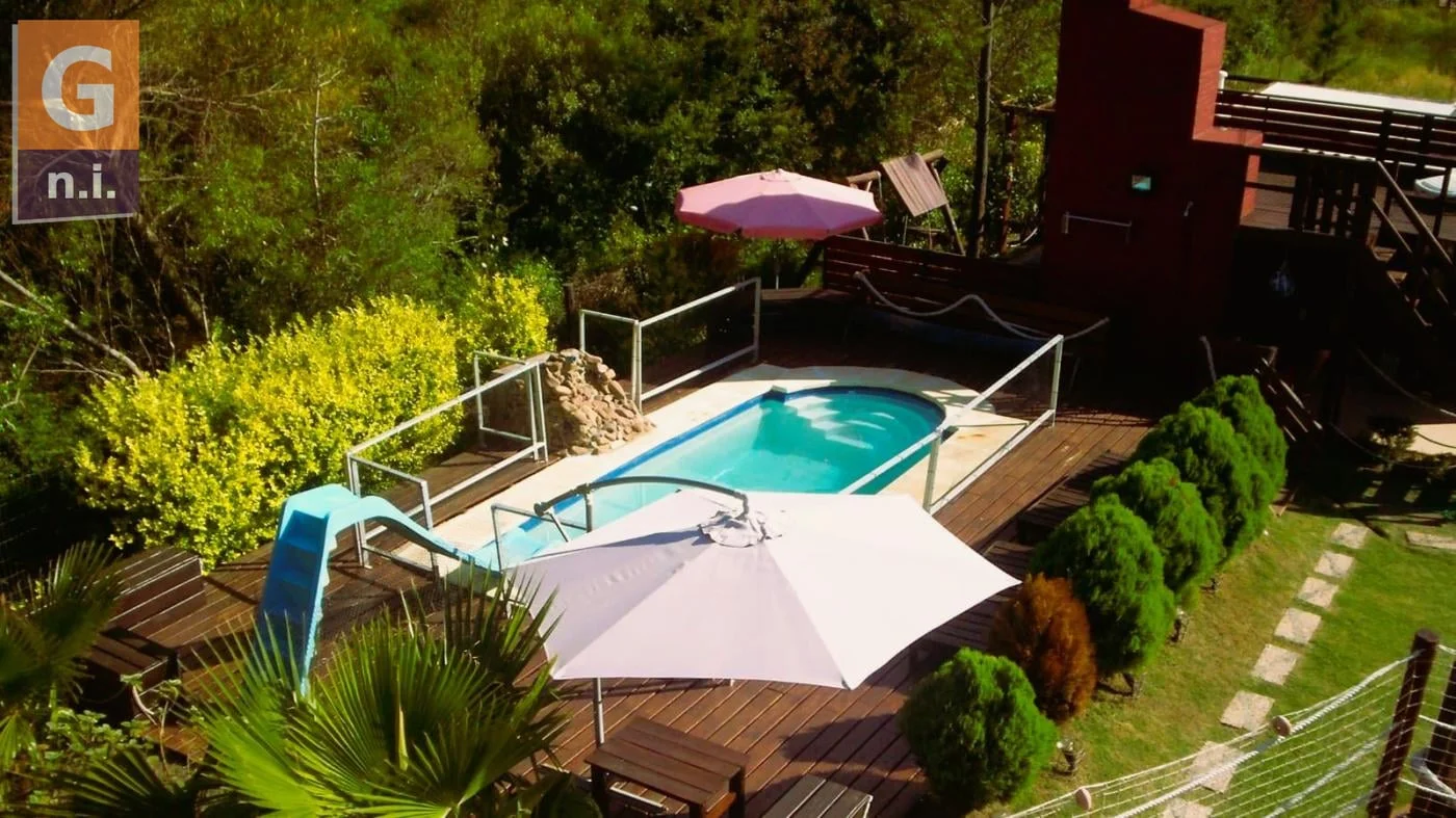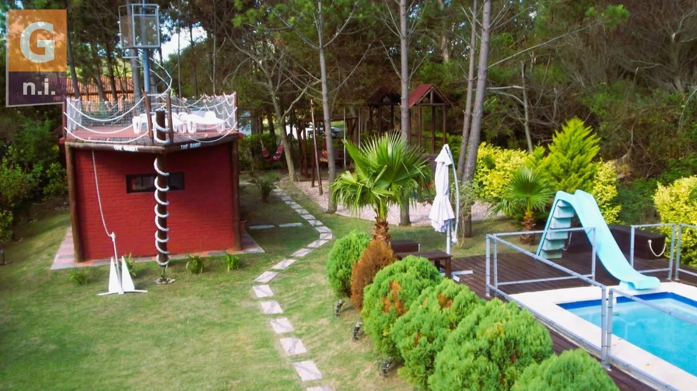 En el exterior, la propiedad ofrece un parrillero techado, un agradable jardín con piscina, además de una zona de juegos de madera al aire libre y un espacio de juegos cerrado con pool y mesa de ping pong. Desde allí, una escalera conduce a un pintoresco mirador ideal para relajarse y disfrutar de la vista.