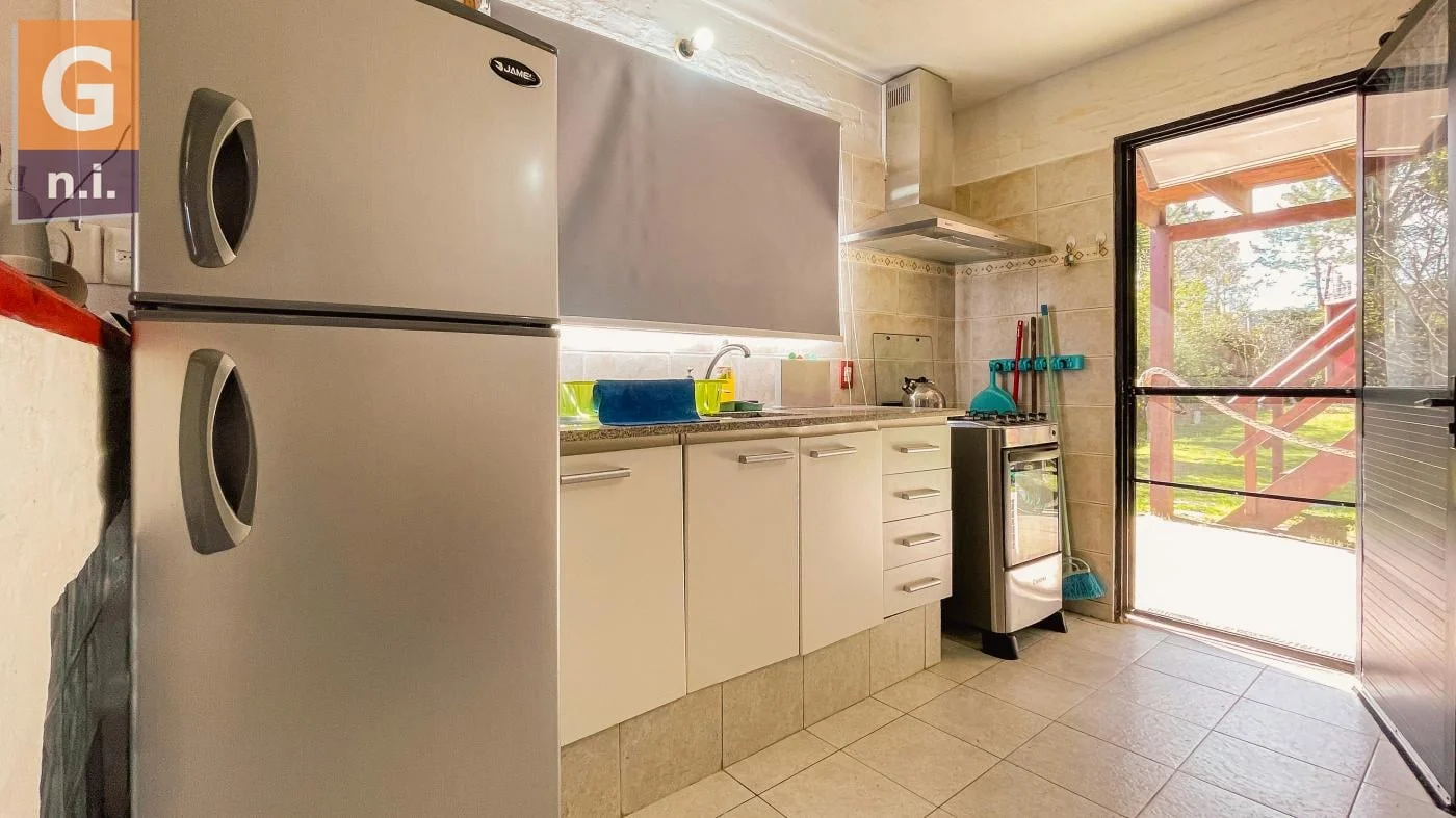 La casa se desarrolla en una planta y nos recibe con un cálido living comedor con estufa y cocina integrada. Un pequeño pasillo distribuidor conecta con el dormitorio matrimonial, un baño completo y un segundo dormitorio con cama cucheta.