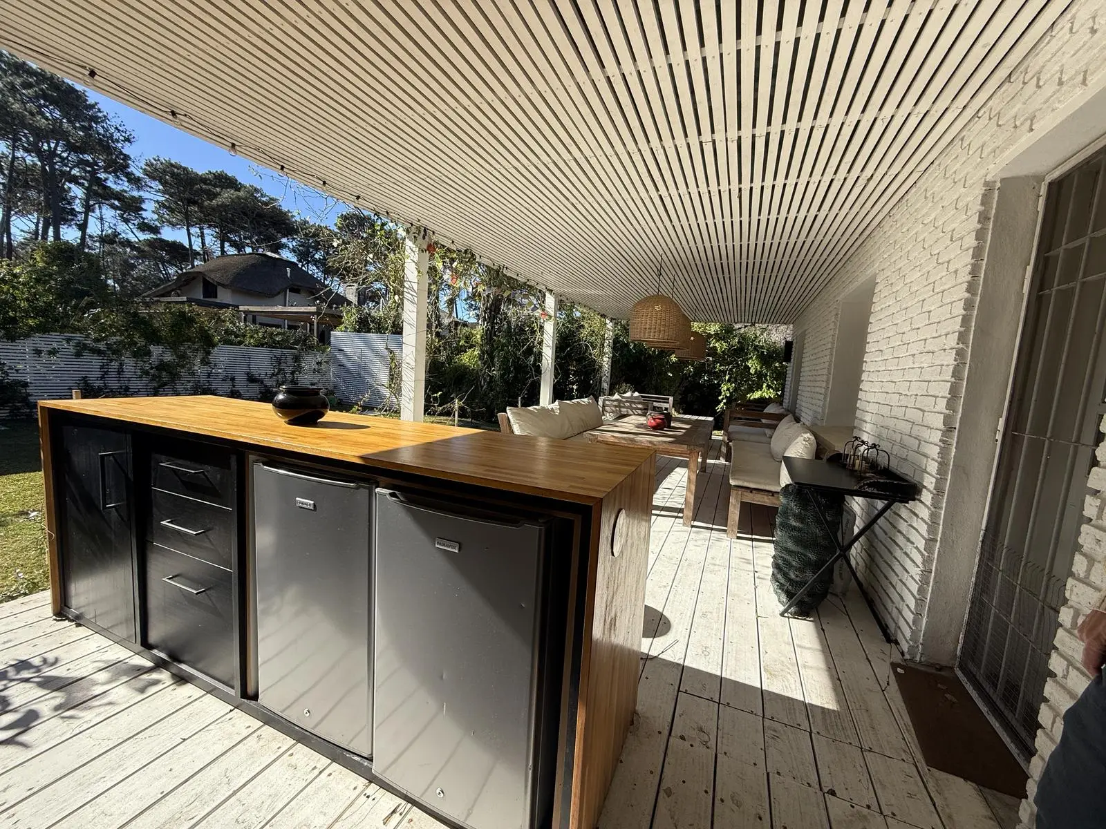 Barbacoa completa con gran parrilla, heladeras independientes de la cocina y baño propio para visitas.