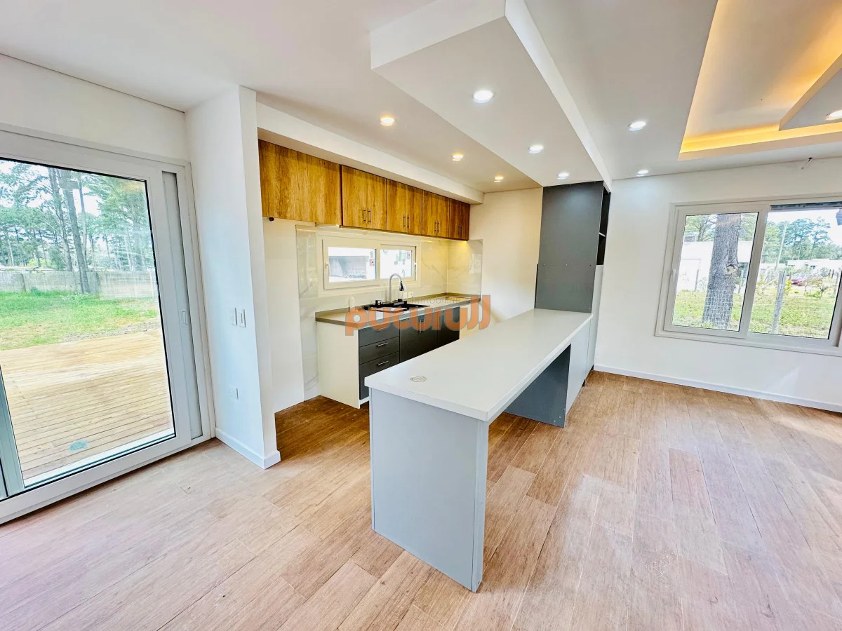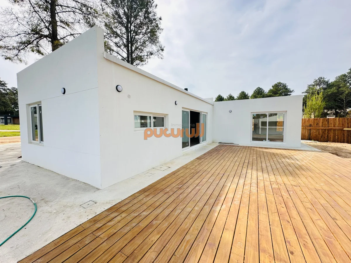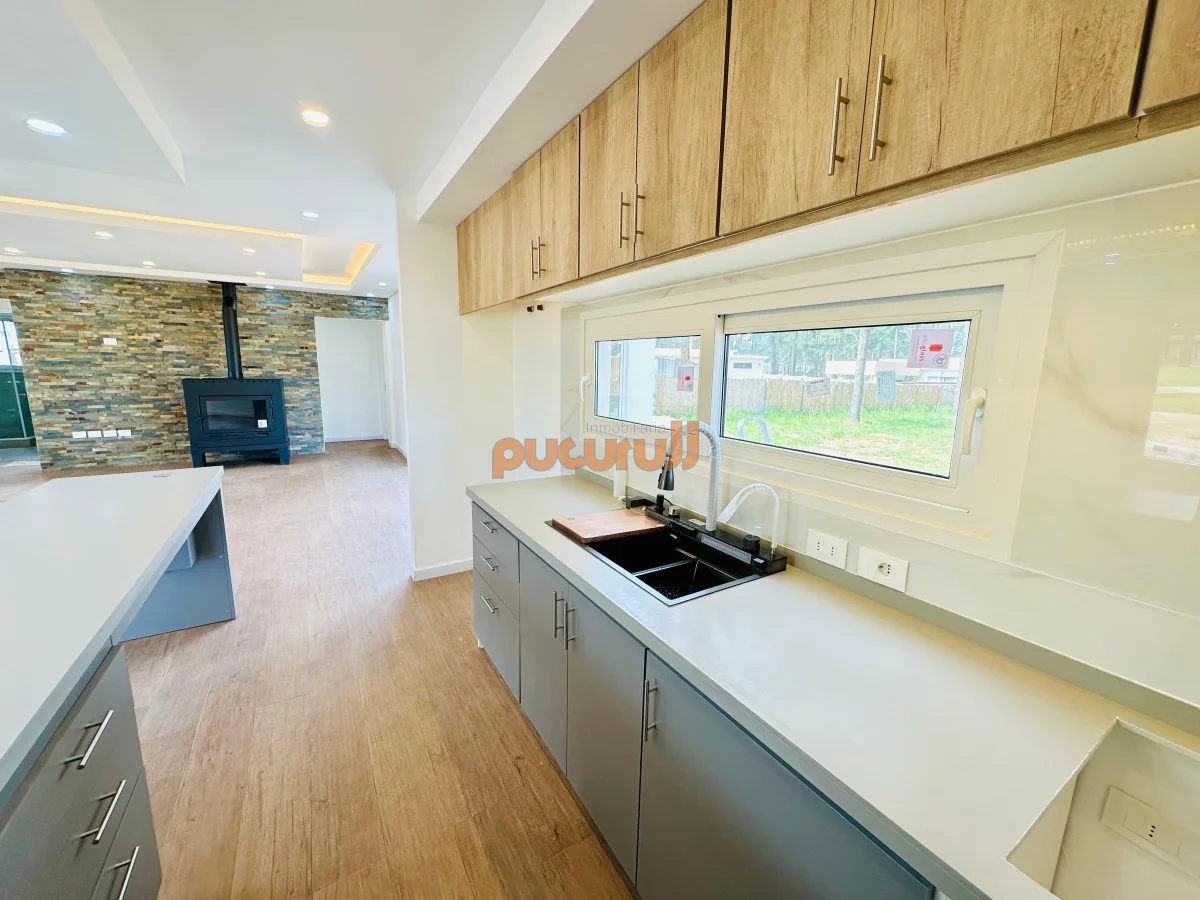 Desarrollada en una sola planta, con 3 dormitorios, 2 baños, uno de ellos en suite, Cocina Integrada, amplio y luminoso living-comedor con estufa a leña. Áreas amplias y bien distribuidas.