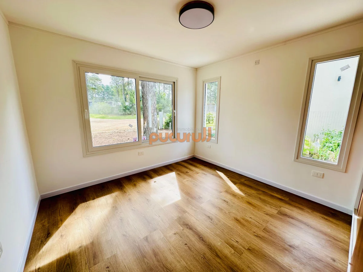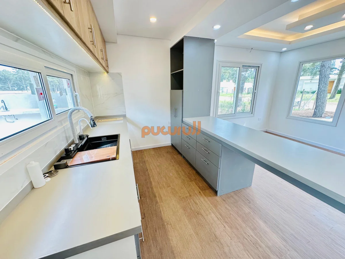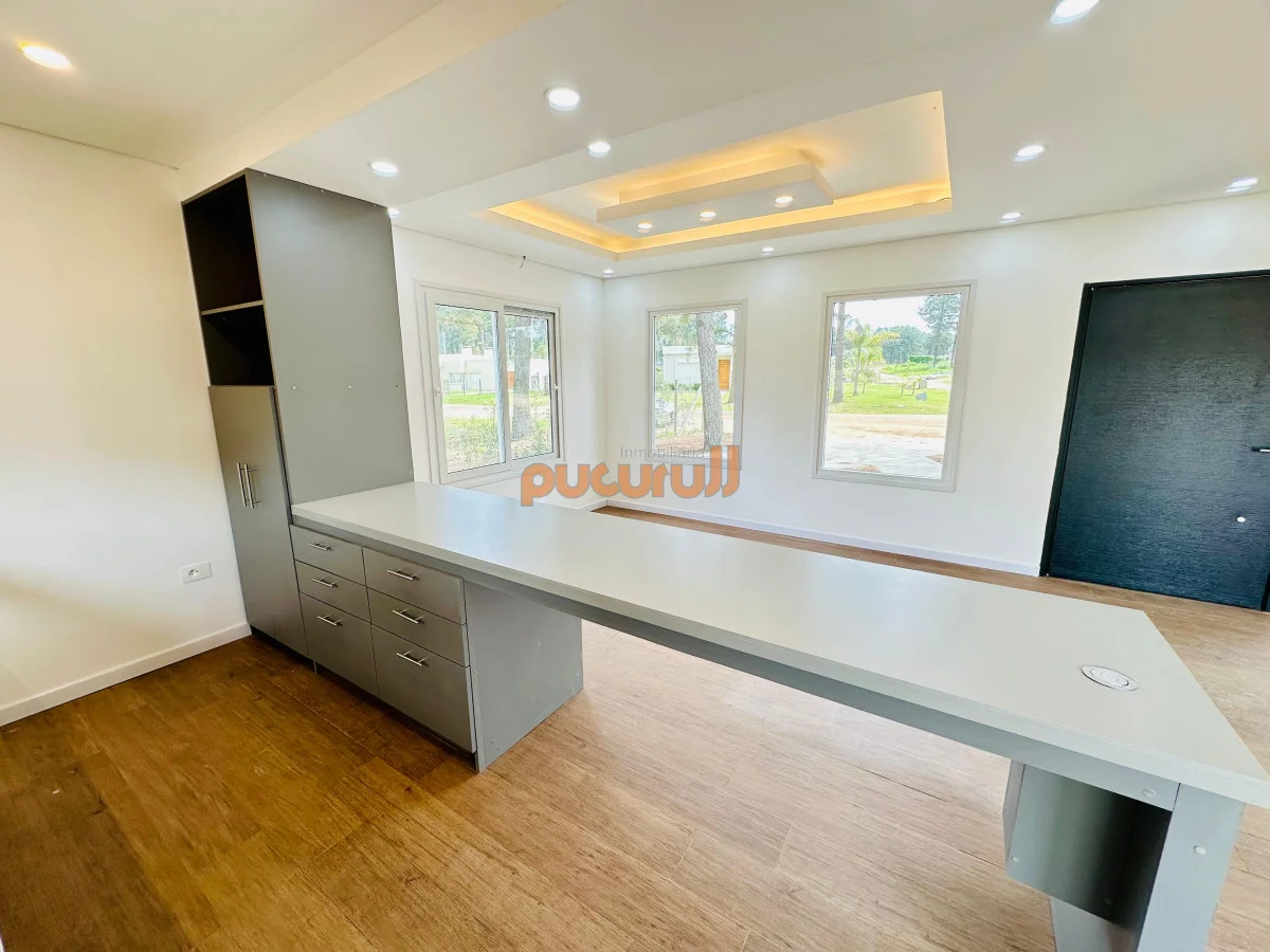 Desarrollada en una sola planta, con 3 dormitorios, 2 baños, uno de ellos en suite, Cocina Integrada, amplio y luminoso living-comedor con estufa a leña. Áreas amplias y bien distribuidas.