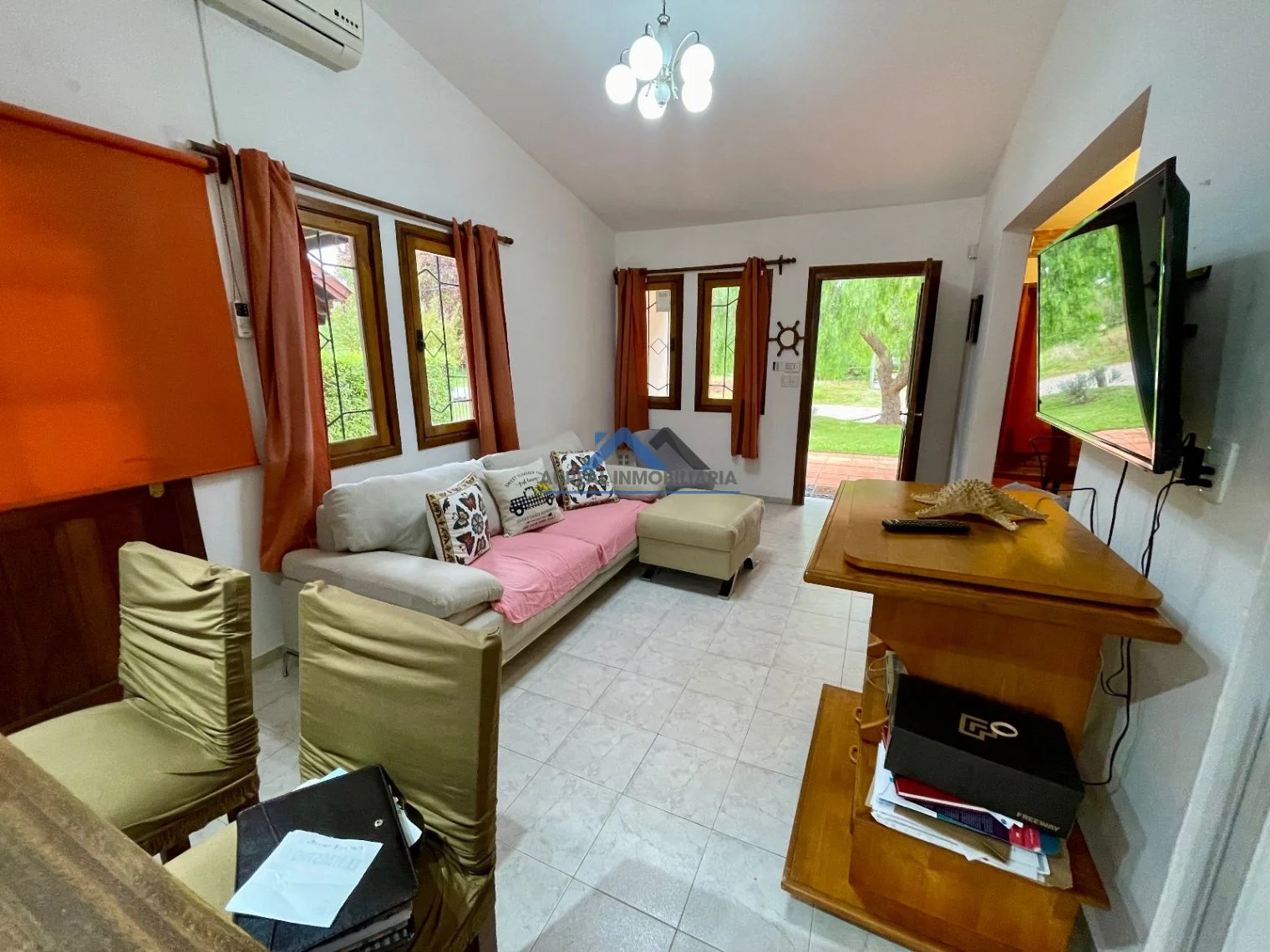 El amplio living, equipado con un calefactor de alto rendimiento que distribuye aire hacia las habitaciones, garantiza confort durante los meses de invierno . Además, cada habitación está climatizada con aire acondicionado para su mayor comodidad.