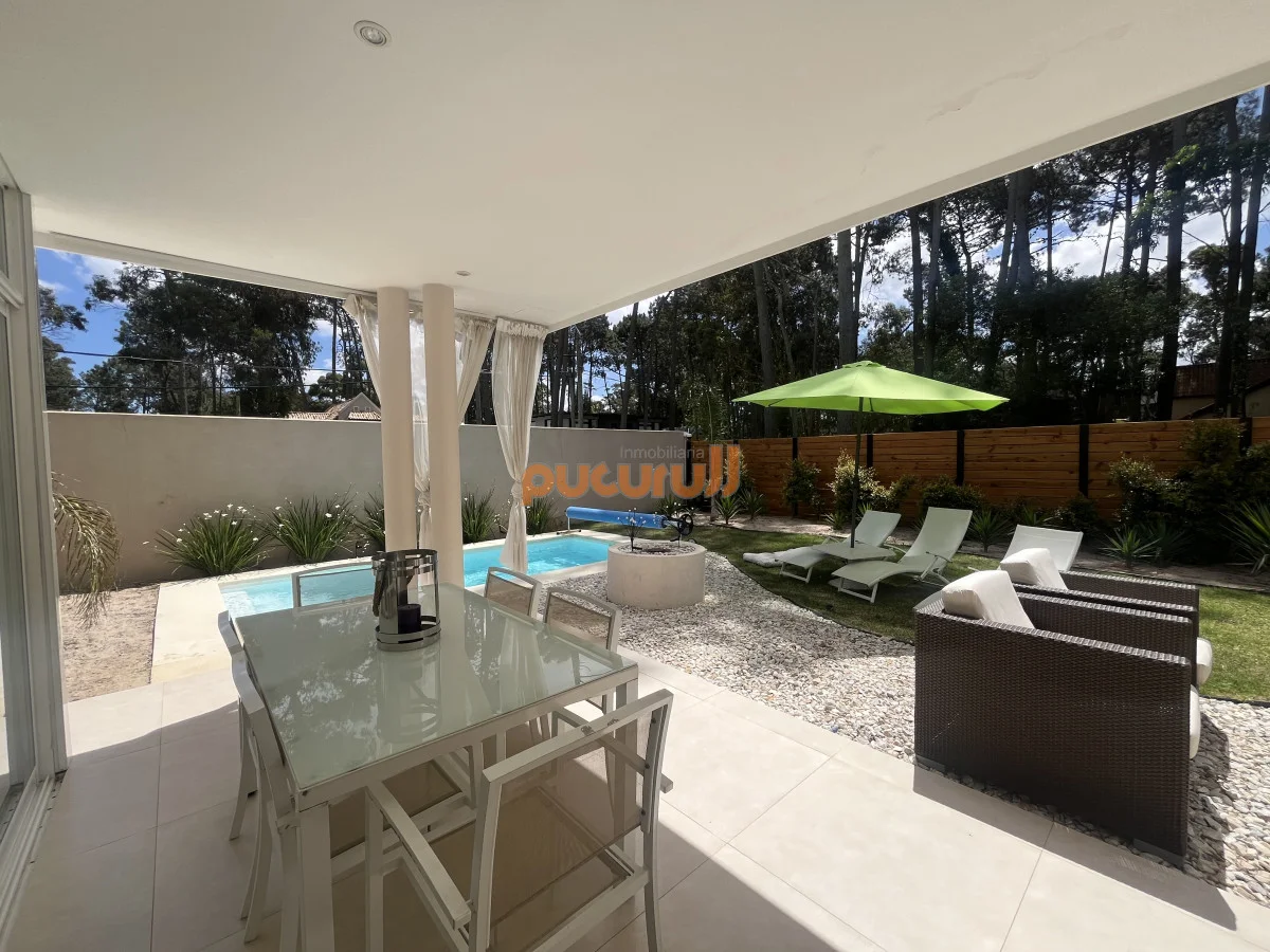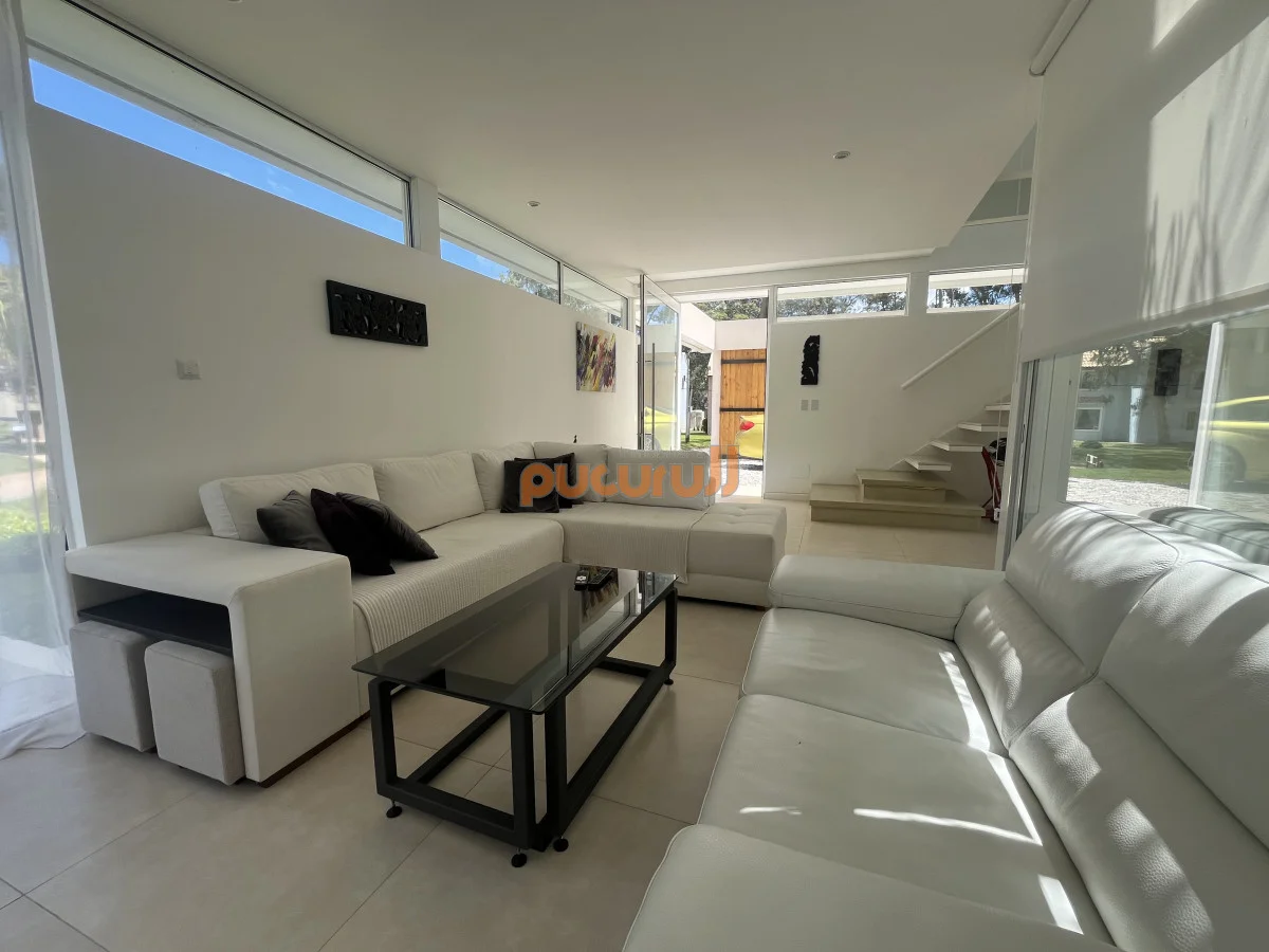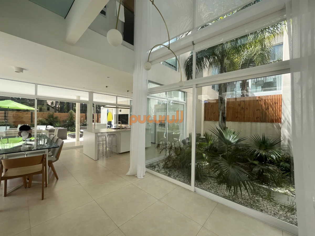 Desarrollada en dos plantas, combina diseño, funcionalidad y confort. En planta baja cuenta con un living amplio, comedor con cocina integrada y salida directa al sector exterior, donde se ubican la barbacoa, la piscina con bomba de calor y un hermoso fondo verde. También dispone de un jardín interno, que aporta luminosidad y frescura al interior. De excelente calidad constructiva, realizada en steel framing con techo de isopanel, aberturas DVH y grandes ventanales que llenan los espacios de luz natural y conectan con el entorno verde.