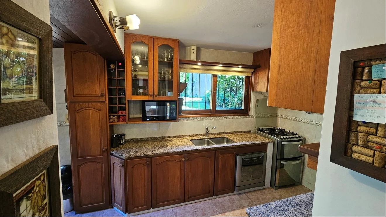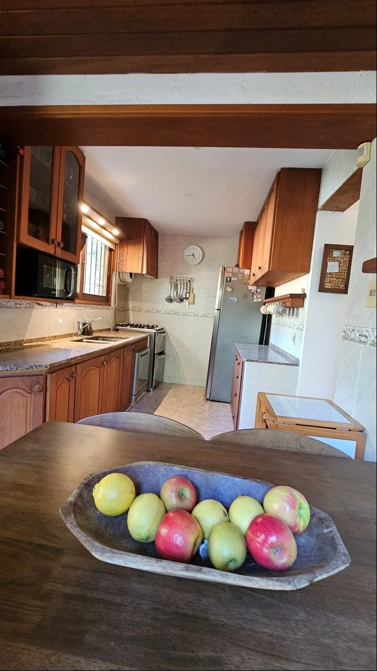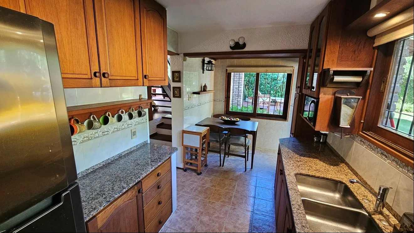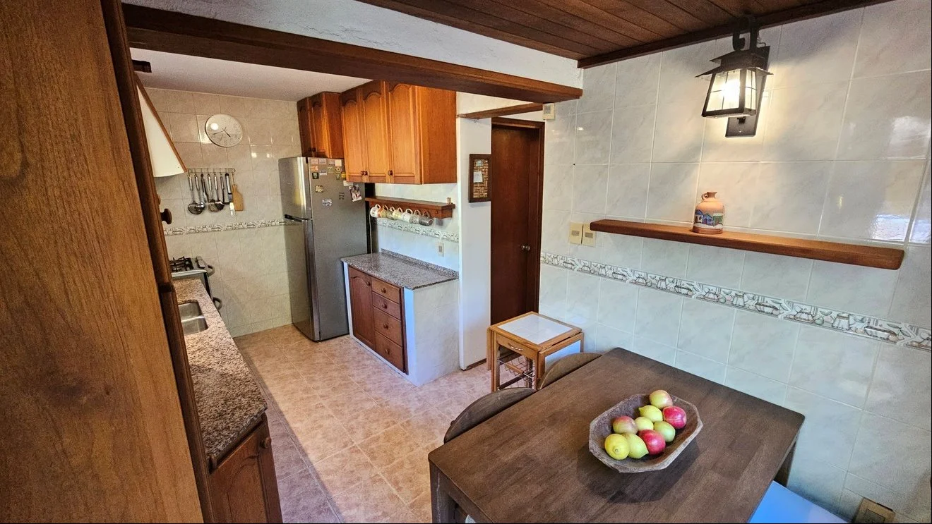 En un terreno de 612 m², con 150 m² construidos, disfrutarás de: 3 dormitorios y 2 baños Acogedor living comedor con estufa a leña Cocina definida con desayunador y salida directa al jardín Jardín trasero con barbacoa techada, ideal para reuniones, además de un servicio completo con baño. La losa radiante en el living y la excelente orientación solar garantizan confort durante todo el año.