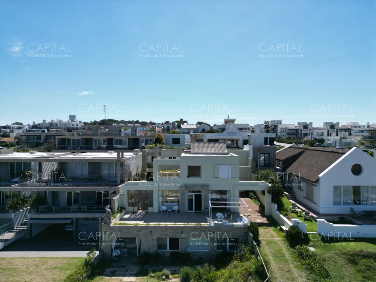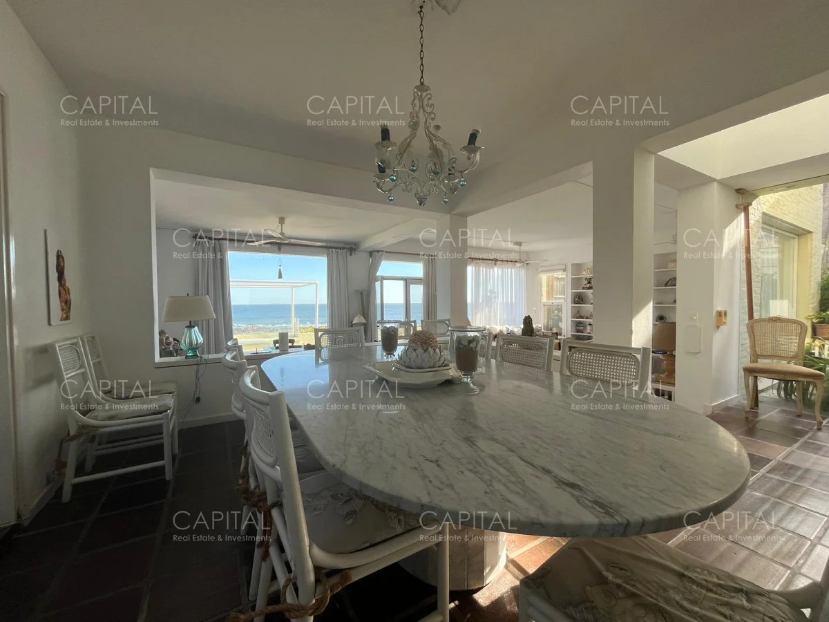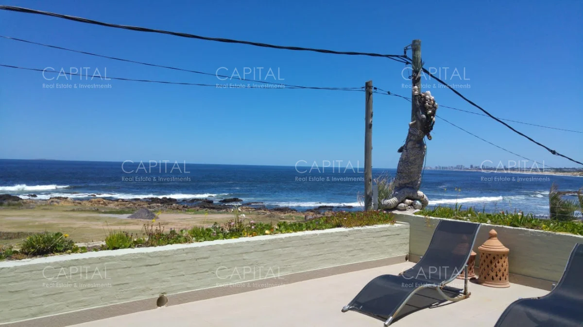 Espectacular casa con ubicación privilegiada, frente a la Playa de las Caracolas. Construcción de dos plantas con espectaculares vistas al mar. En la planta baja, amplio y luminoso living-comedor con grandes ventanales al mar, cocina bien equipada, toilette de visitas y un dormitorio en suite. Dependencia de servicio con su baño.