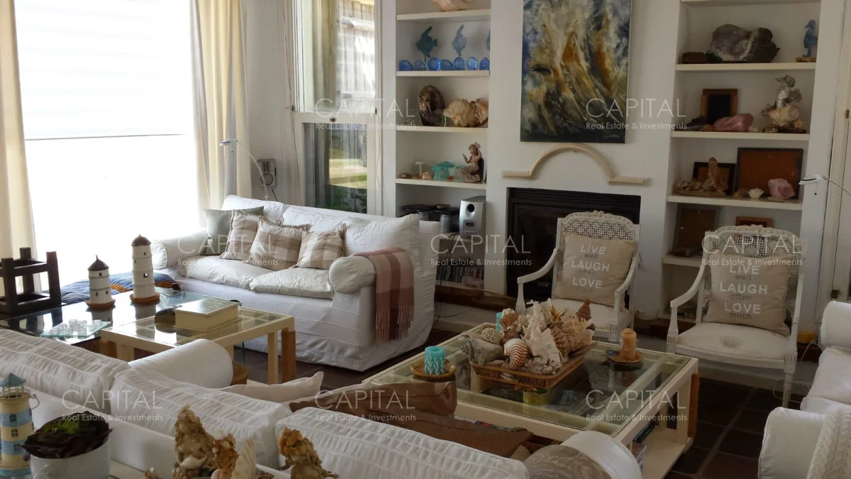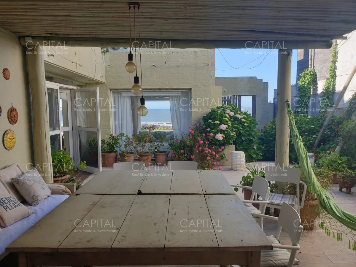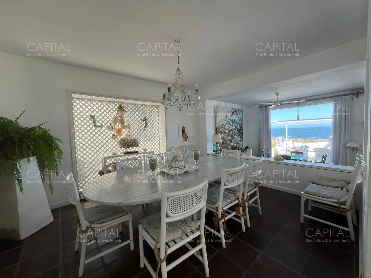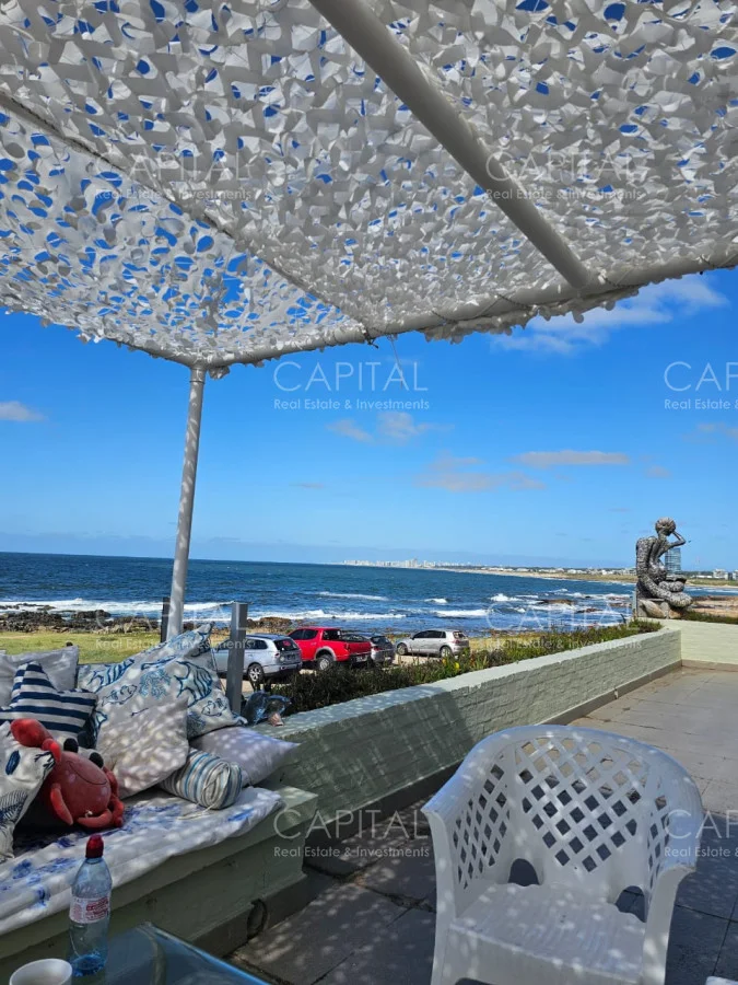 Espectacular casa con ubicación privilegiada, frente a la Playa de las Caracolas. Construcción de dos plantas con espectaculares vistas al mar. En la planta baja, amplio y luminoso living-comedor con grandes ventanales al mar, cocina bien equipada, toilette de visitas y un dormitorio en suite. Dependencia de servicio con su baño.