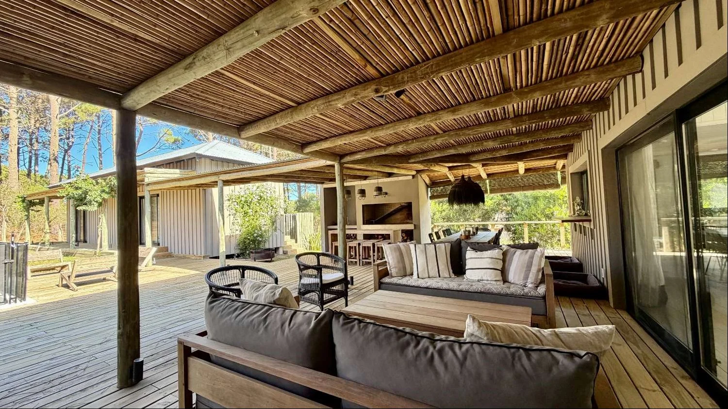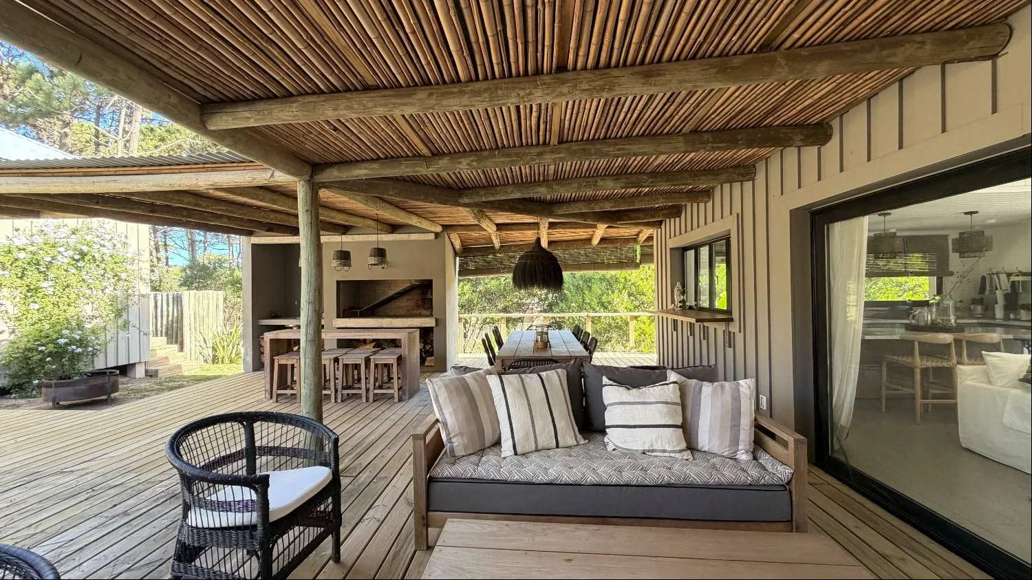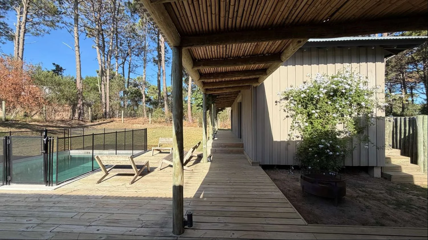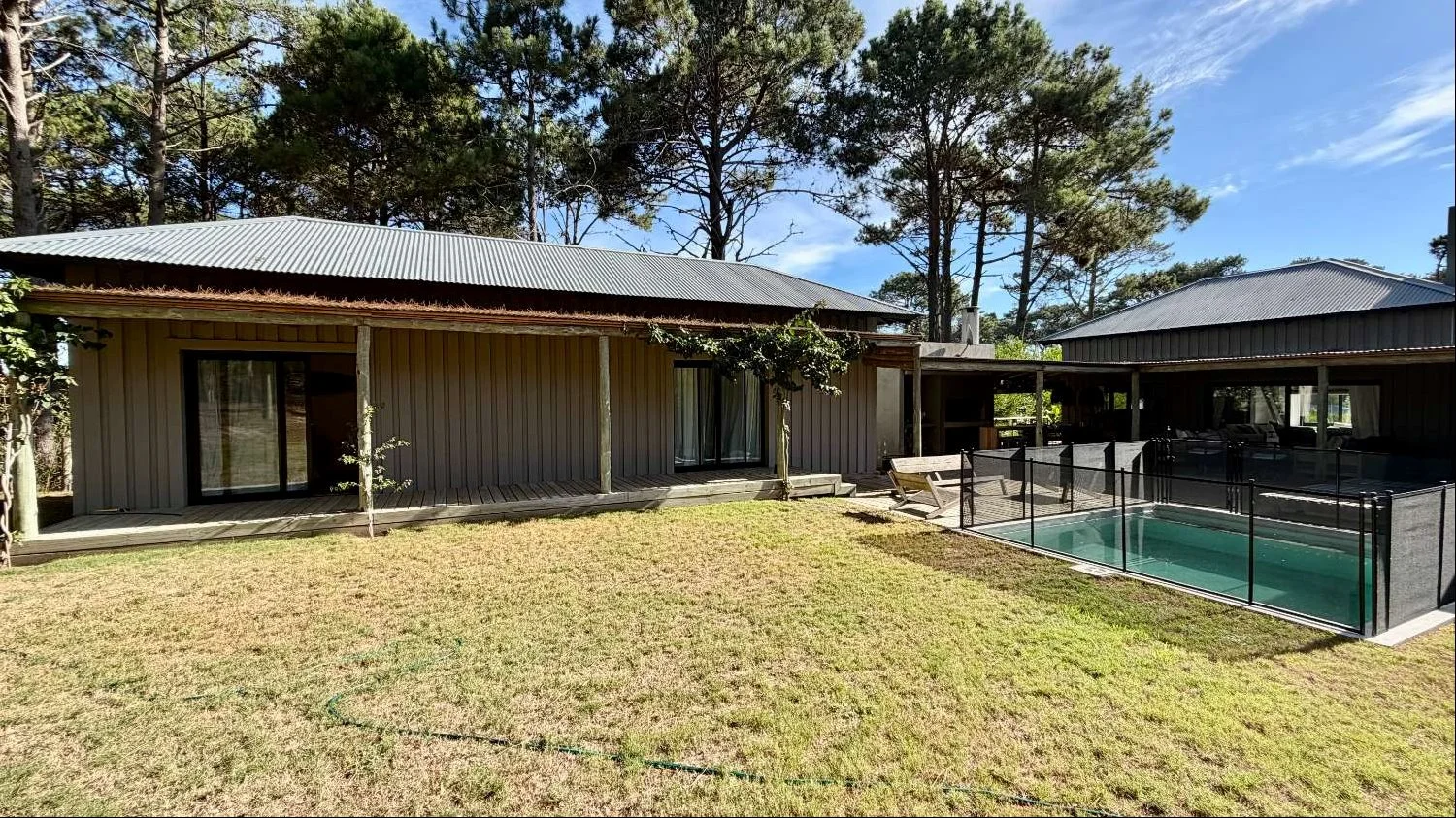 La propiedad está construida en un terreno elevado de 1000 m2, con 153 m2 cubiertos y 100 m2 de pérgolas y decks. Consta de dos construcciones separadas, con un total de tres dormitorios amplios y luminosos, uno de ellos dentro de la casa principal, y los otros dos, en una construcción externa e independiente a la casa, todos ellos con baños en suite, sumando un total de tres baños completos y un toilette adicional para mayor comodidad.