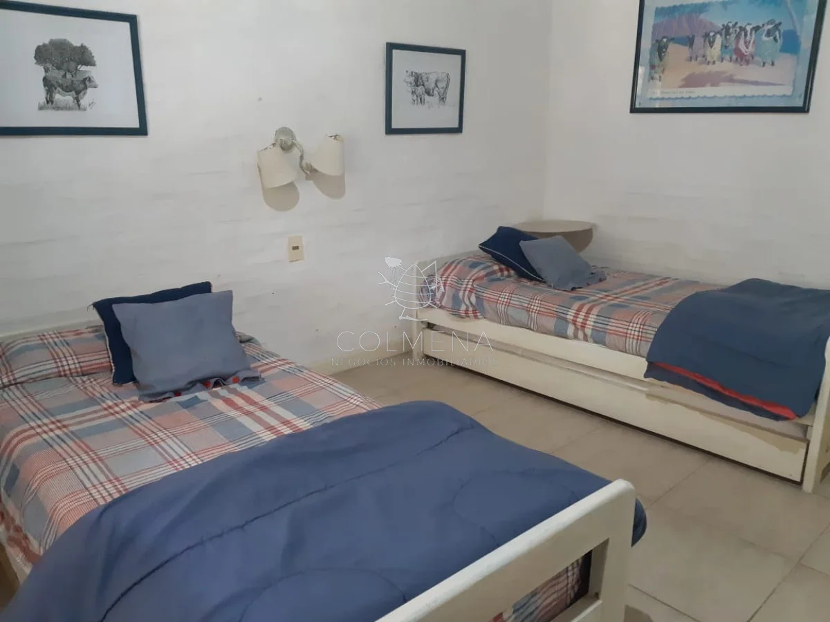 Encantadora casa en PH en Solanas, Punta Ballena, un verdadero oasis que combina confort y estilo en un entorno natural inigualable. Con una generosa superficie de 1014 m² de terreno, esta propiedad ofrece un espacio ideal para disfrutar con familia y amigos. Los niños juegan en un ambiente saludable y seguro. Tres suites amplias, diseñadas para brindar privacidad y descanso, con capacidad para alojar hasta 10 personas.