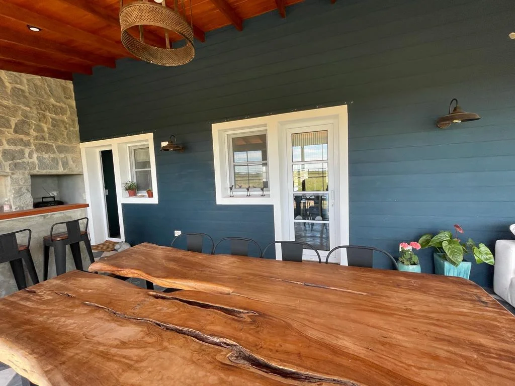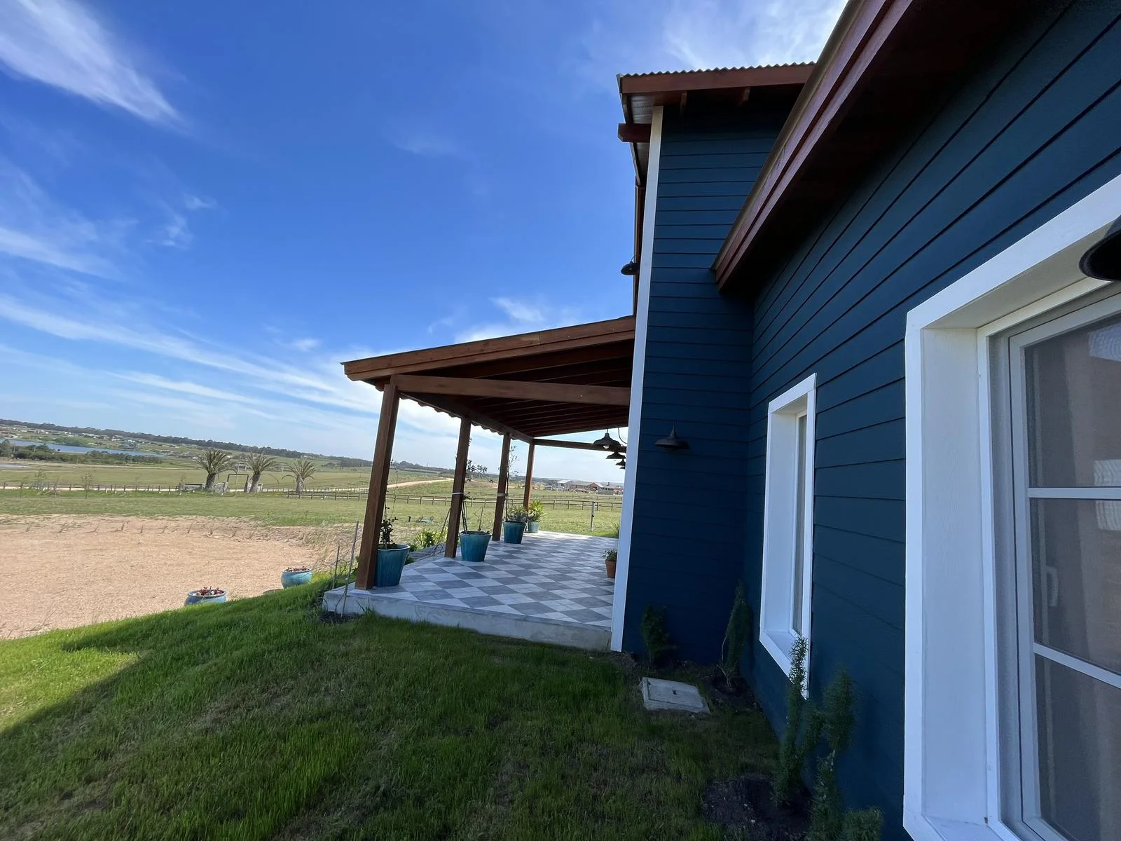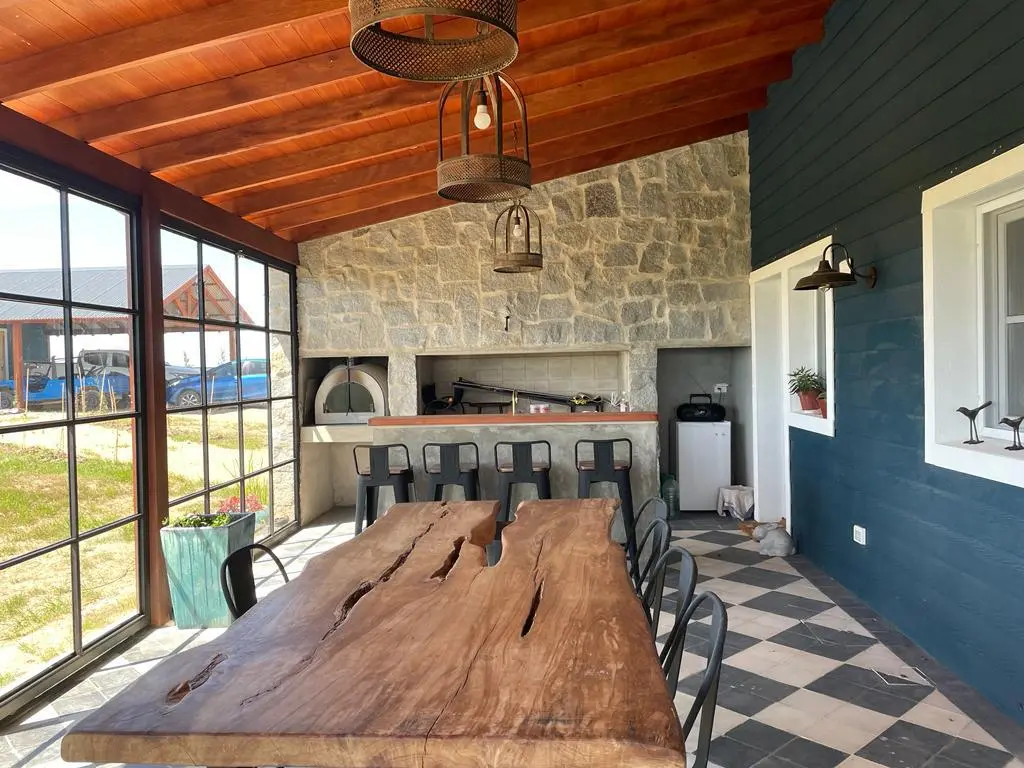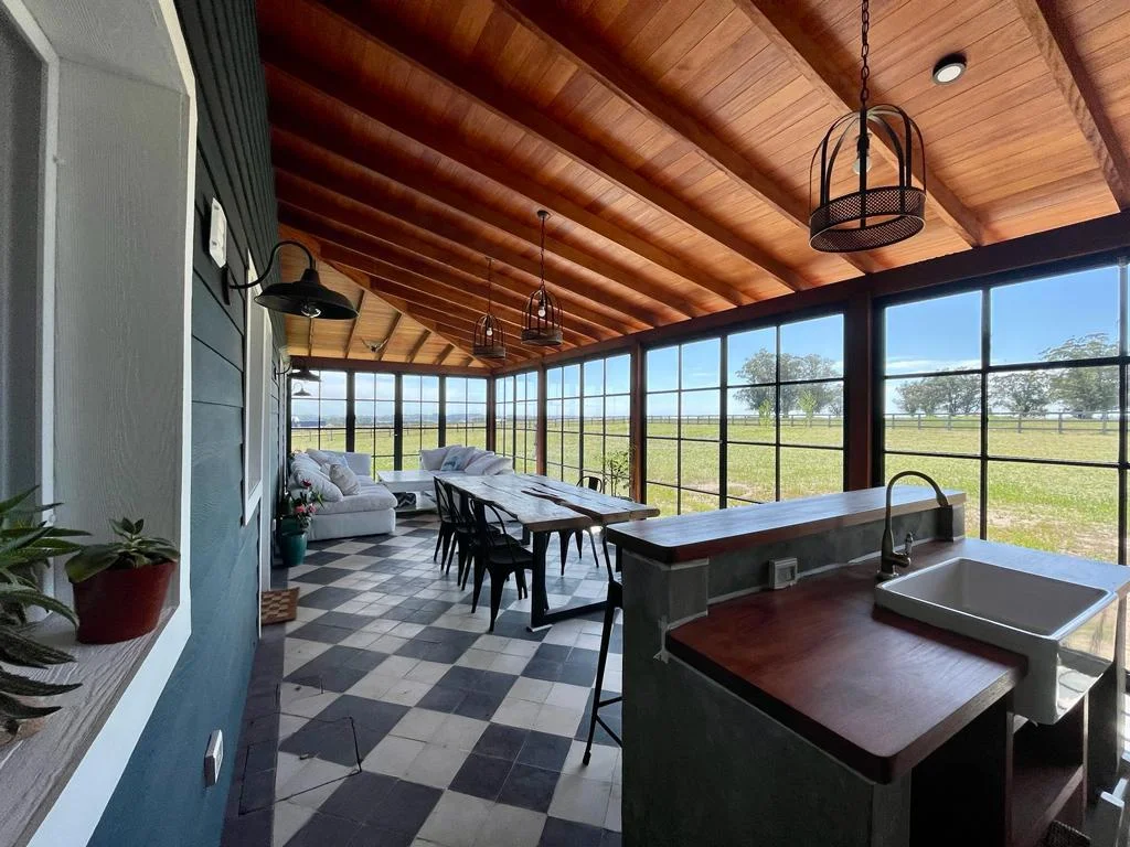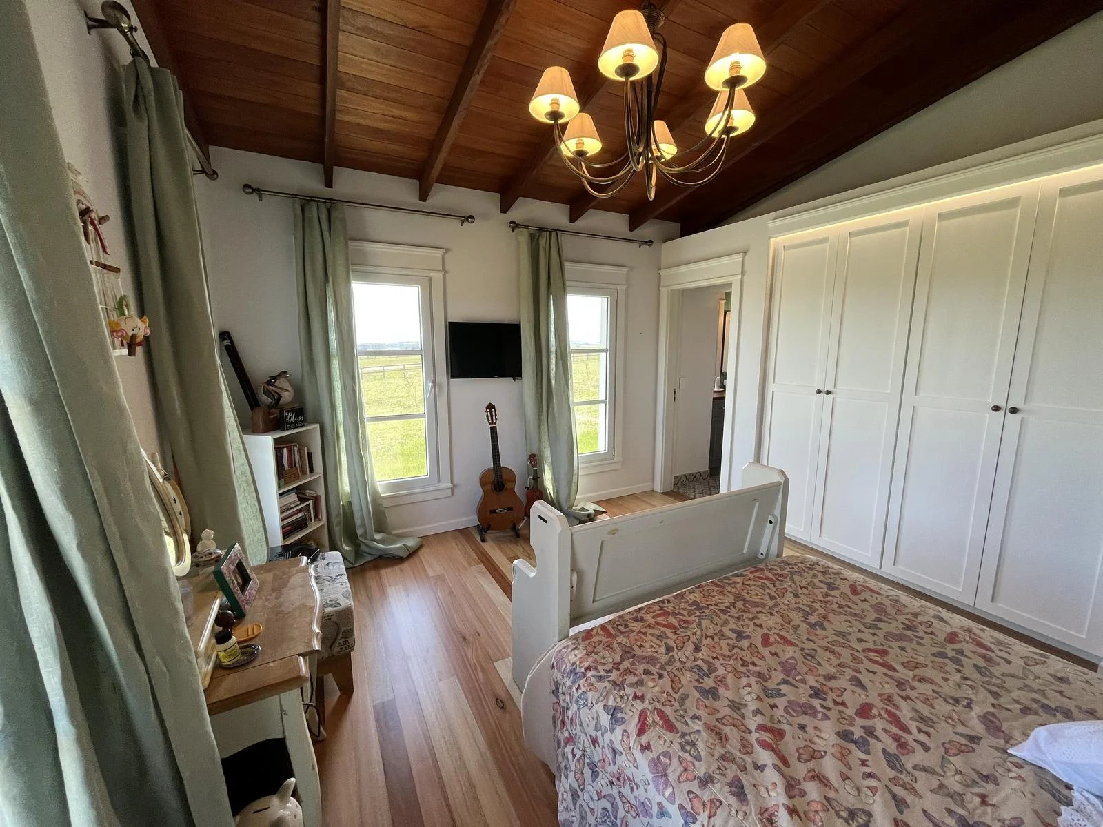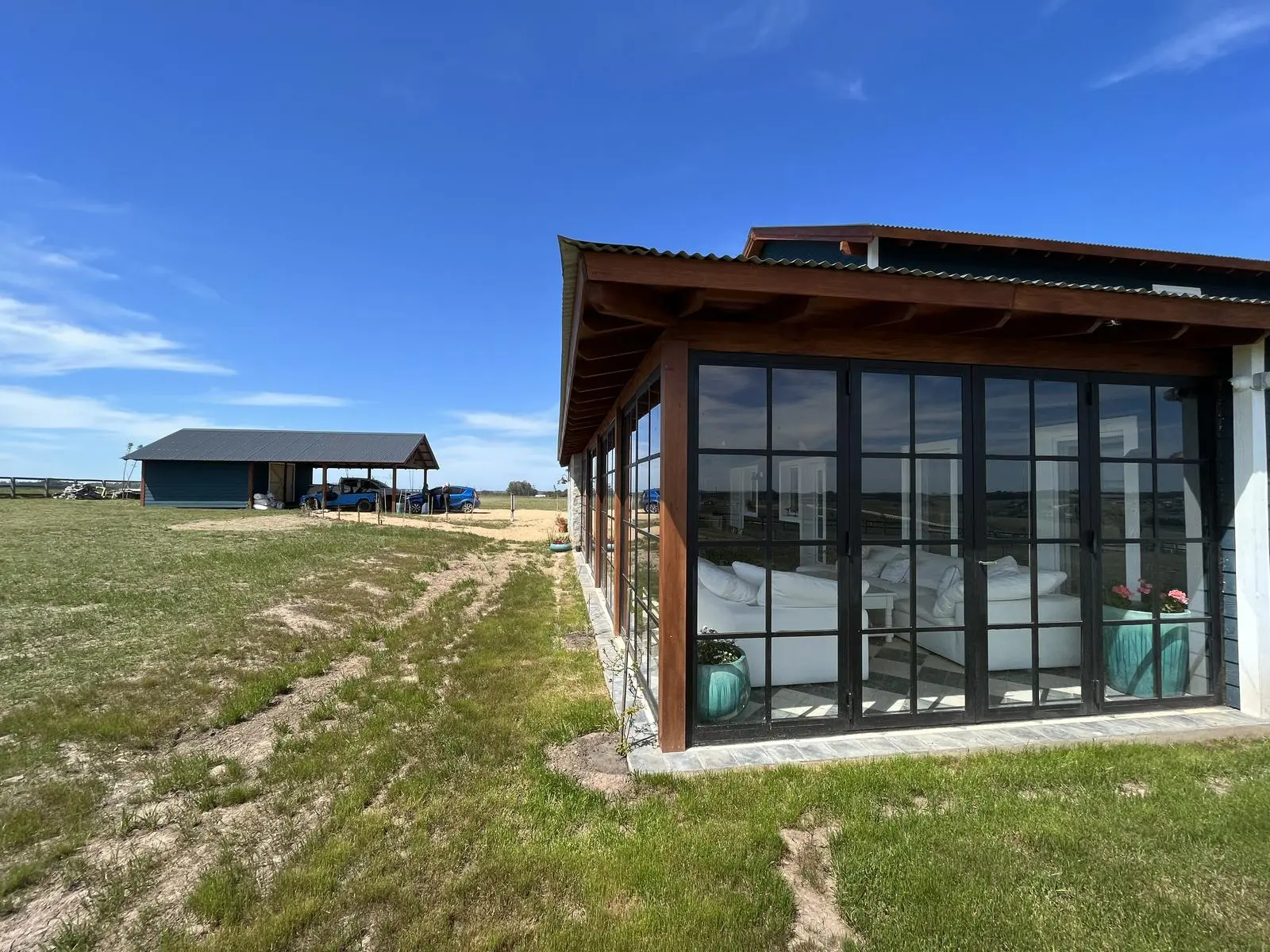 A estrenar y de gran tamaño, implantada en un terreno de 1 hectárea, esta casa de 448 m2 cuenta con tres dormitorios en suite, toilette y entrepiso que se utiliza como playroom con biblioteca y baño privado, el cual se podría transformar en otro dormitorio, con excelente vista al campo desde este segundo nivel.