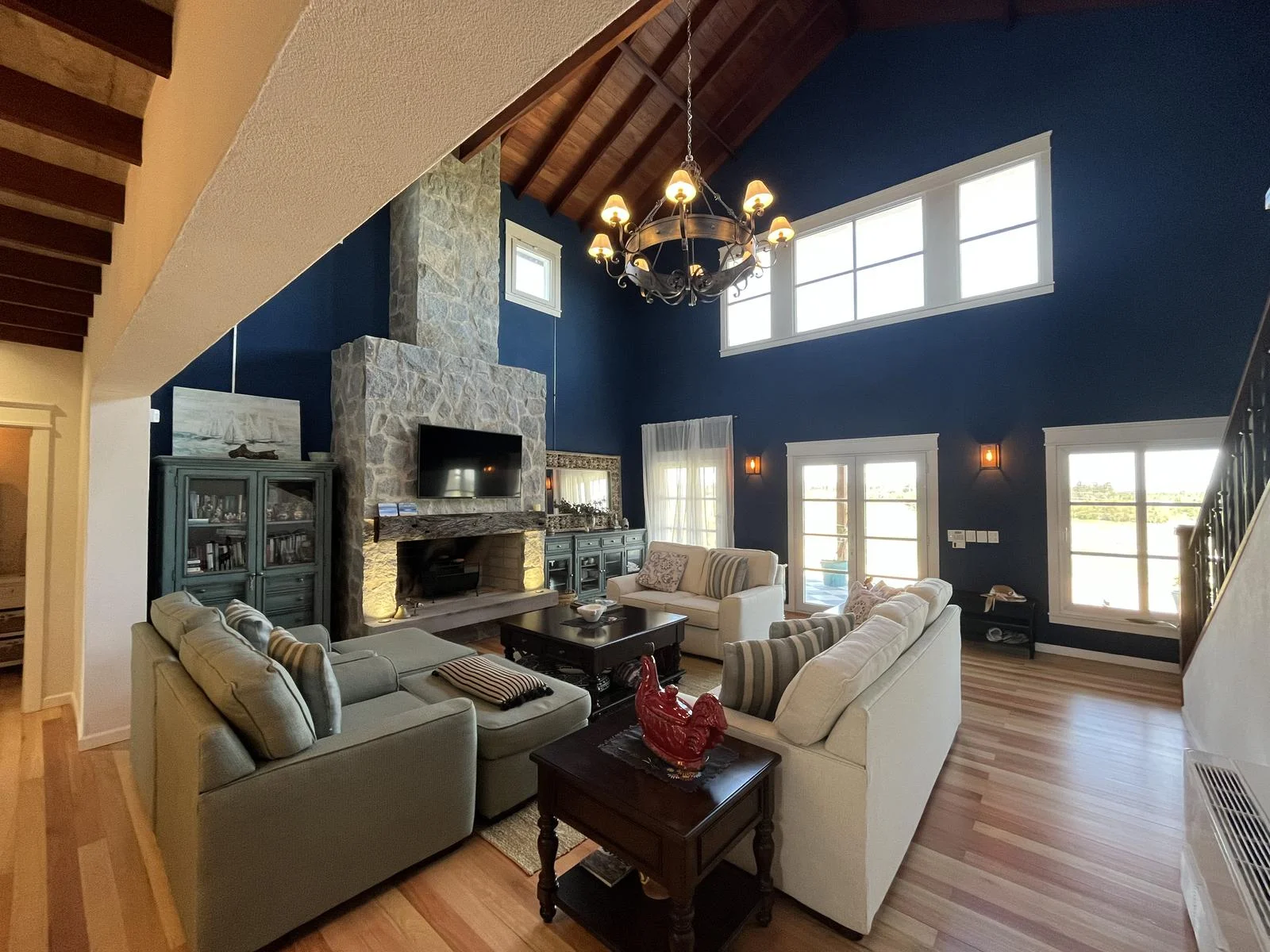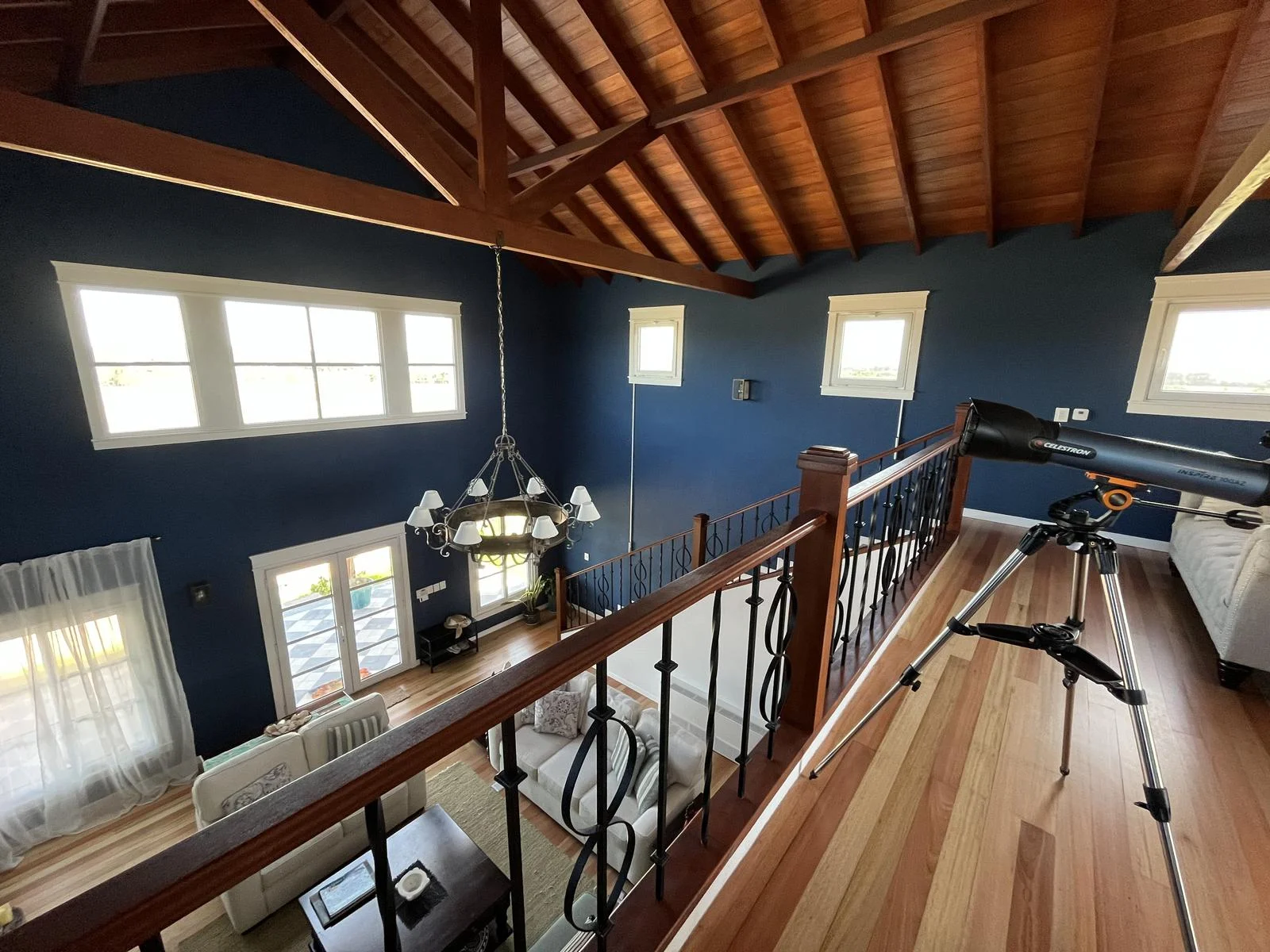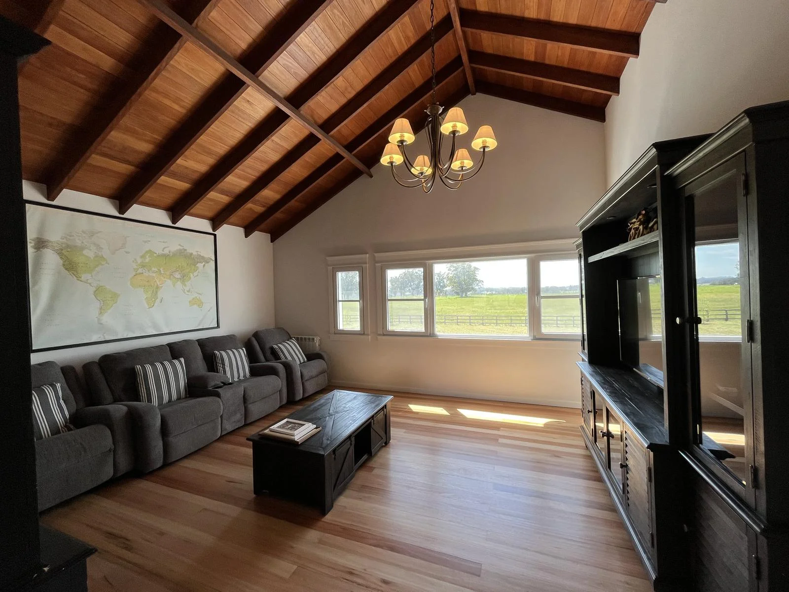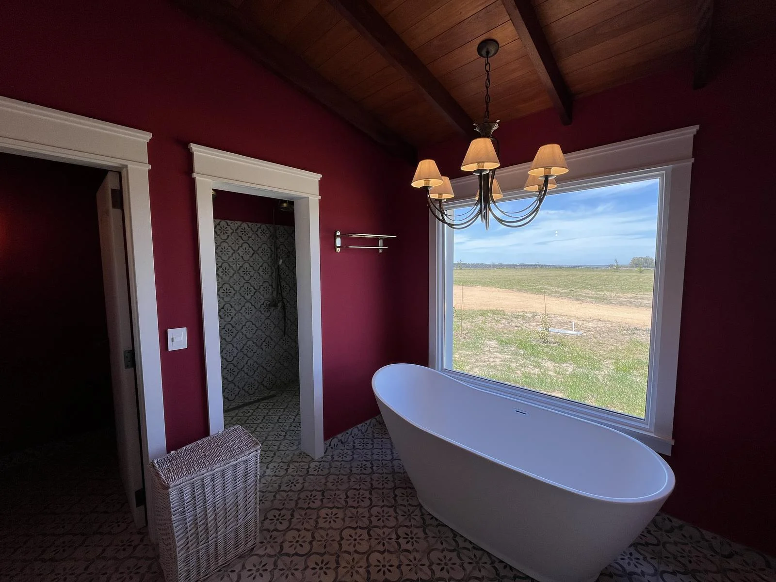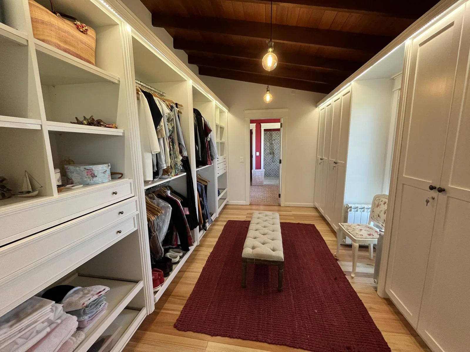 A estrenar y de gran tamaño, implantada en un terreno de 1 hectárea, esta casa de 448 m2 cuenta con tres dormitorios en suite, toilette y entrepiso que se utiliza como playroom con biblioteca y baño privado, el cual se podría transformar en otro dormitorio, con excelente vista al campo desde este segundo nivel.