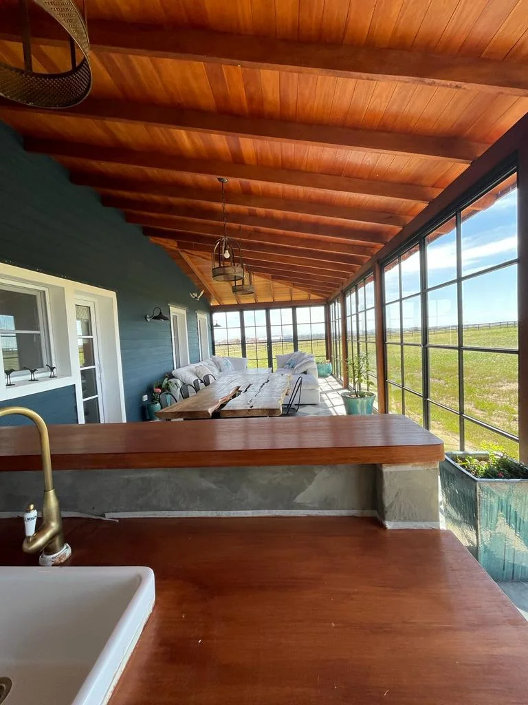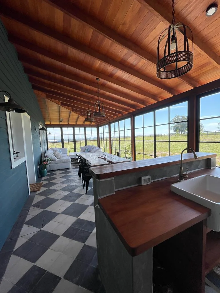 Desde el área de la cocina podemos acceder al jardín de invierno, donde se encuentra el parrillero y otro living.
