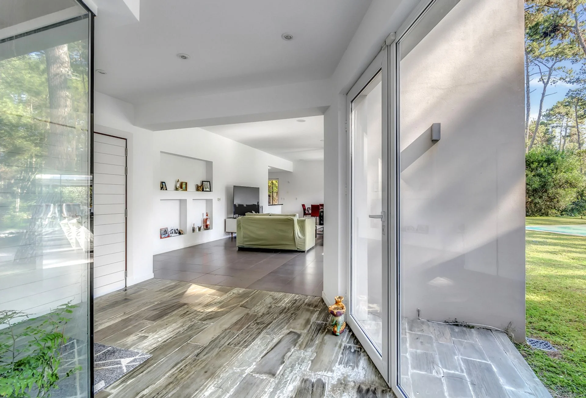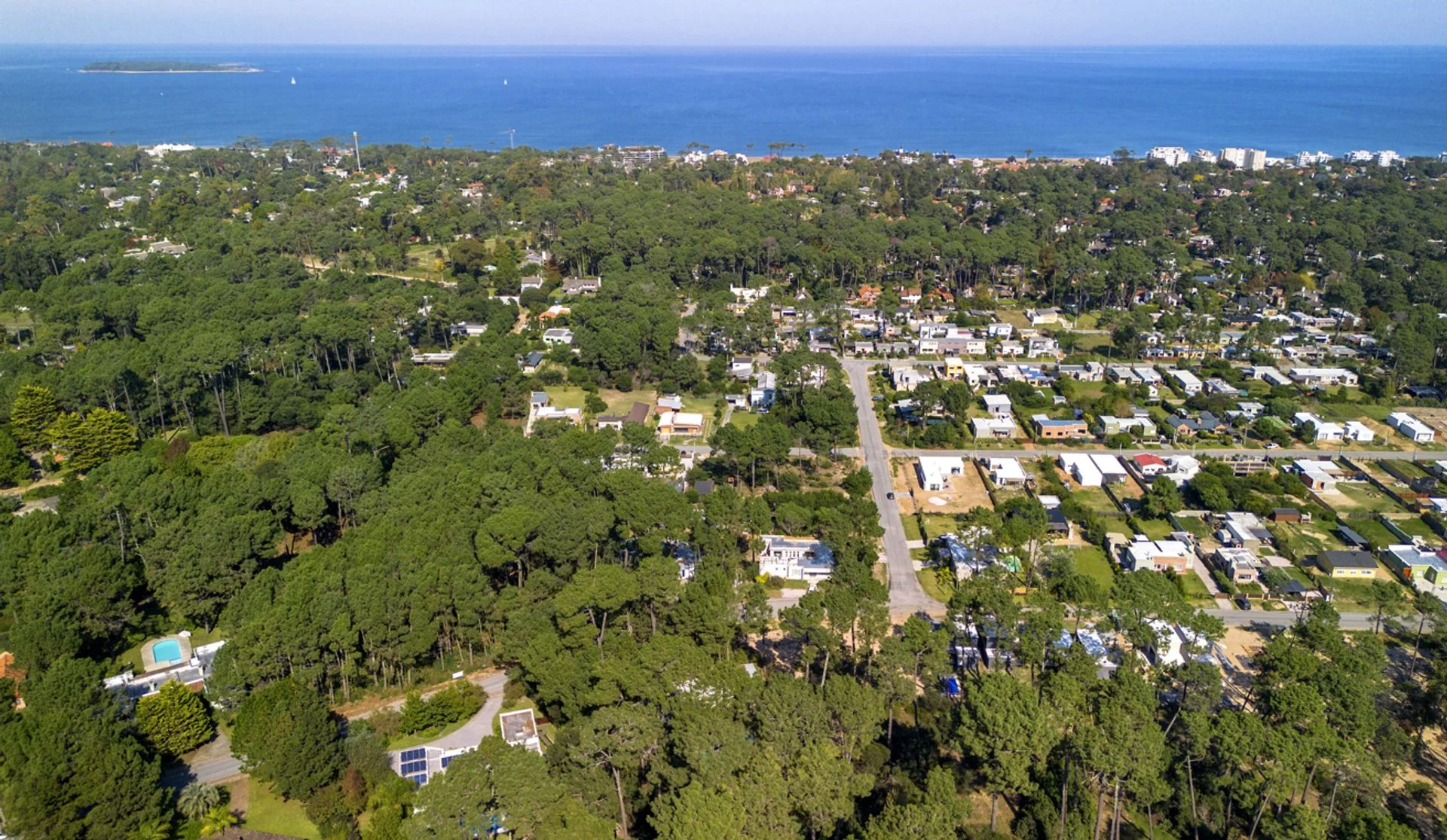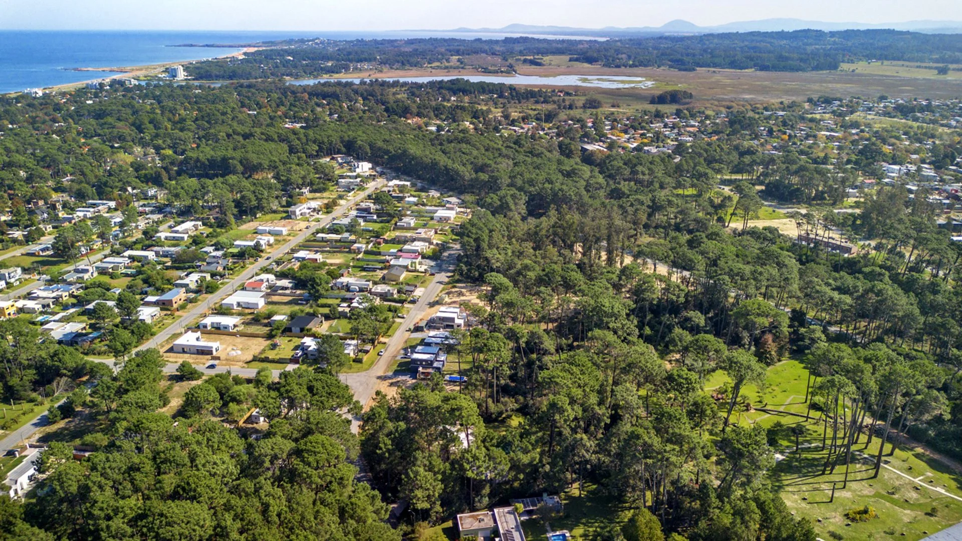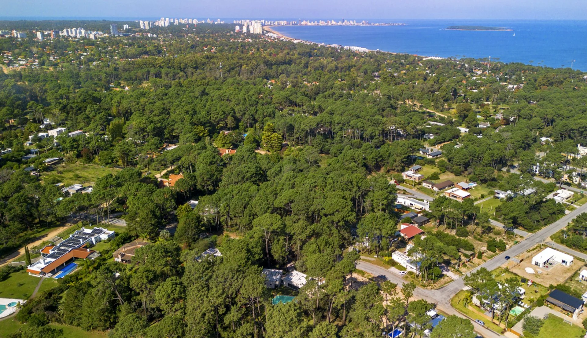 La casa está ubicada en un parque de pinos, acacias. El parque mide 3179 m2 con piscina de borde infinito y playa húmeda para los niños. Zona Parque Burnett, a 10 cuadras de Playa Mansa. La superficie edificada es de 269m2. La casa de estilo moderno minimalista se organiza en dos módulos separados por un hall de entrada vidriado, lo que permite una total independencia entre las actividades diurnas y nocturnas.