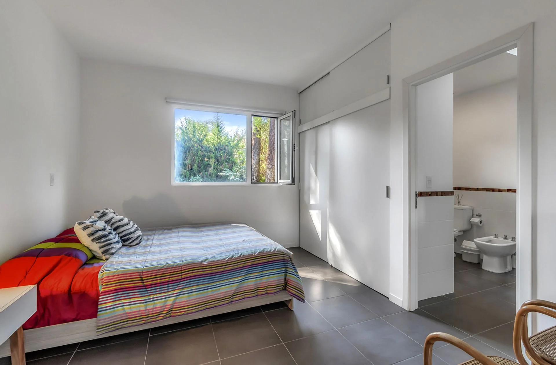 ropero a la americana, aire acondicionado y baño en suite. El segundo dormitorio también tiene baño en suite. El tercer dormitorio utiliza el 3er baño