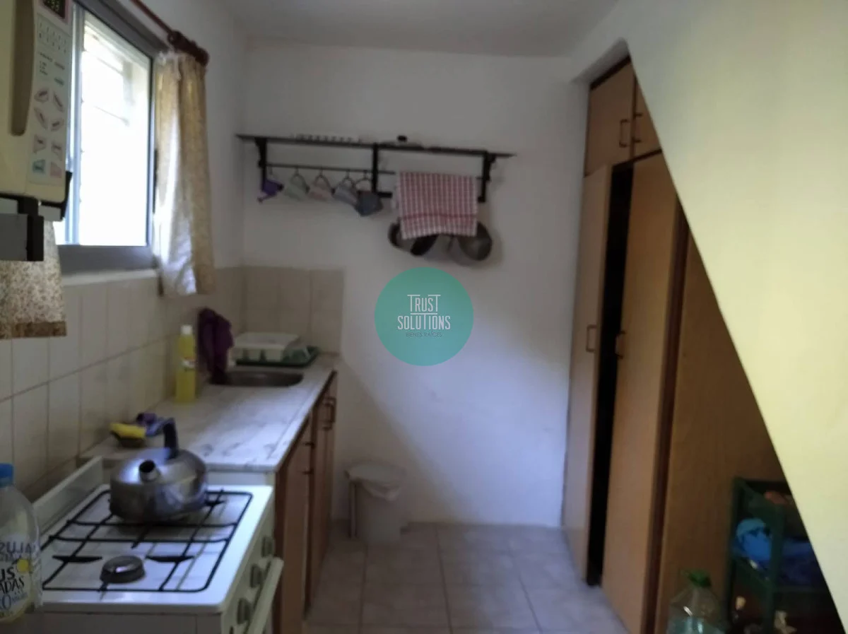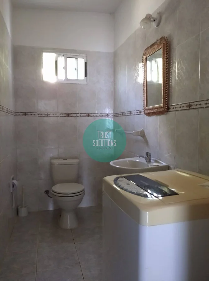 Al fondo moderna, luminosa y amplia, con comedor grande, mesada y todas las utilidades de una cocina, 1 baño, habitación de servicio con ventana pequeña y Parrillero.