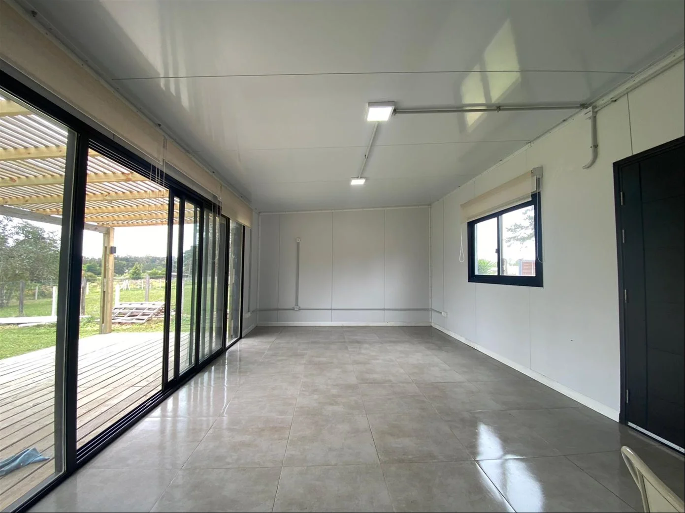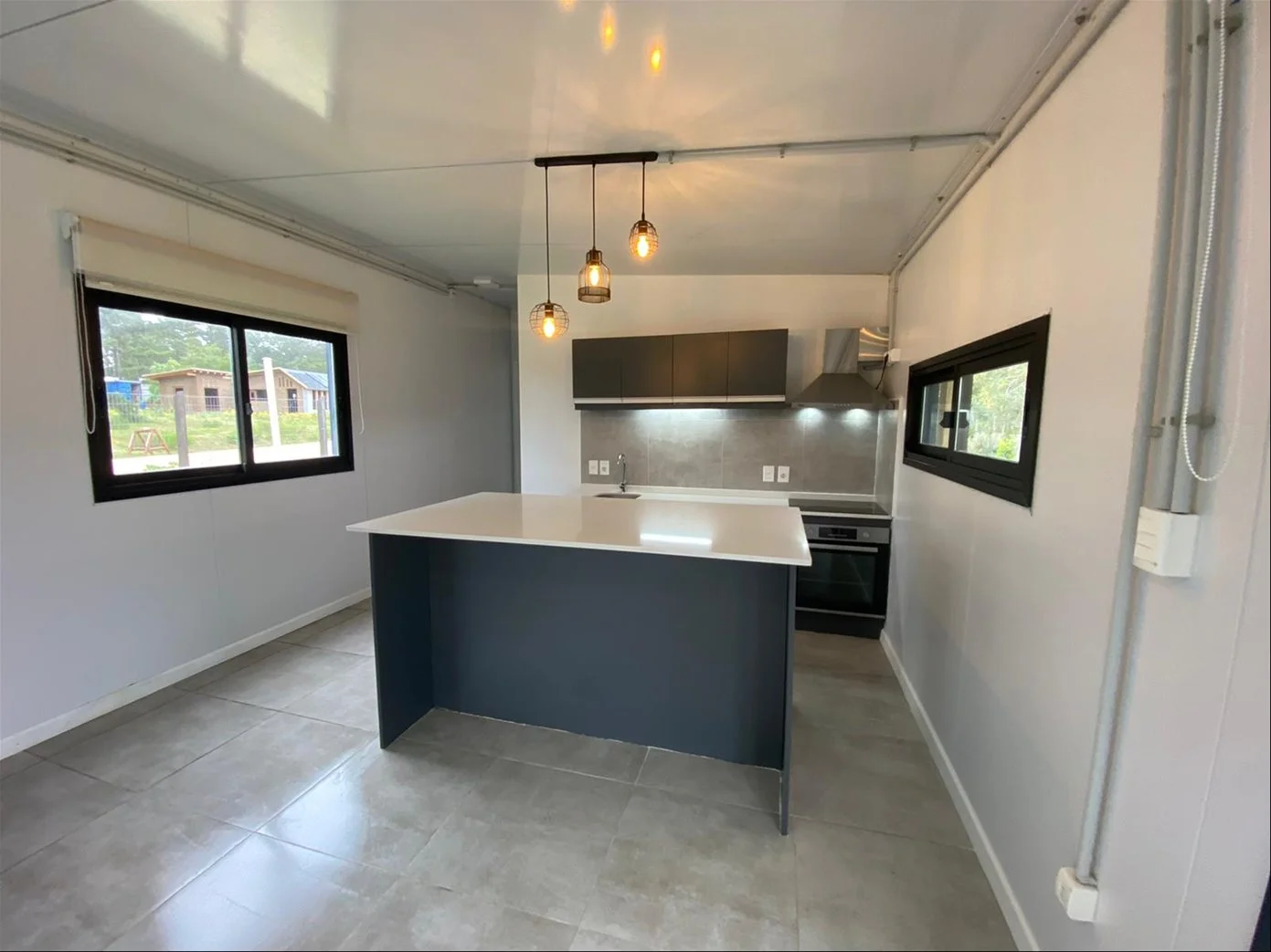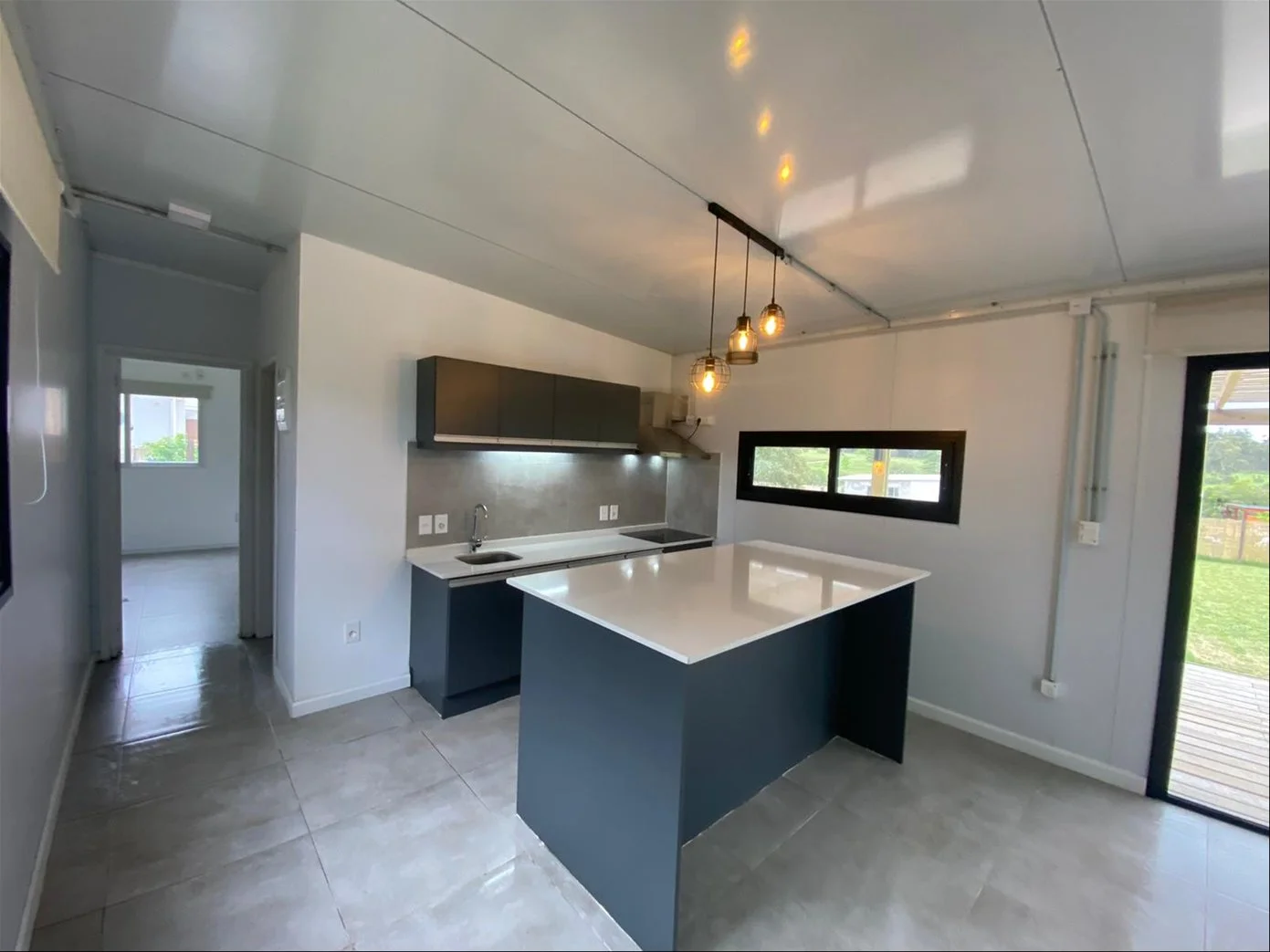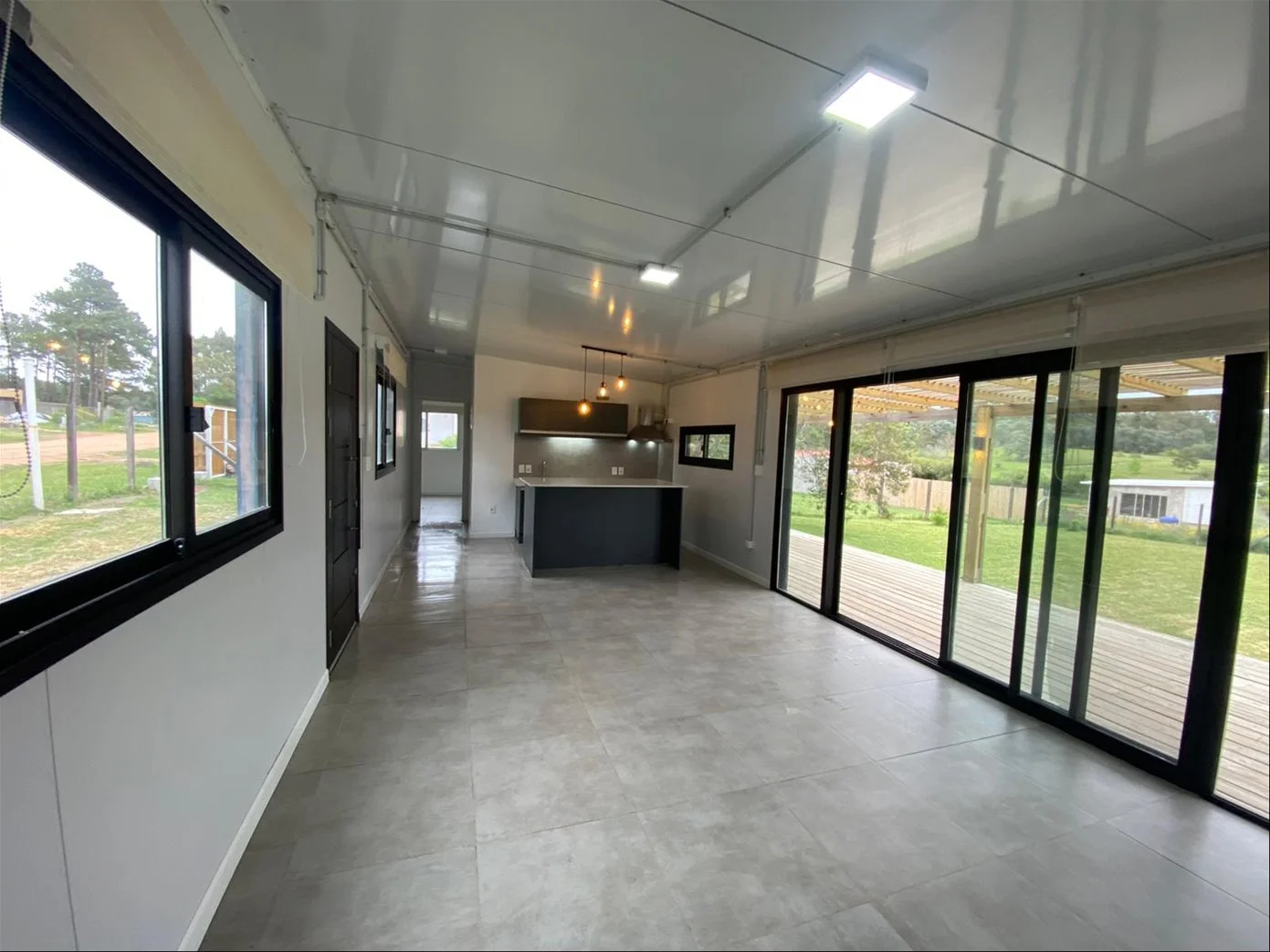 La vivienda, de 65 m², está construida en isopanel, un material que garantiza aislamiento térmico y eficiencia energética. Su distribución es práctica y acogedora, con espacios bien resueltos: