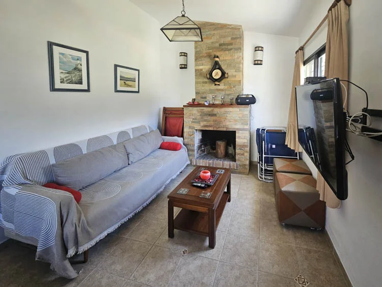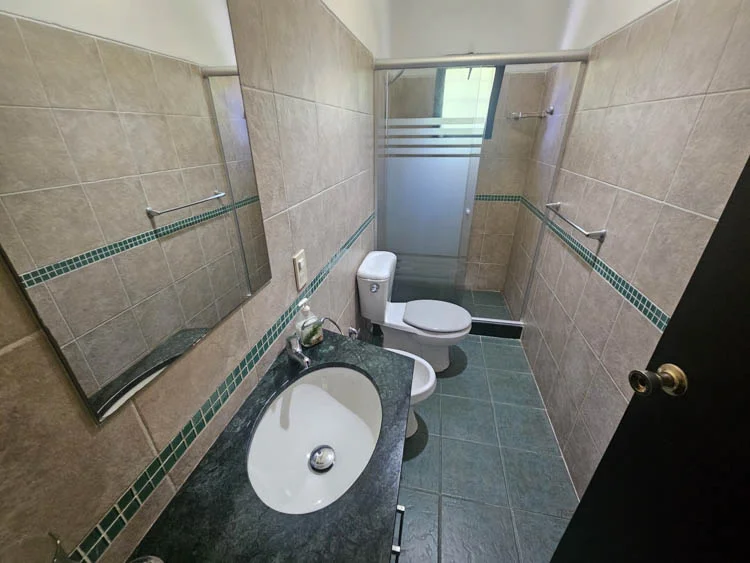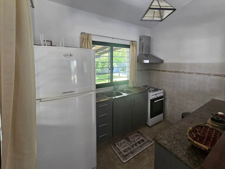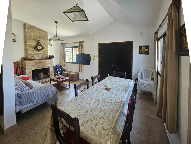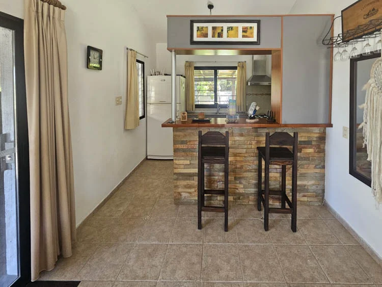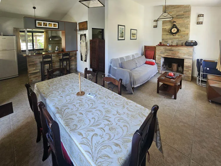2 dormitorios, 2 baños y amplio living comedor con cocina integrada y estufa a leña.