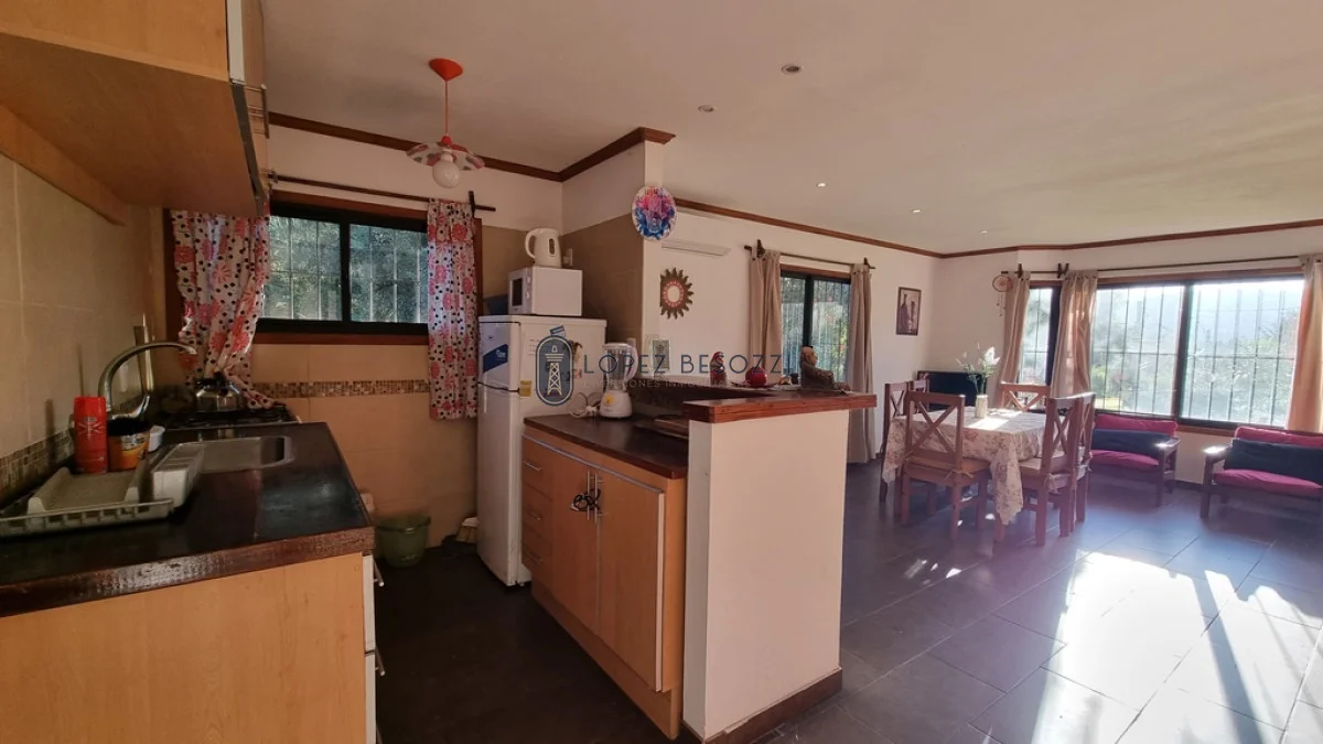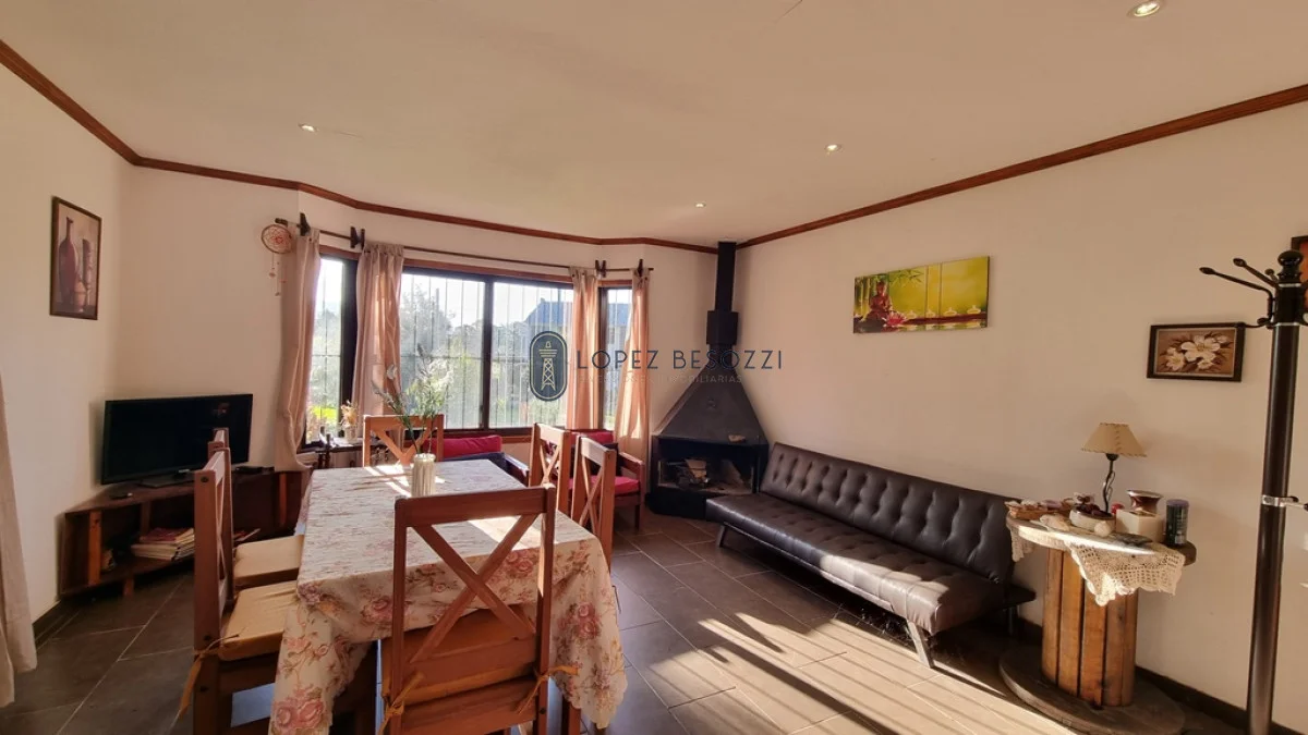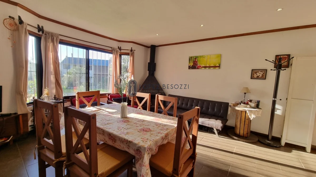 La casa edificada en Steel Framing, construida a mediados del año 2015 sobre un enorme terreno esquina de 706m; distribuida en un solo nivel; cuenta con amplio living- comedor la cual posee estufa a leña en hierro, cocina integrada, pasillo hacia 2 dormitorios y baño completo.