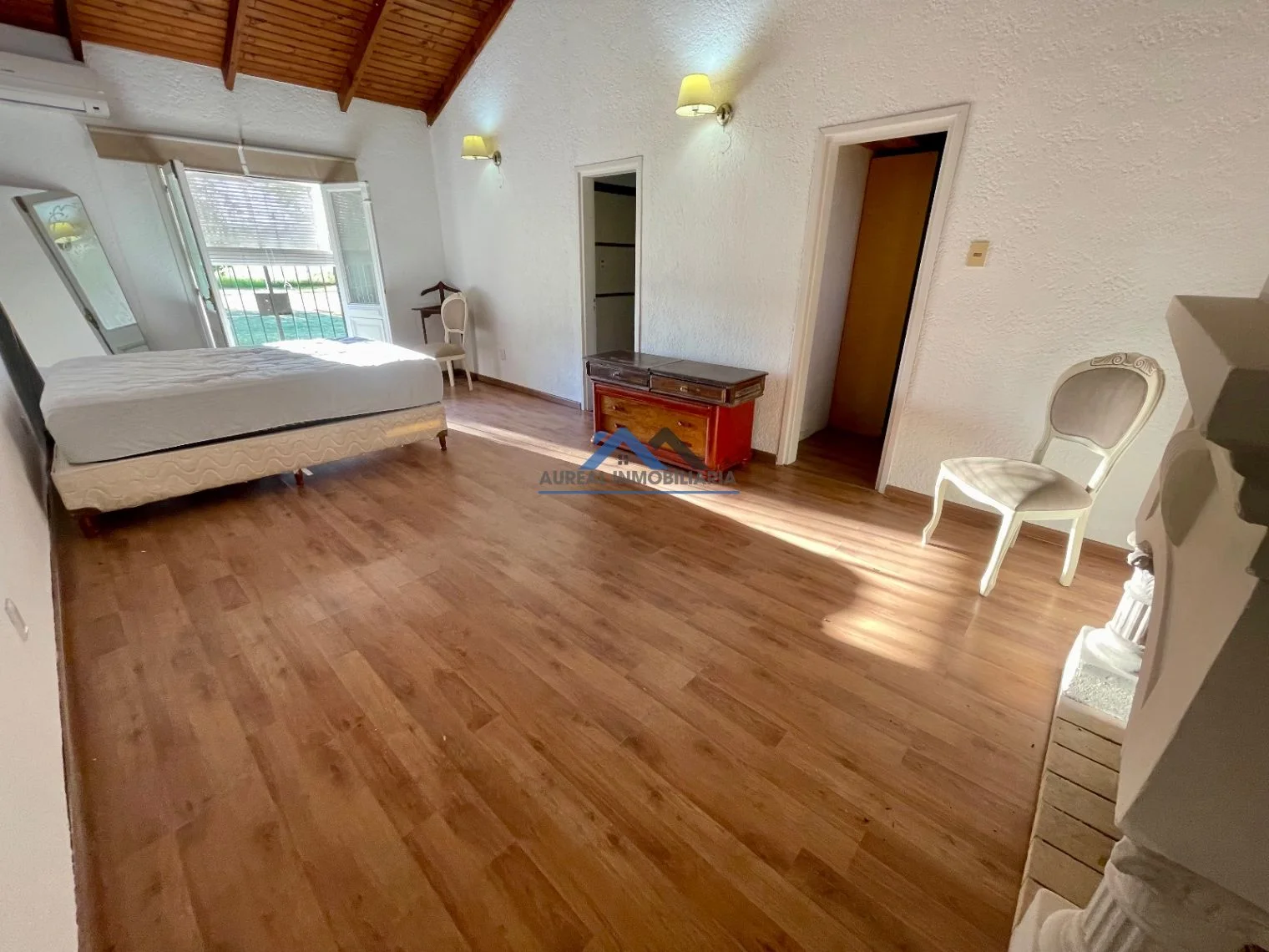La propiedad cuenta con una espaciosa casa que incluye 6 dormitorios, de los cuales 3 son en suite. El dormitorio principal se destaca por su comodidad, equipado con aire acondicionado, estufa a leña y acceso directo al jardín.