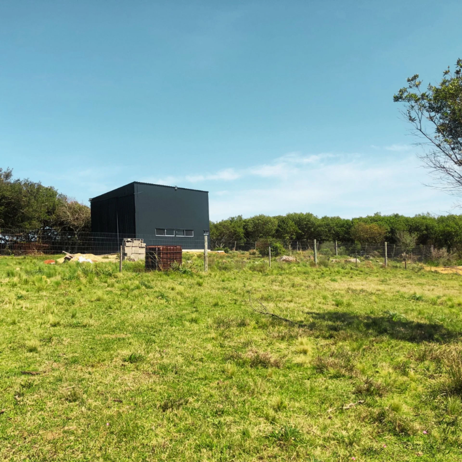 Construcción metálica versátil: Una estructura metálica de 8x6 metros con techo y paredes de chapa ondulada color grafito, recién terminada, incluye ventanas grandes con mosquiteros y un baño completo. La instalación eléctrica es completa, con enchufes y llaves, y cuenta con un tanque de 5000 litros para captación de agua de lluvia. La construcción fue pensada para transformarse en una futura vivienda de campo.