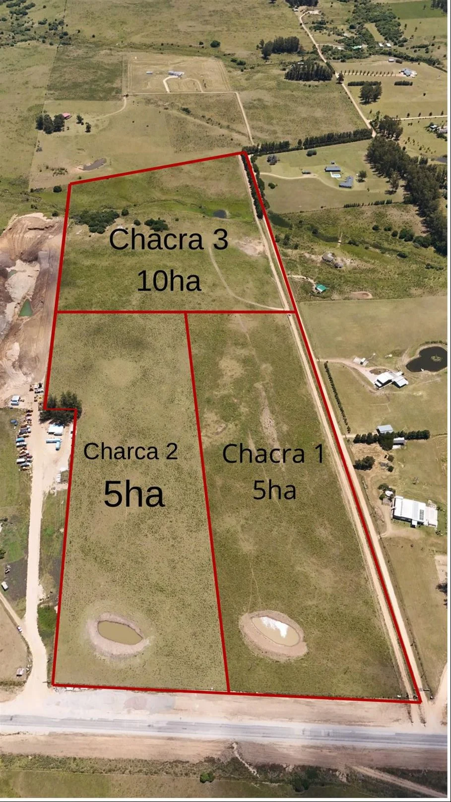 Te ofrecemos chacras de 5 y 10 hectáreas, con precios que van desde los U$S 129.000 hasta los U$S 269.000. Son espacios ideales para tu casa de campo, tu emprendimiento rural o simplemente para disfrutar de la naturaleza. Lo mejor es que todas cuentan con agua en abundancia, gracias a sus propios tajamares y lagunas, un recurso invaluable para cualquier proyecto. Además, ya tienen sus porteras de entrada instaladas para tu privacidad y fácil acceso, y la luz está en la puerta de cada chacra, simplificando enormemente cualquier construcción futura.