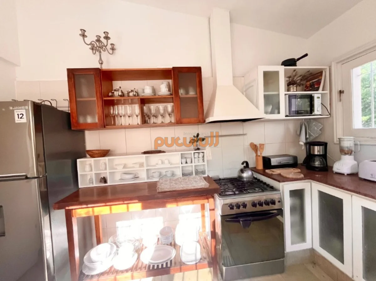 Con un diseño funcional y acogedor, esta propiedad, distribuida en dos plantas, cuenta con cinco cómodos dormitorios y dos baños completamente reciclados, ofreciendo espacio suficiente para alojar cómodamente hasta 9 personas. La amplia cocina se complementa con un luminoso living comedor con estufa a leña, y un estar recibidor diario.