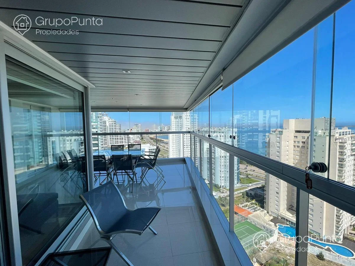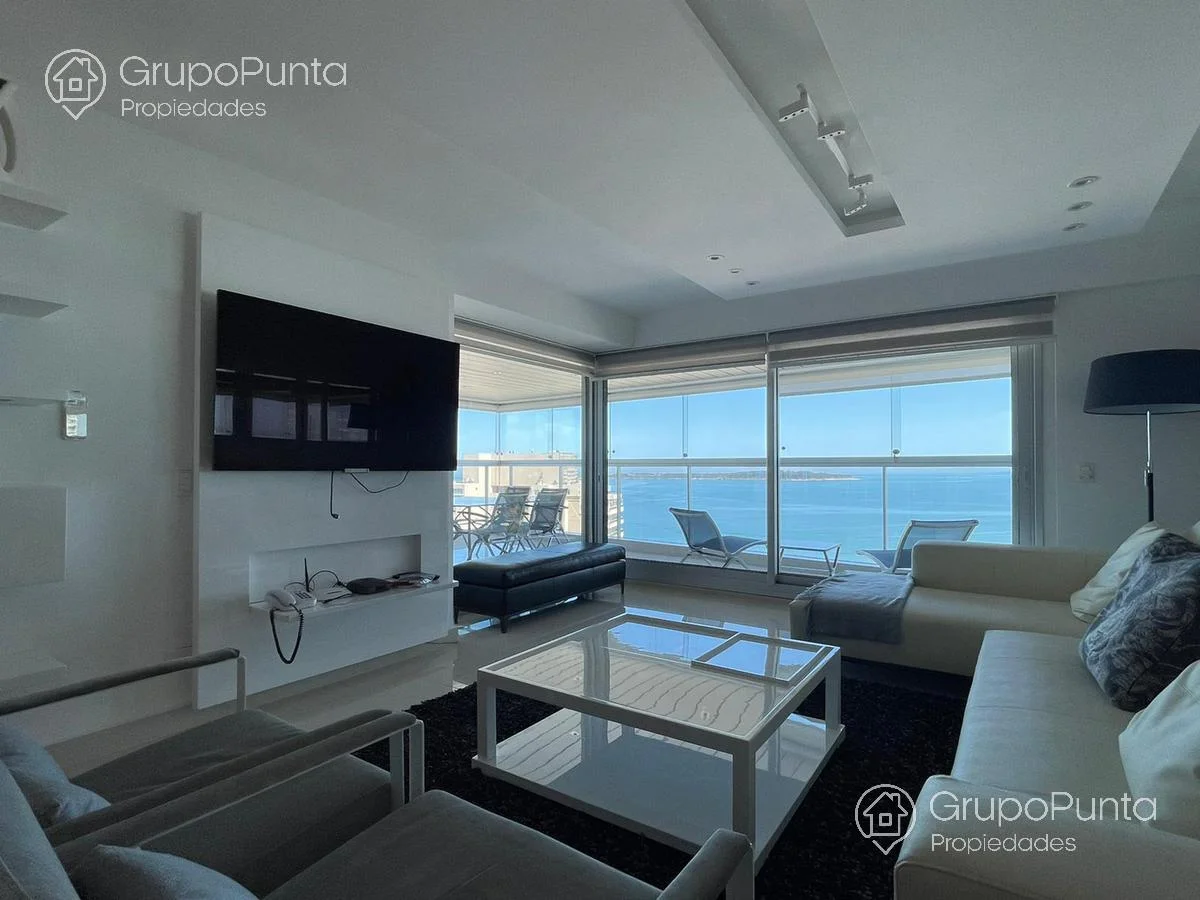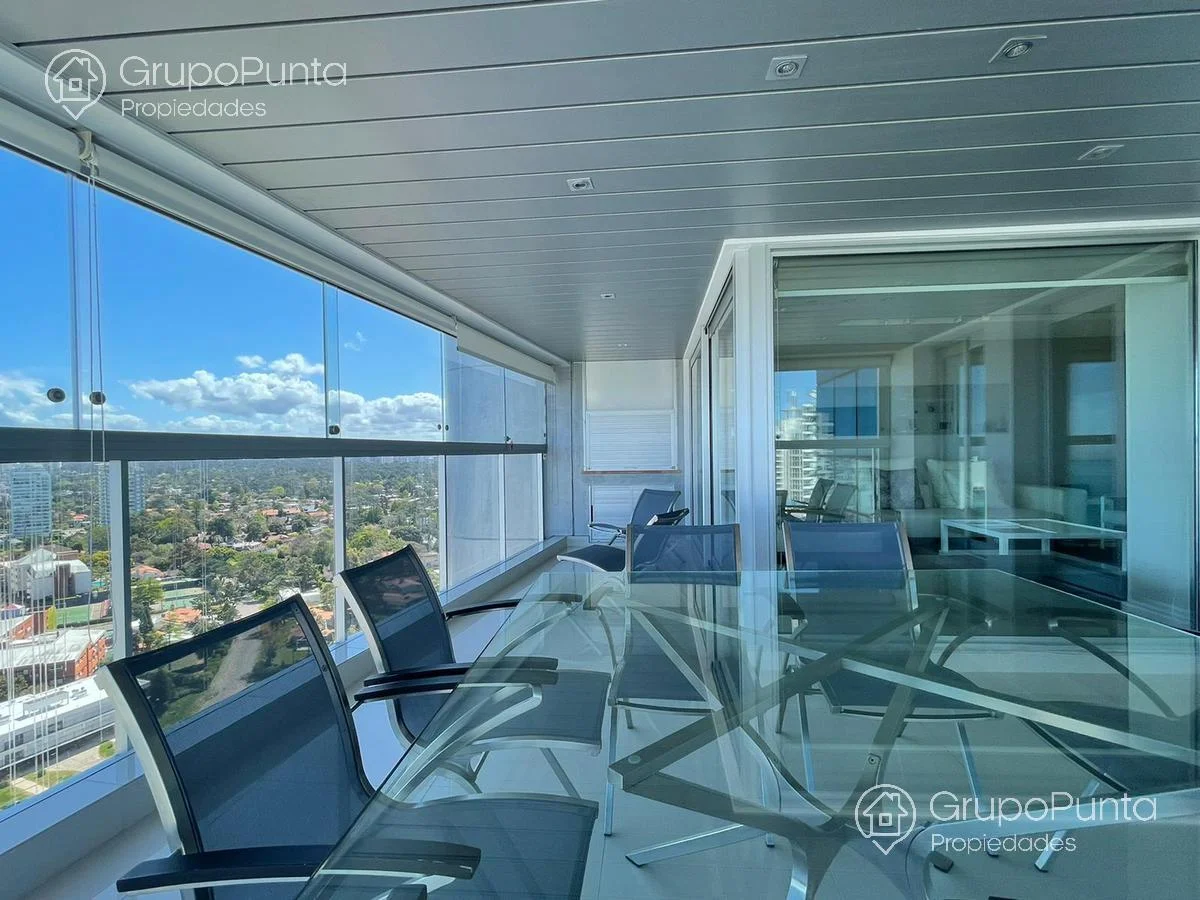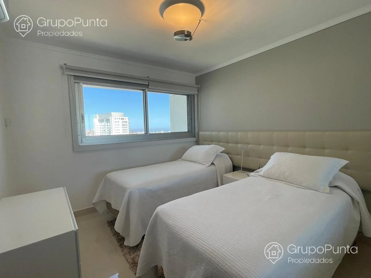 Depto moderno de 3 dormitorios + dependencia de servicio completo en alquiler en Torre de categoria , a pasitos del mar.Living comedor luminoso, cocina completamente equipada, toilette, 2 baños completos, terraza cerrada con parrillero propio y vista al mar.Aire acondicionada,losa radiante, internetcochera.Servicios:Piscina exterior y solárium, Piscina interior climatizada, Piscina para niños, Cancha de tenis, Cancha de fútbol, Jaula de Golf, Juegos para niños, Gimnasio, Spa (jacuzzi, sauna y masajes), Salones de usos múltiples, Microcine, Sala de internet, Sala de juegos, Laundry, Servicio de mucama, Miami Boulevard I proyecta una torre de 23 pisos de altura con un moderno diseño inclinado con respecto a la Rambla (no paralelo), logrando de esa manera vistas más directas a la Bahía.Incorpora exclusivos apartamentos premium con increíbles vistas al mar. Unidades de categoría, con muy buenas terminaciones y ambientes bien diseñados. Cada apartamento dispone de amplias terrazas con acceso desde el living, Parrillero propio en los balcones, terraza lavadero, instalaciones de aire acondicionado, losa radiante en los baños, y garaje cerrado.
