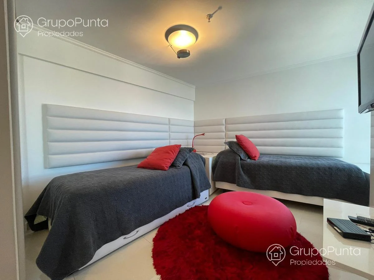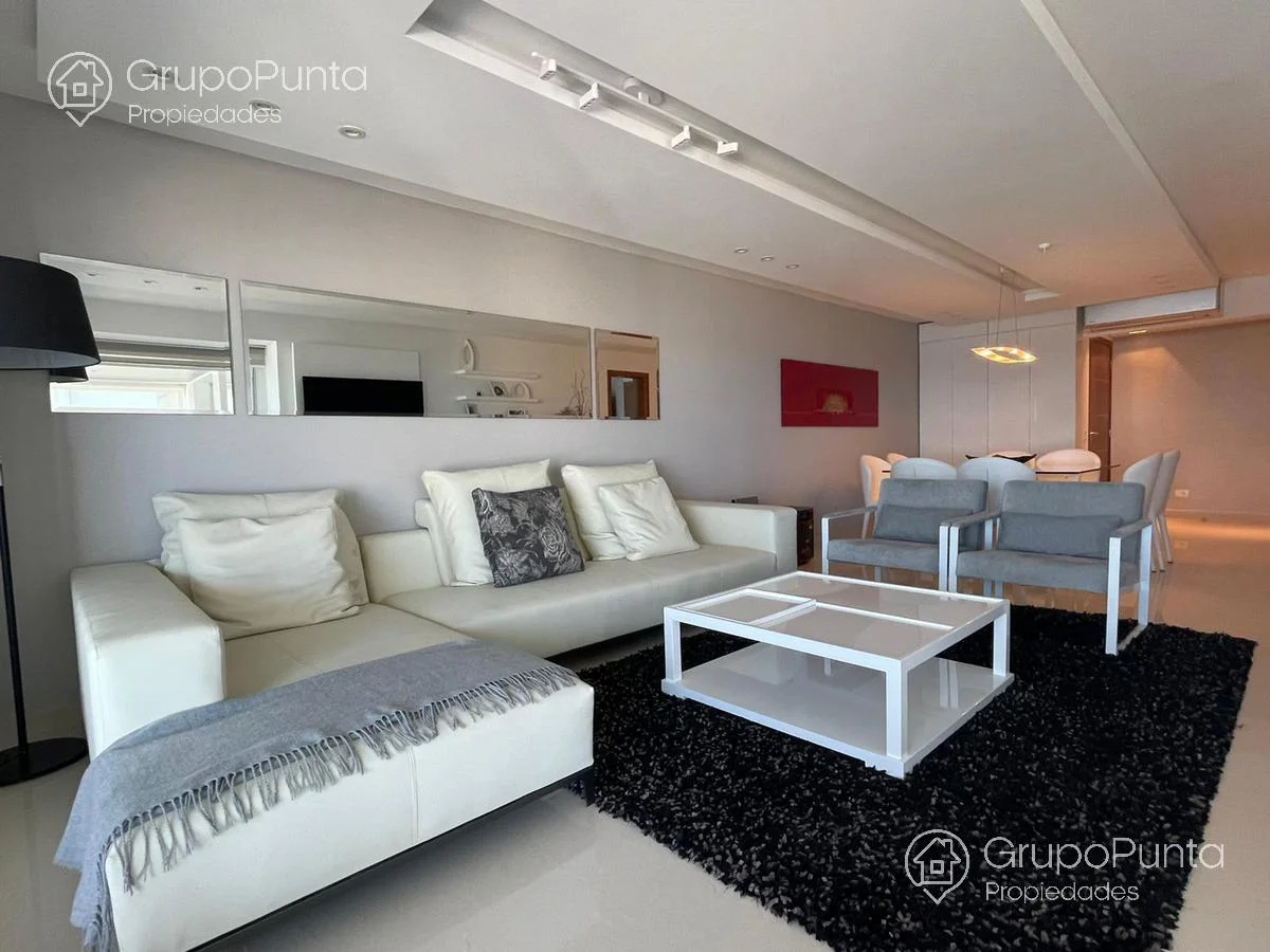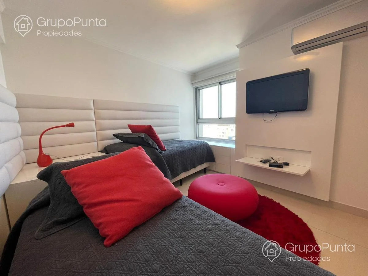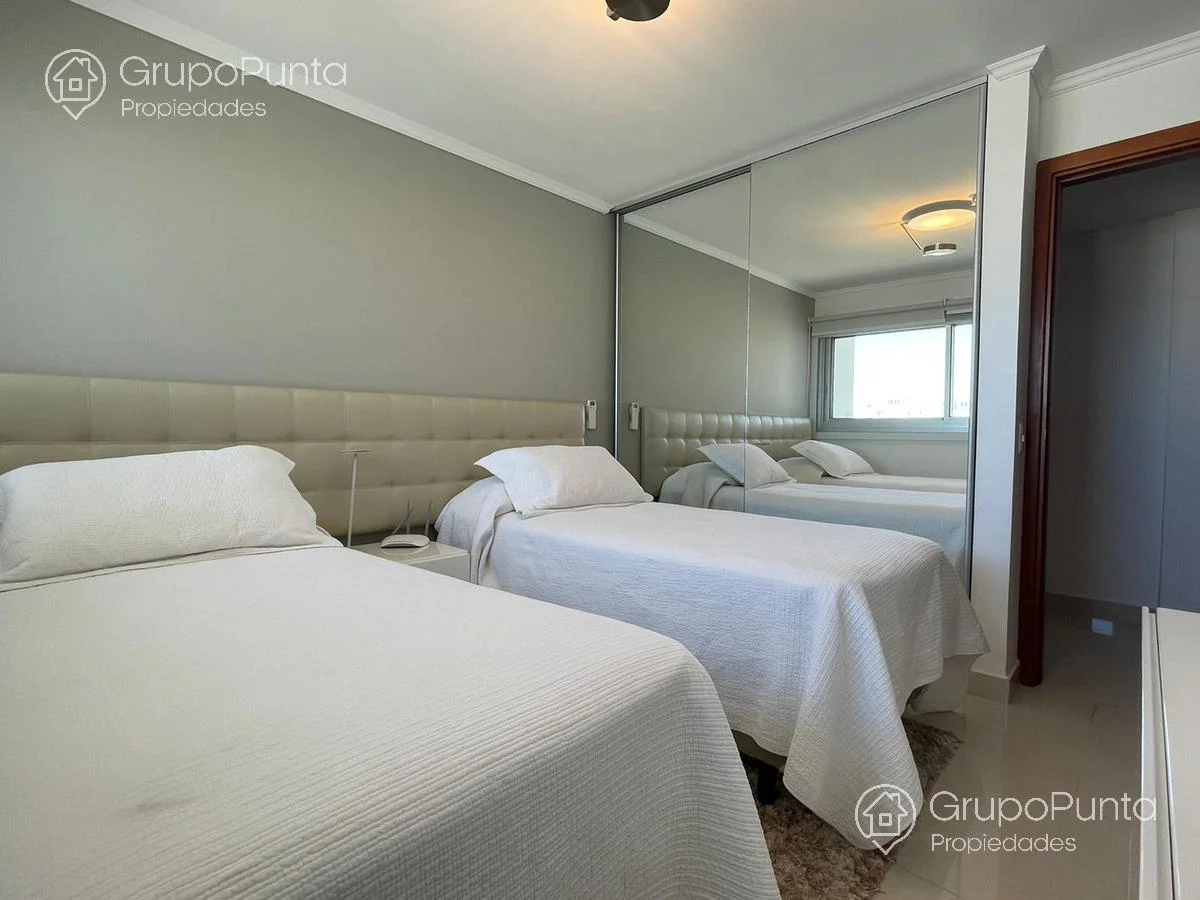 Depto moderno de 3 dormitorios + dependencia de servicio completo en alquiler en Torre de categoria , a pasitos del mar.Living comedor luminoso, cocina completamente equipada, toilette, 2 baños completos, terraza cerrada con parrillero propio y vista al mar.Aire acondicionada,losa radiante, internetcochera.Servicios:Piscina exterior y solárium, Piscina interior climatizada, Piscina para niños, Cancha de tenis, Cancha de fútbol, Jaula de Golf, Juegos para niños, Gimnasio, Spa (jacuzzi, sauna y masajes), Salones de usos múltiples, Microcine, Sala de internet, Sala de juegos, Laundry, Servicio de mucama, Miami Boulevard I proyecta una torre de 23 pisos de altura con un moderno diseño inclinado con respecto a la Rambla (no paralelo), logrando de esa manera vistas más directas a la Bahía.Incorpora exclusivos apartamentos premium con increíbles vistas al mar. Unidades de categoría, con muy buenas terminaciones y ambientes bien diseñados. Cada apartamento dispone de amplias terrazas con acceso desde el living, Parrillero propio en los balcones, terraza lavadero, instalaciones de aire acondicionado, losa radiante en los baños, y garaje cerrado.
