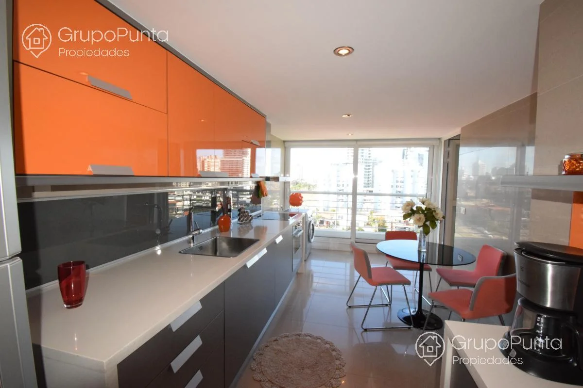 Excelente 3 dormitorios en suite + amplia dependencia de servicio completo con vista al mar, playa mansa. Living luminoso , comedor , doble terraza con vista , toilette , cocina completamente equipada , lavadero. Garaje.