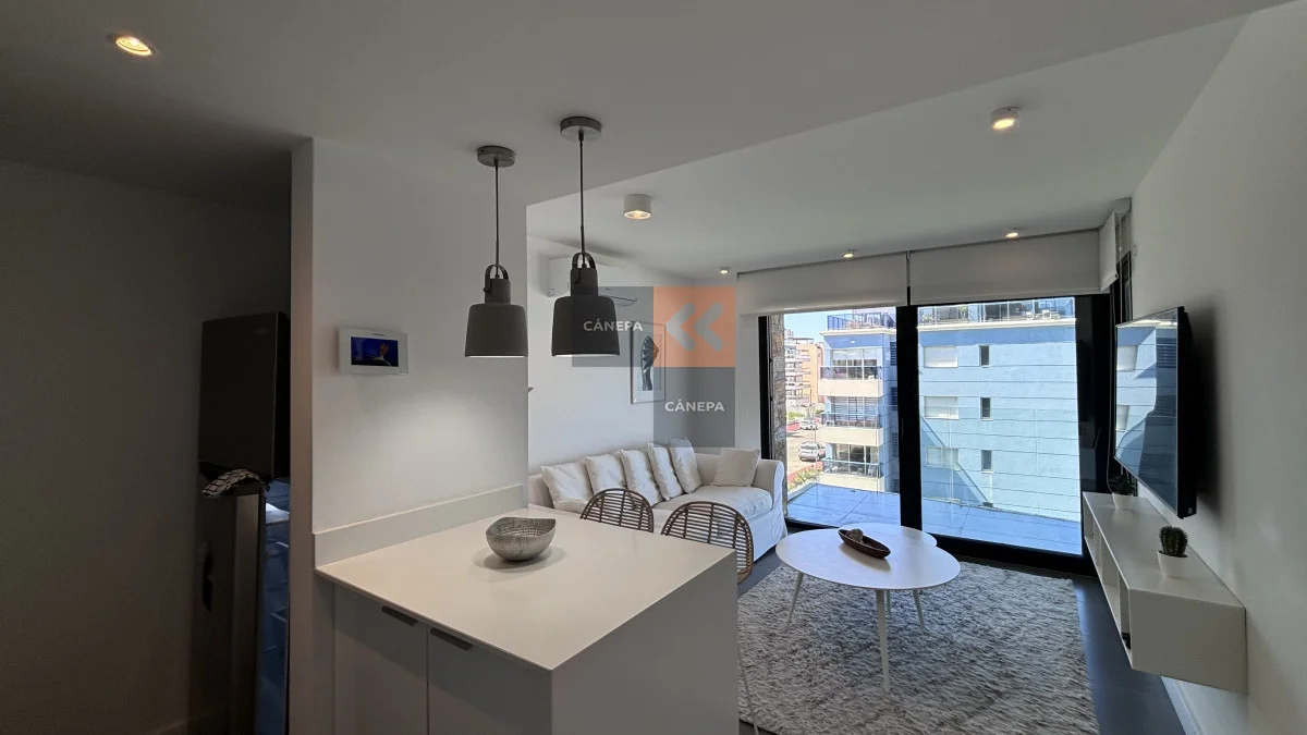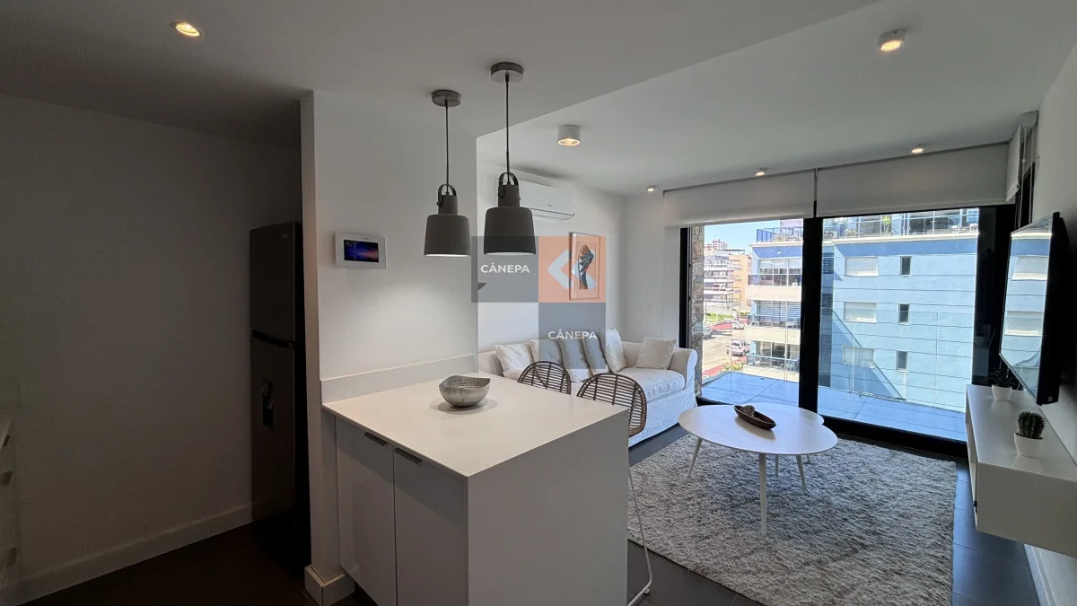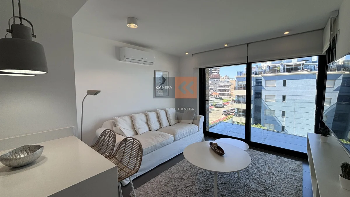 Departamento en edificio de categoría, con muy buena vista a la brava ideal para vivir todo el año Living comedor con cocina integrada 1 dormitorio en suite todos los ambientes cuentan con aire acondicionado Garaje en -1 Referencia Interna : Tera-15570