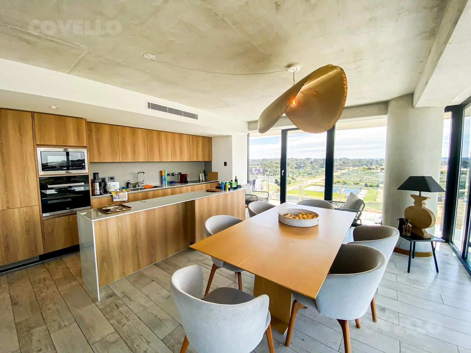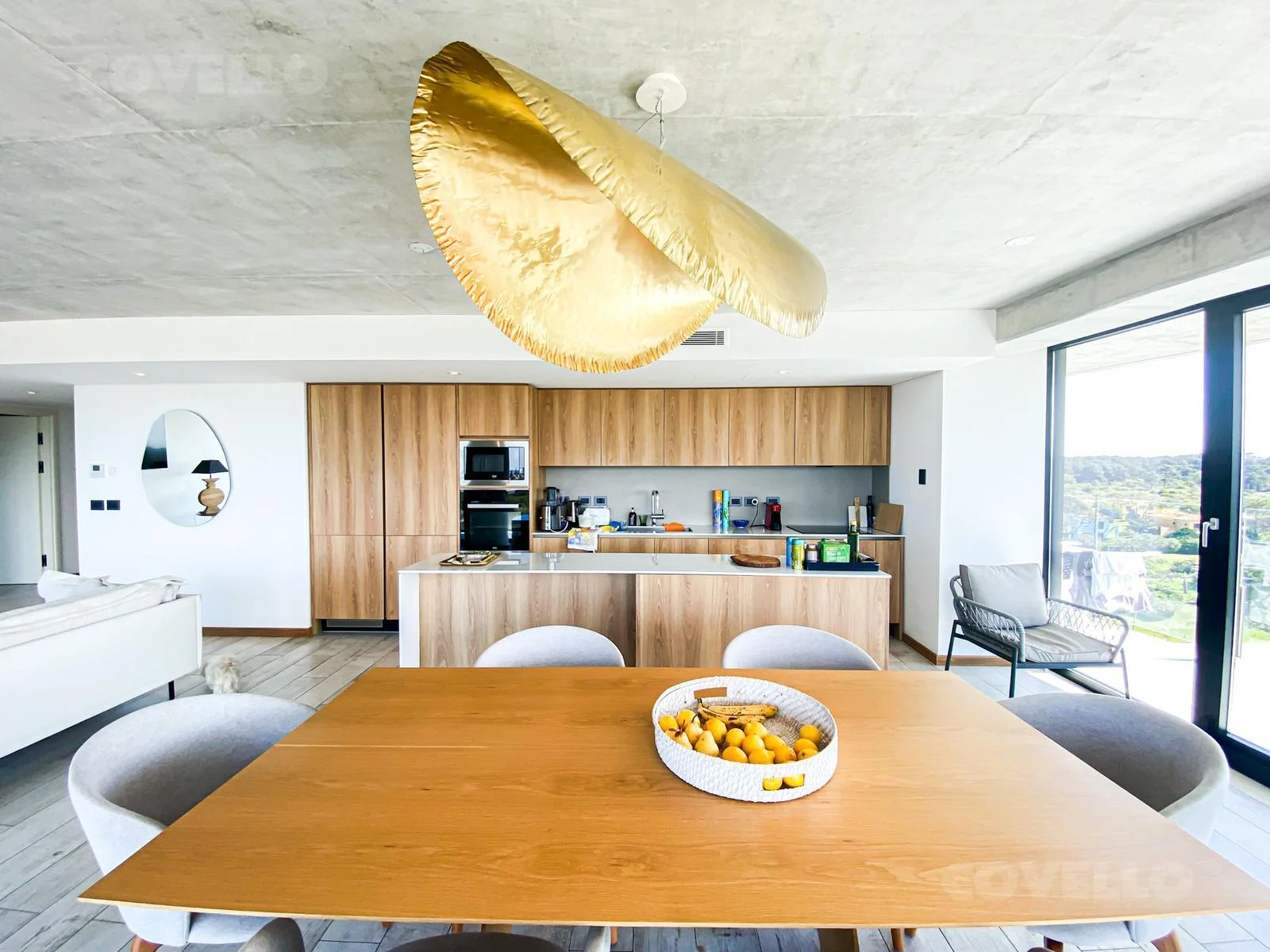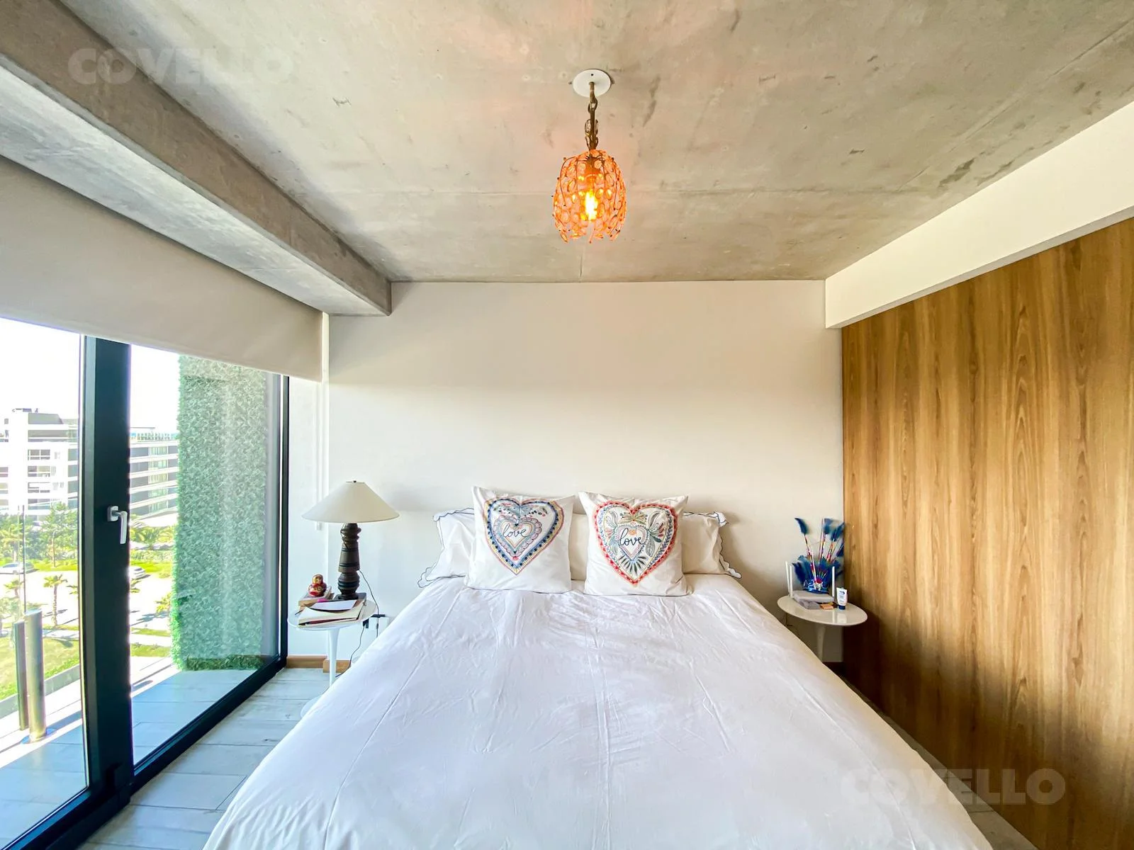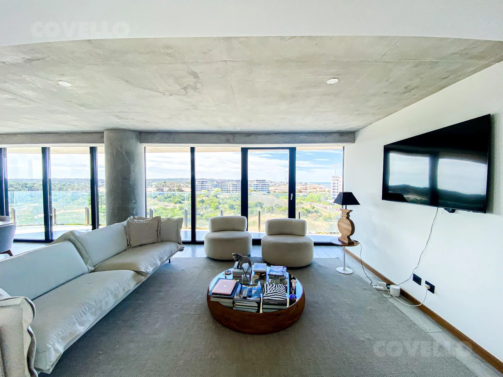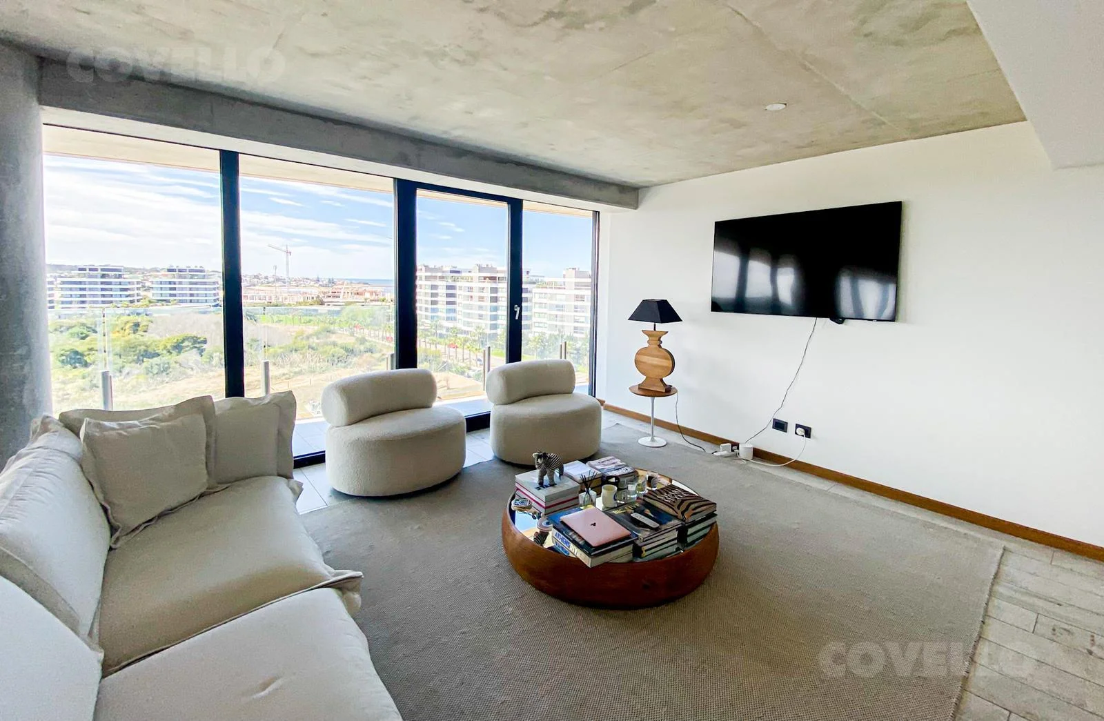 Unidad esquinera de dos dormitorios con gran terraza que cubre el apartamento , comedor con cocina integrada , dos dormitorios en suites mas den, máster suite con vestidor, toilette. Lavadero, garaje 1 auto.