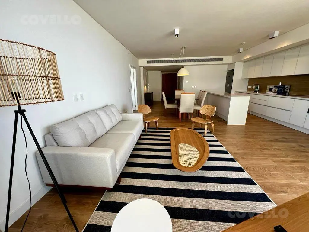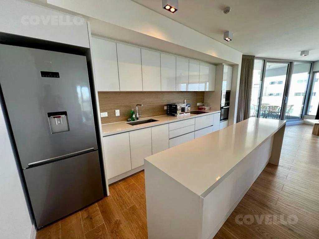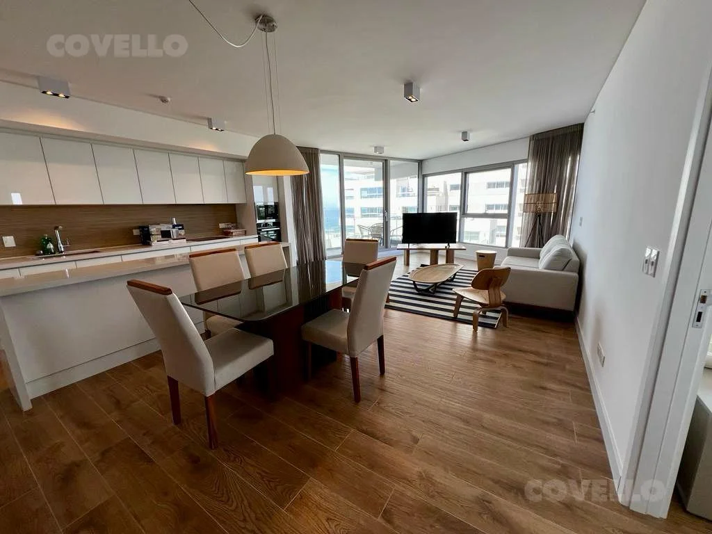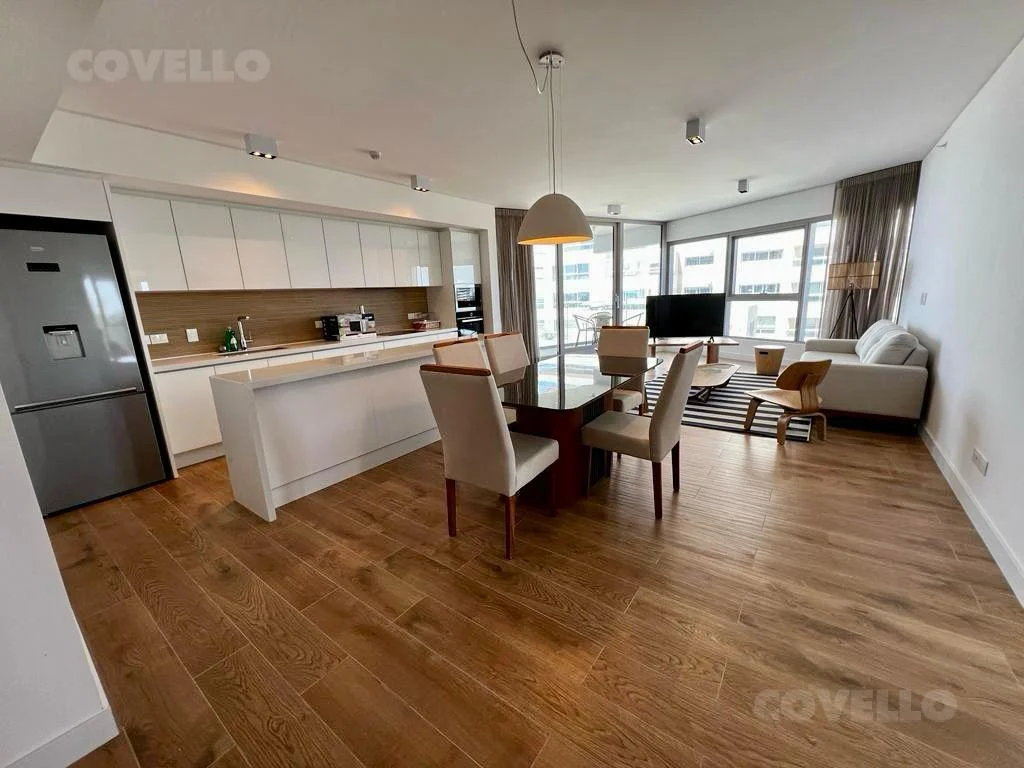 Hermoso departamento con vista al mar en Trump Tower con gran living decorado muy finamente y con moderna cocina integrada con excelente funcionalidad.