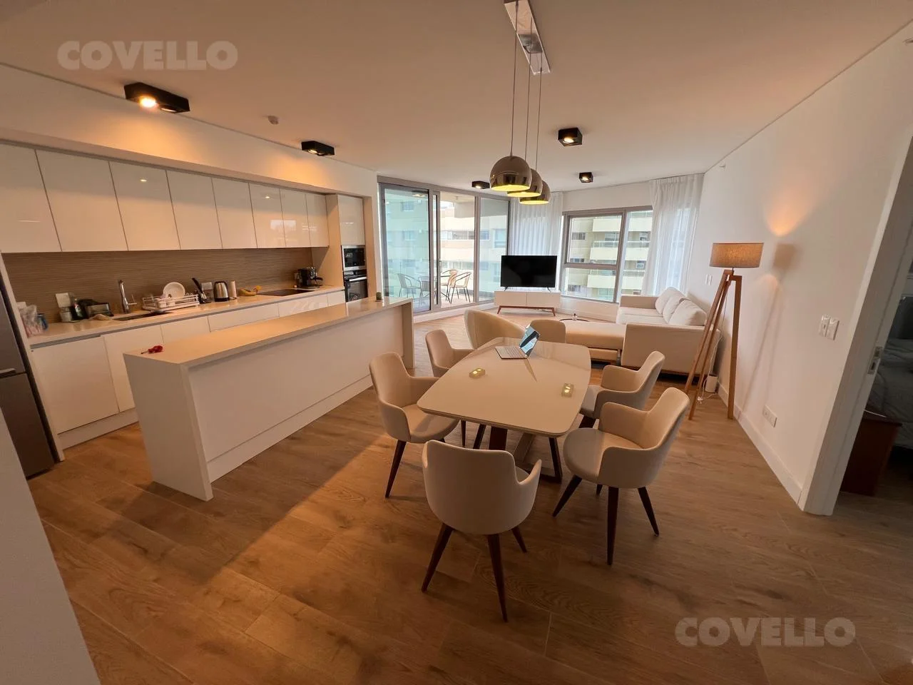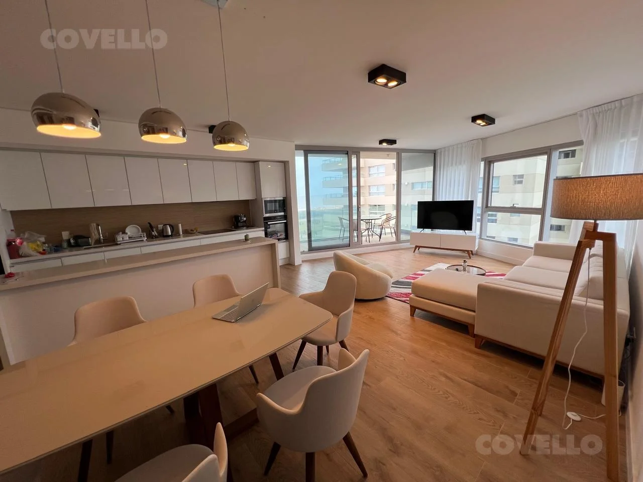 Hermoso departamento con vista al mar en Trump Tower con gran living decorado muy finamente y con moderna cocina integrada con excelente funcionalidad.